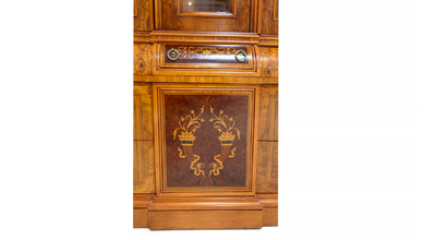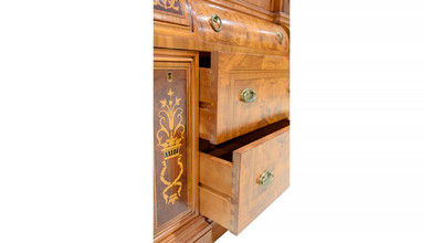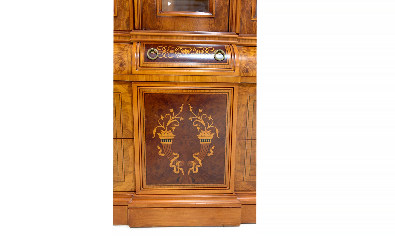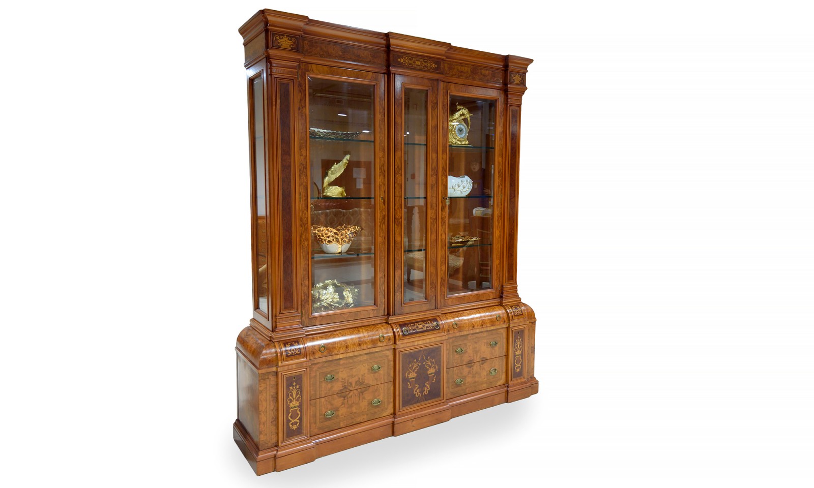 Несущие элементы изготовлены из массива американской липы, а в отделке сочетается шпон различных пород (тонированный ясень, олива, груша, лимонное дерево). Четкие очертания и декор, присущие древнеримским зданиям, придают этой модели массивный, презентабельный внешний вид. Особого внимания заслуживает насыщенный янтарный цвет. Он настолько богат, что не поддаётся чёткому определению, ведь его создаёт сочетание нескольких пород благородной древесины. Ощущение от этого необычно переливающегося цвета подарит Вам отличное настроение, снимет стресс и создаст иллюзию праздника! Декор, образованный шпоном, геометрически выверен и создает ритмичный рисунок.