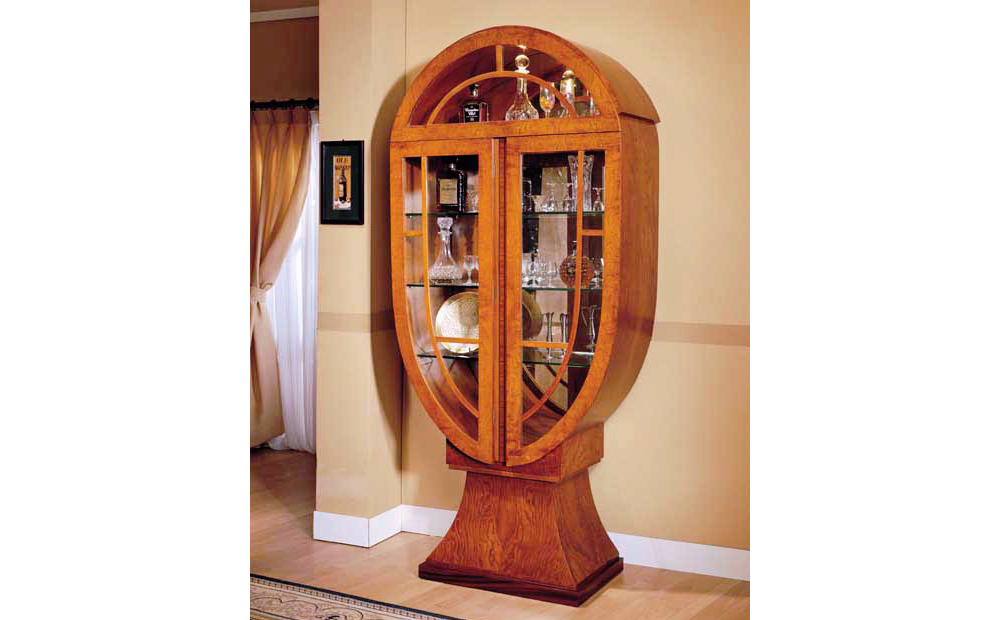 Несущие элементы изготовлены из массива американской липы, а в отделке сочетается шпон различных пород (тонированный ясень, олива, груша, лимонное дерево). Четкие очертания и декор, присущие древнеримским зданиям, придают этой модели массивный, презентабельный внешний вид. Особого внимания заслуживает насыщенный янтарный цвет. Он настолько богат, что не поддаётся чёткому определению, ведь его создаёт сочетание нескольких пород благородной древесины. Ощущение от этого необычно переливающегося цвета подарит Вам отличное настроение, снимет стресс и создаст иллюзию праздника! Декор, образованный шпоном, геометрически выверен и создает ритмичный рисунок.
