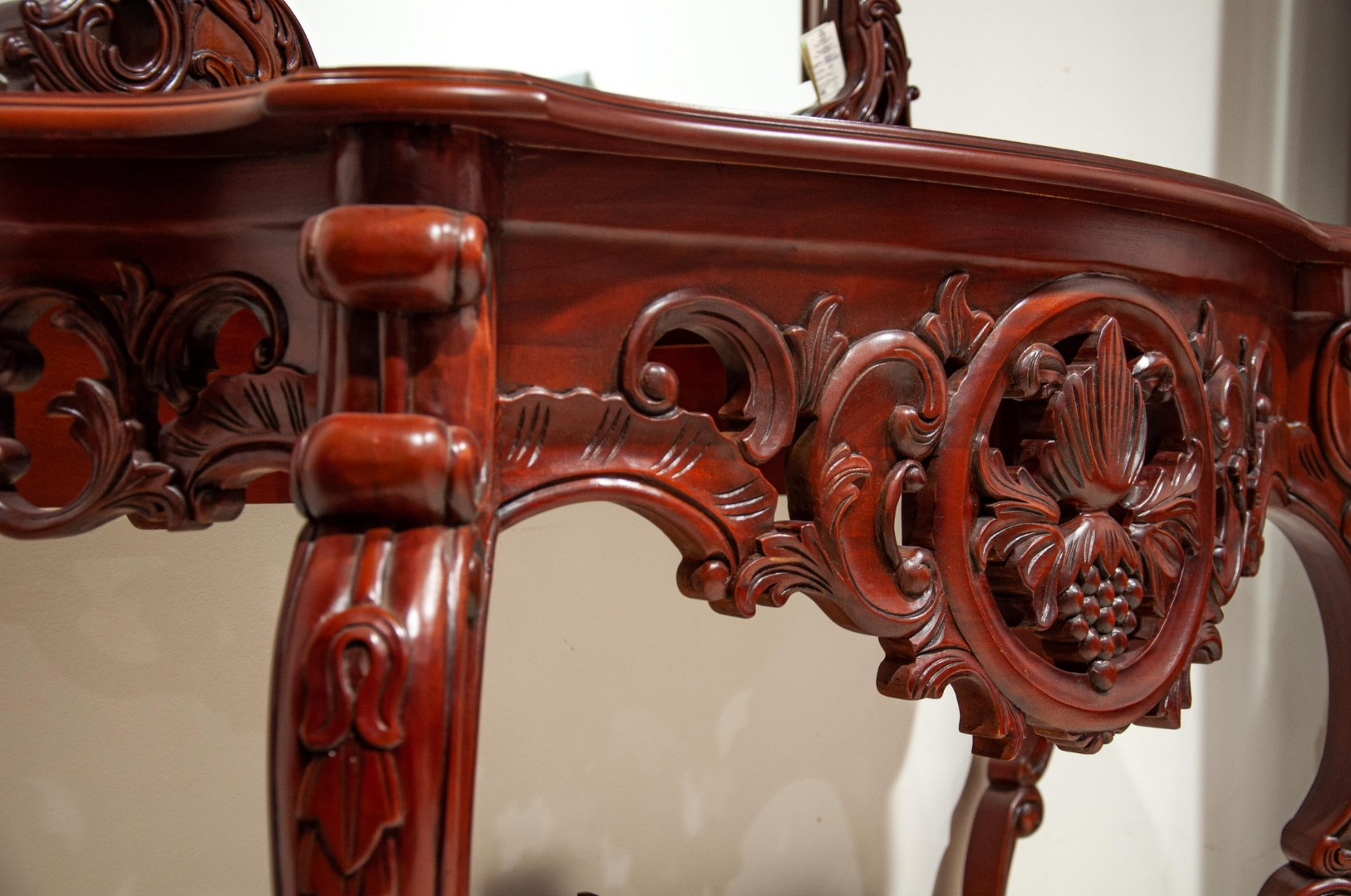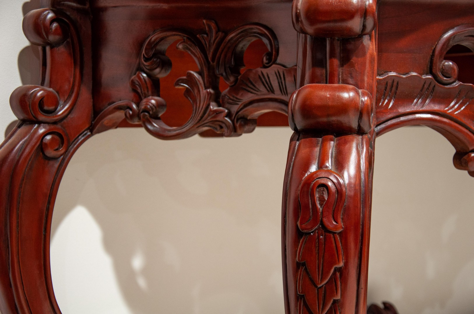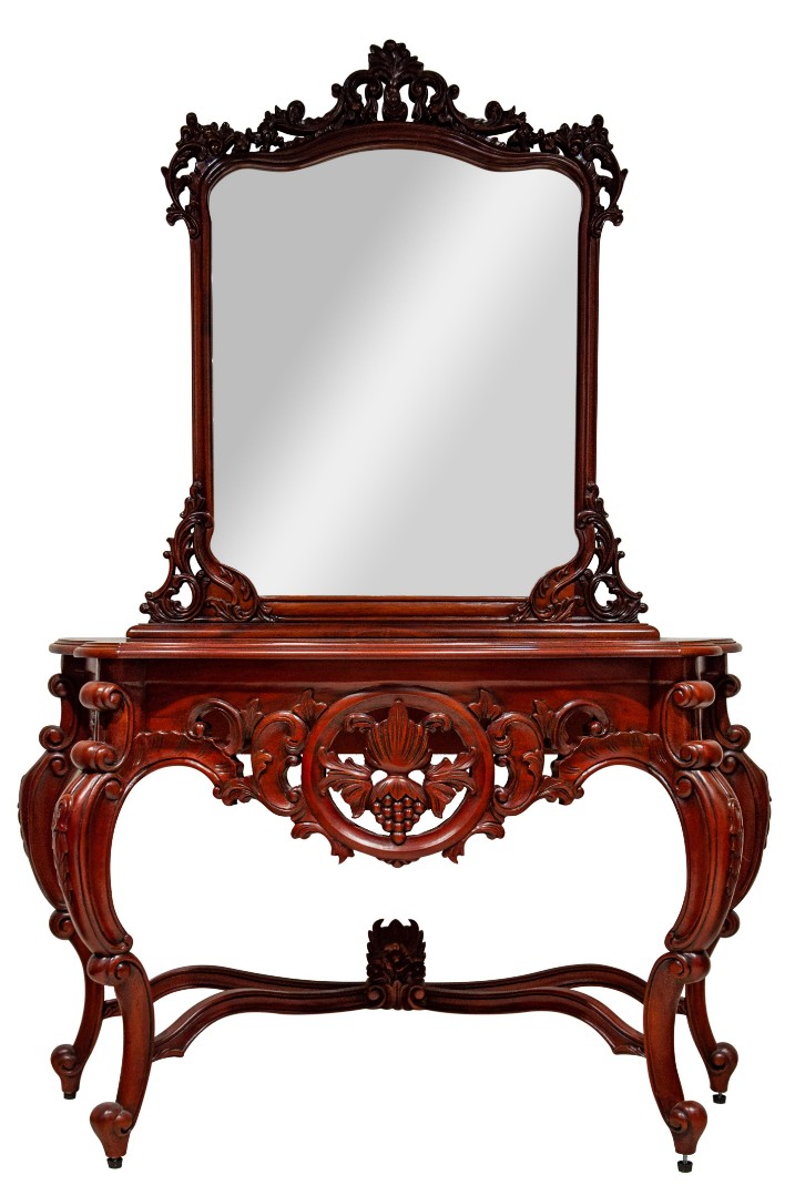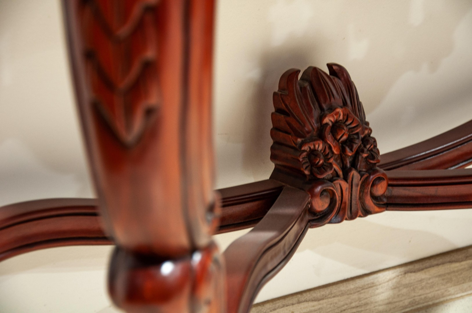 Следует отметить богатое разнообразие цветов мебели из махагона. Помимо натурального оттенка массива махагона предлагаются нетрадиционные цвета - слоновой кости и слоновой кости с эффектом старения, белый с эффектом старения и золотым прокрасом, нежно-кремовый с различной отделкой, цвет медного золота, а также цвета серебряной и золотой глазури.