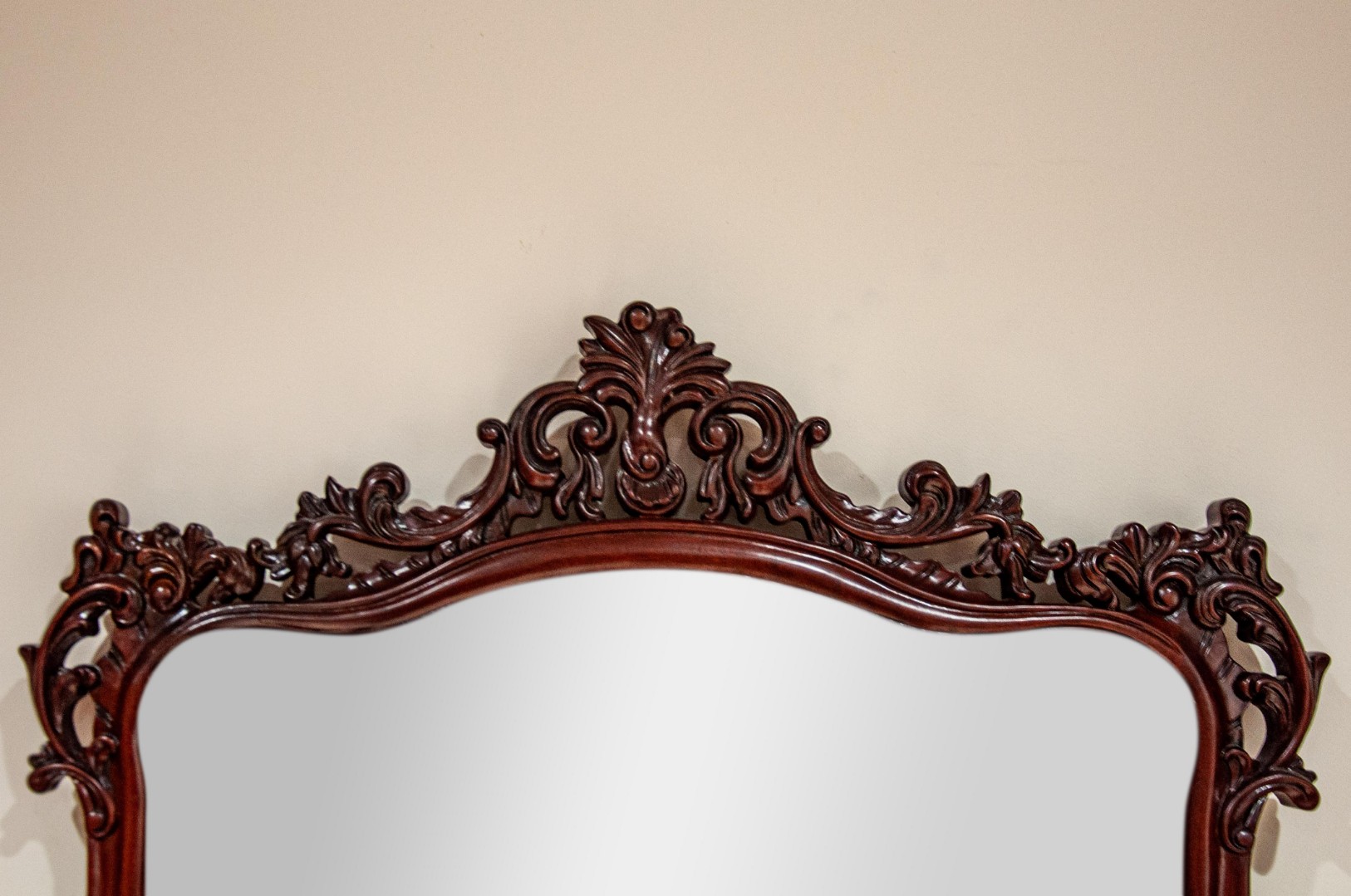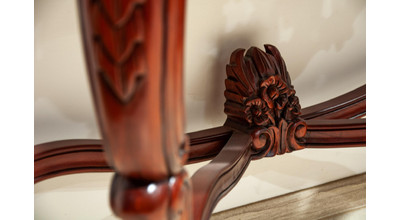 Необычное дизайнерское решение в декоре деревянных элементов из традиционного оттенка массива махагона - отделка резьбы в цвет серебряной или золотой глазури.