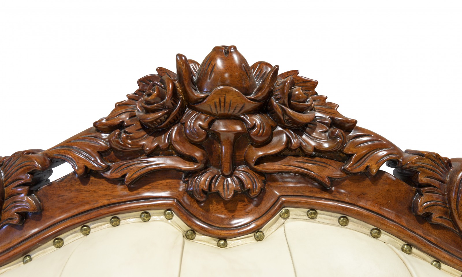 Следует отметить богатое разнообразие цветов мебели из махагона. Помимо натурального оттенка массива махагона предлагаются нетрадиционные цвета - слоновой кости и слоновой кости с эффектом старения, белый с эффектом старения и золотым прокрасом, нежно-кремовый с различной отделкой, цвет медного золота, а также цвета серебряной и золотой глазури.