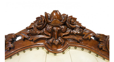 Необычное дизайнерское решение в декоре деревянных элементов из традиционного оттенка массива махагона - отделка резьбы в цвет серебряной или золотой глазури.