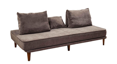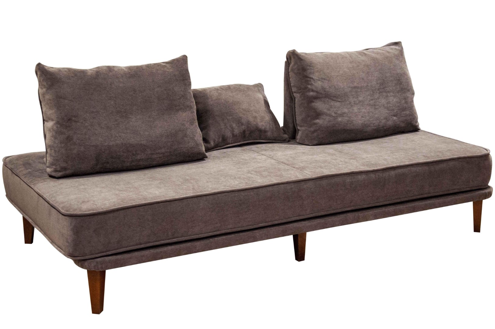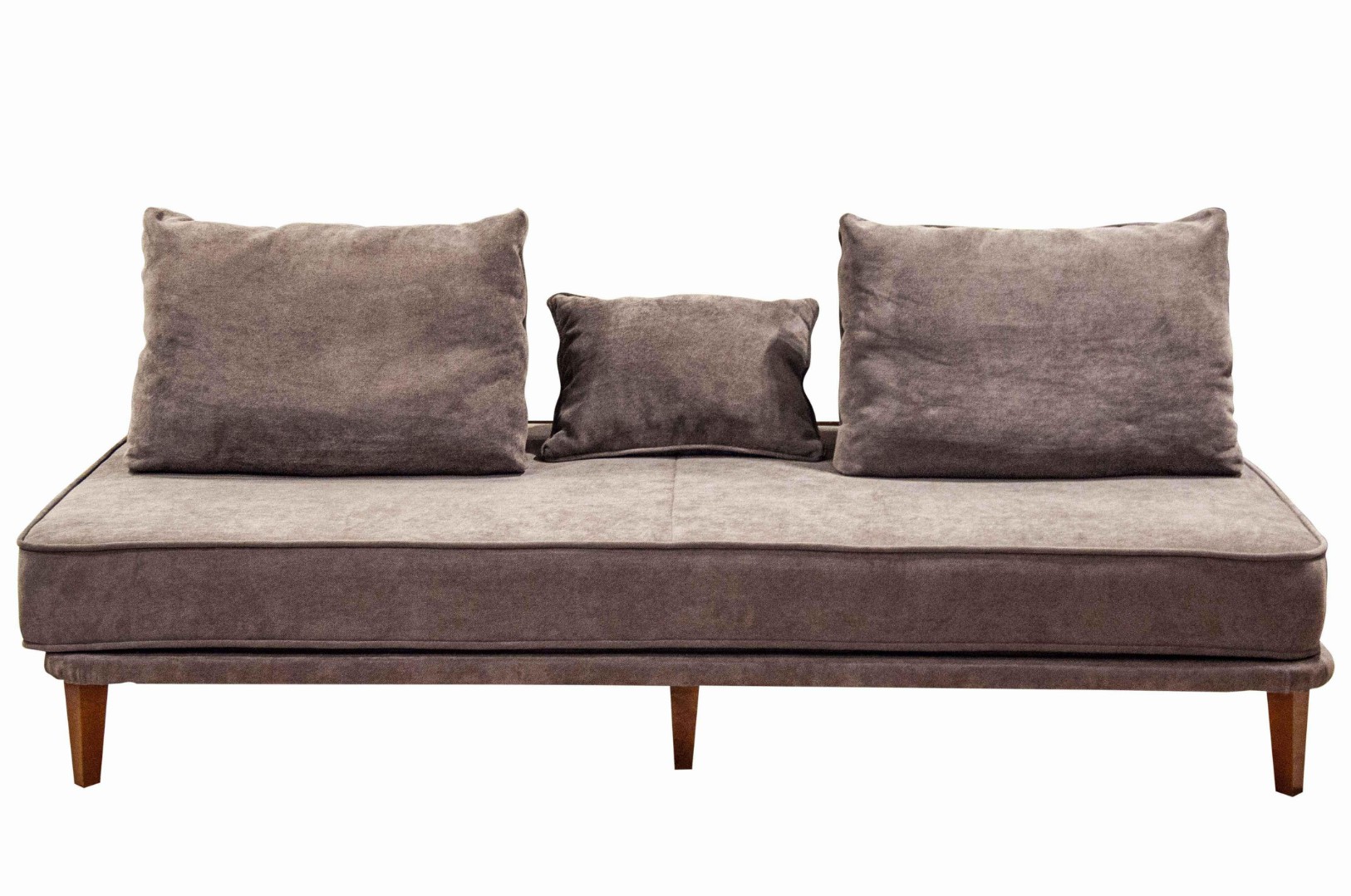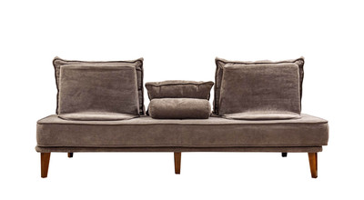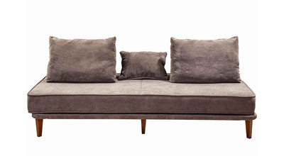 - прямой диван 1100*2200, самостоятельный модуль, спинку образуют каркасные подуши, а подлокотники представлены в виде валиков, площадь дивана полностью может быть использована под спальное место;