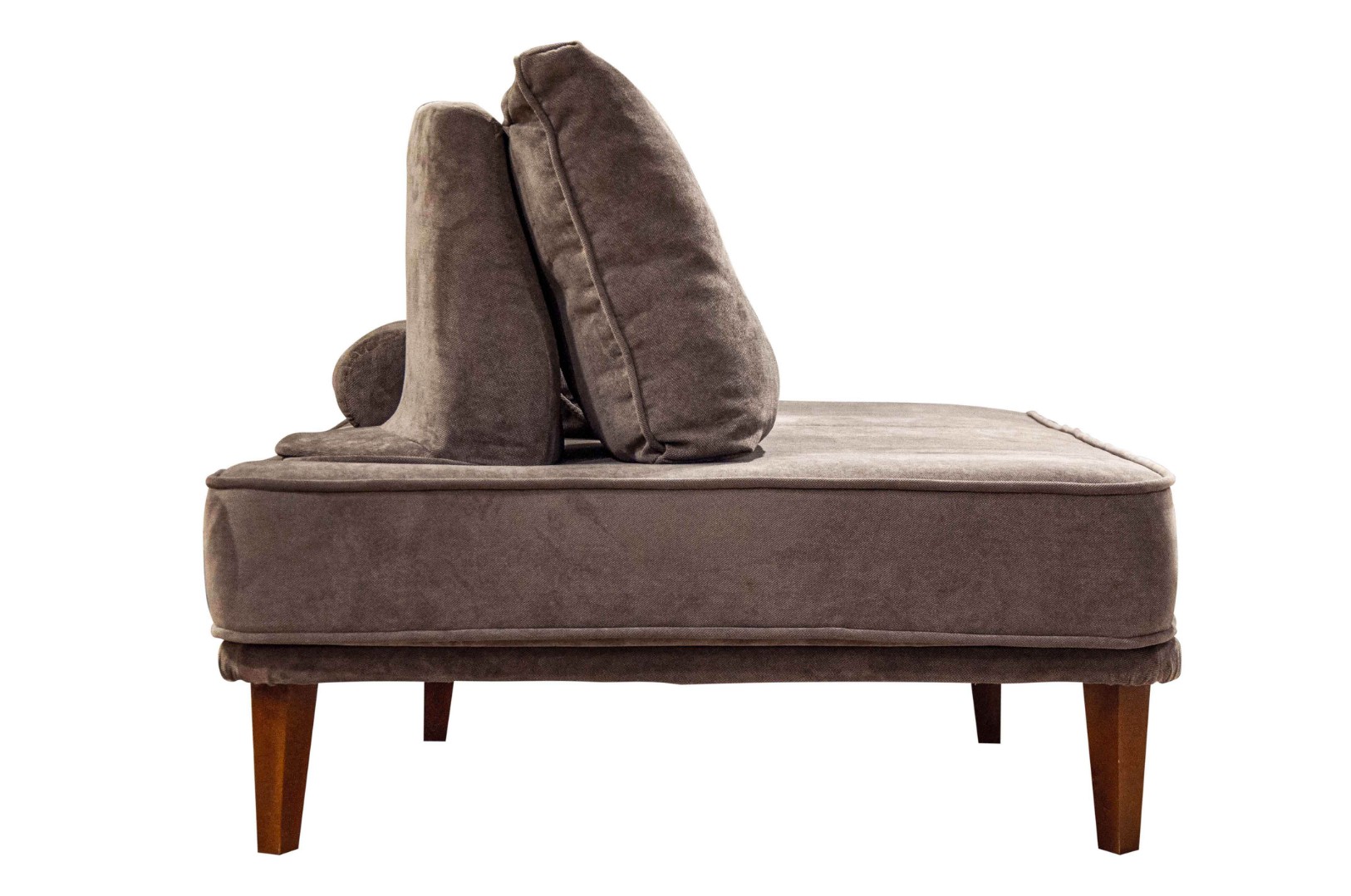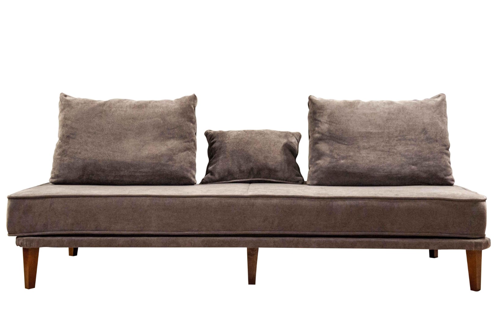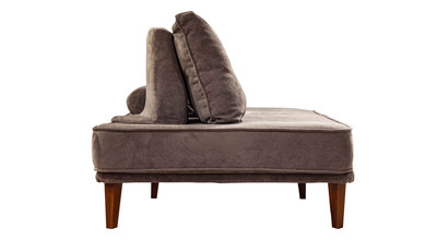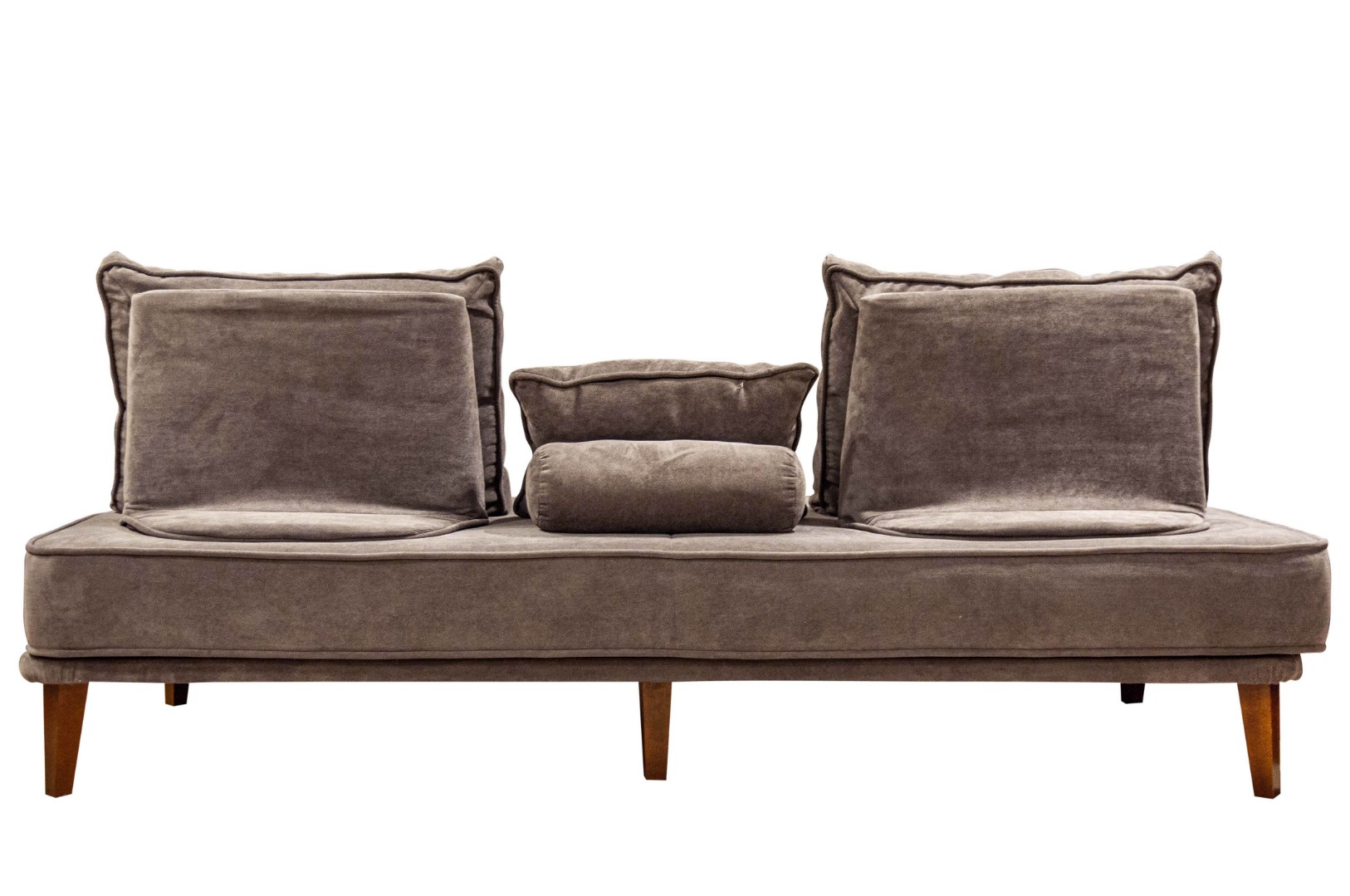 - прямой диван 1100*2200, самостоятельный модуль, спинку образуют каркасные подуши, а подлокотники представлены в виде валиков, площадь дивана полностью может быть использована под спальное место;