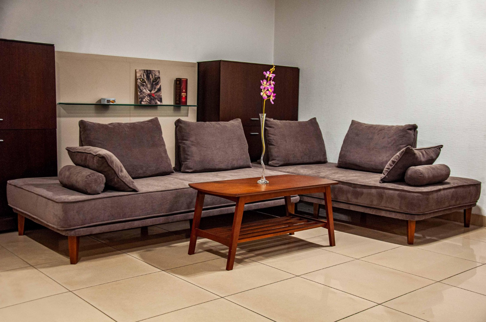 Простые выверенные формы в сочетании с большой глубиной сиденья и большими размерами модулей придают "Бродвею-1" необычайную пространственность и кажущуюся необъятность. А мягкие пуховые подушки располагают к уютному и комфортному отдыху. Нестандартное решение спинок выполняют каркасные подушки, валики служат альтернативной заменой подлокотникам.