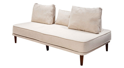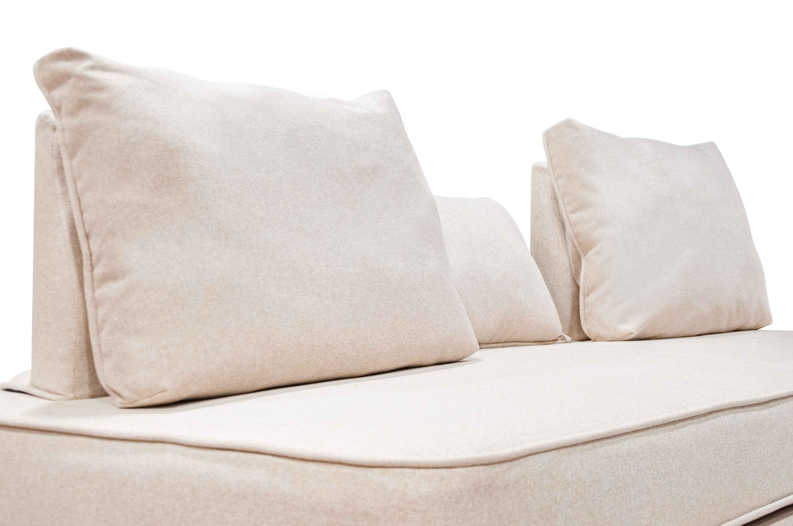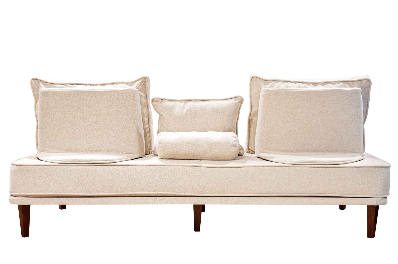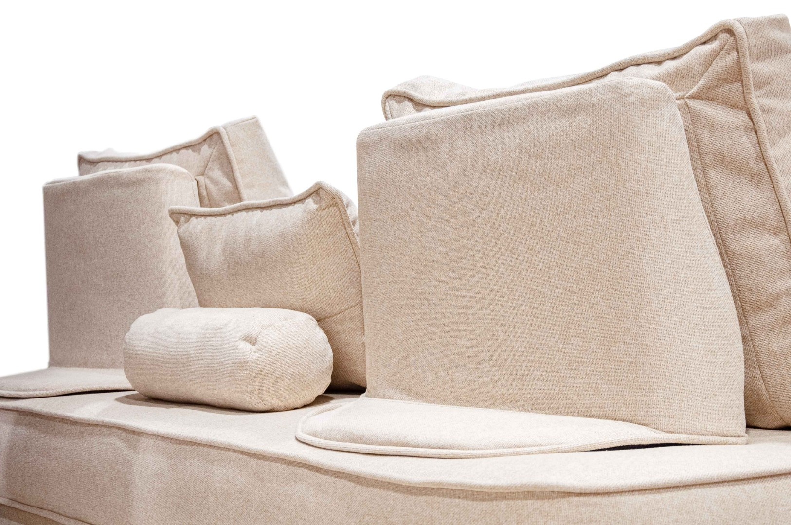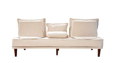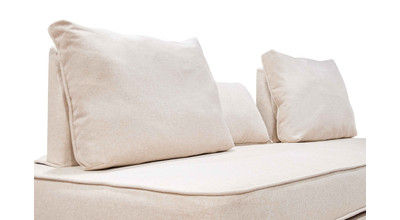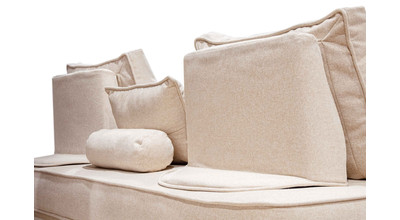 - прямой диван 1100*2200, самостоятельный модуль, спинку образуют каркасные подуши, а подлокотники представлены в виде валиков, площадь дивана полностью может быть использована под спальное место;
