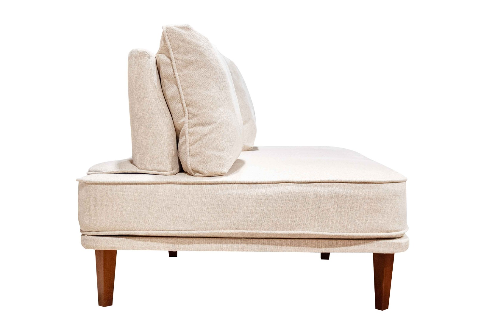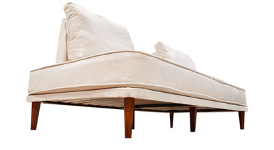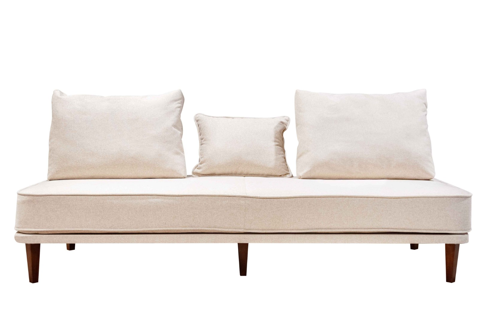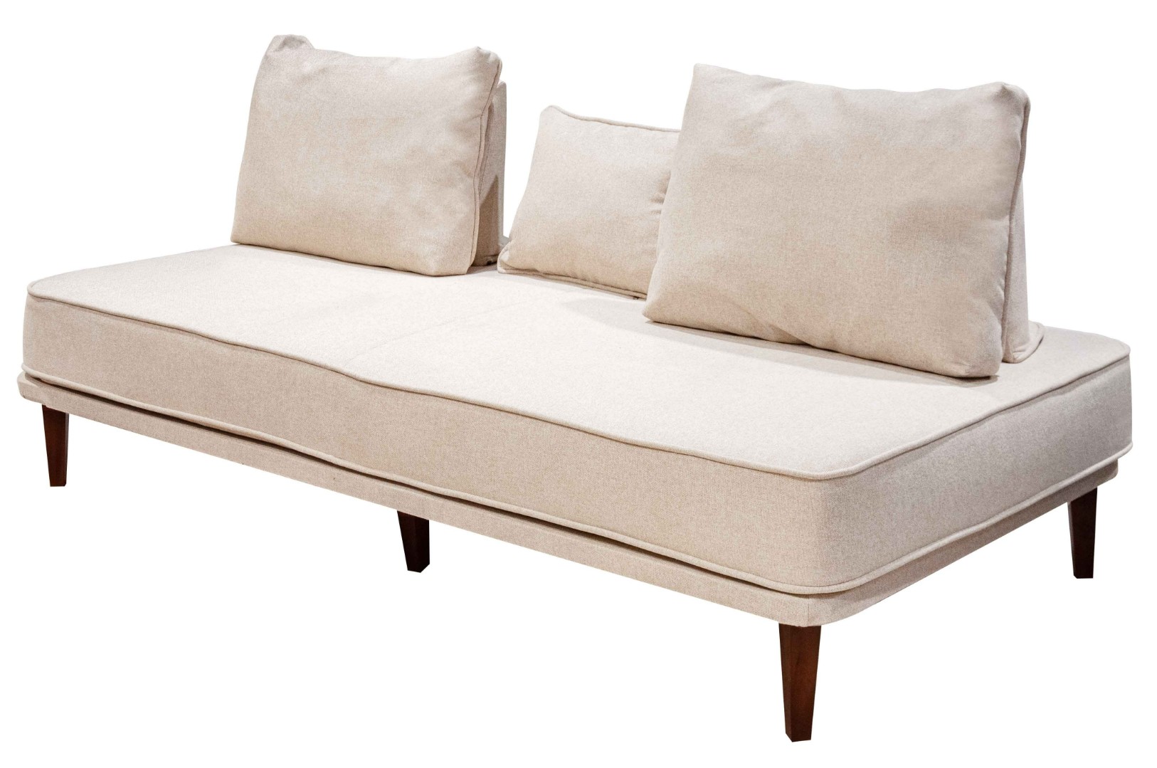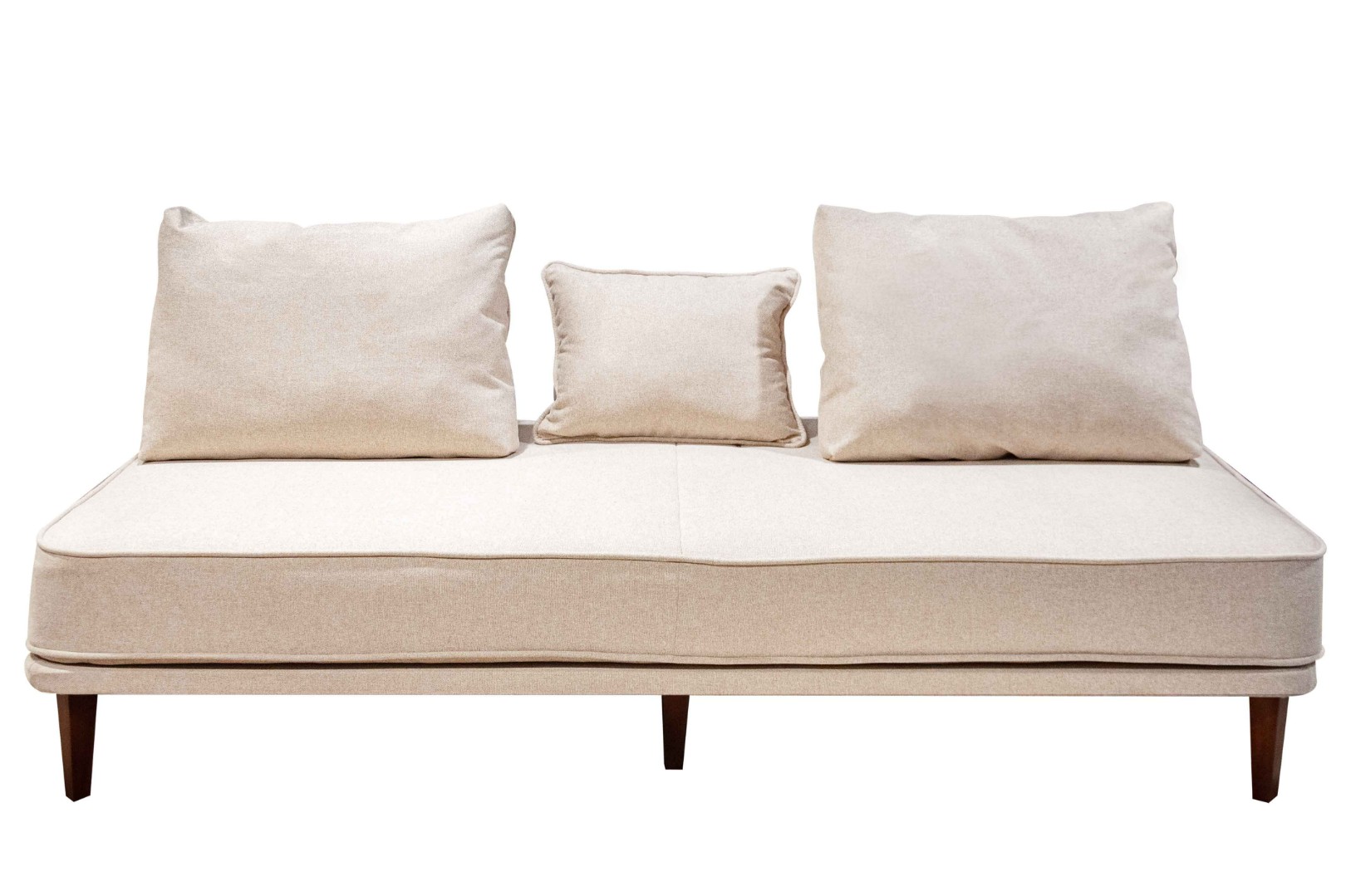 - прямой диван 1100*2200, самостоятельный модуль, спинку образуют каркасные подуши, а подлокотники представлены в виде валиков, площадь дивана полностью может быть использована под спальное место;