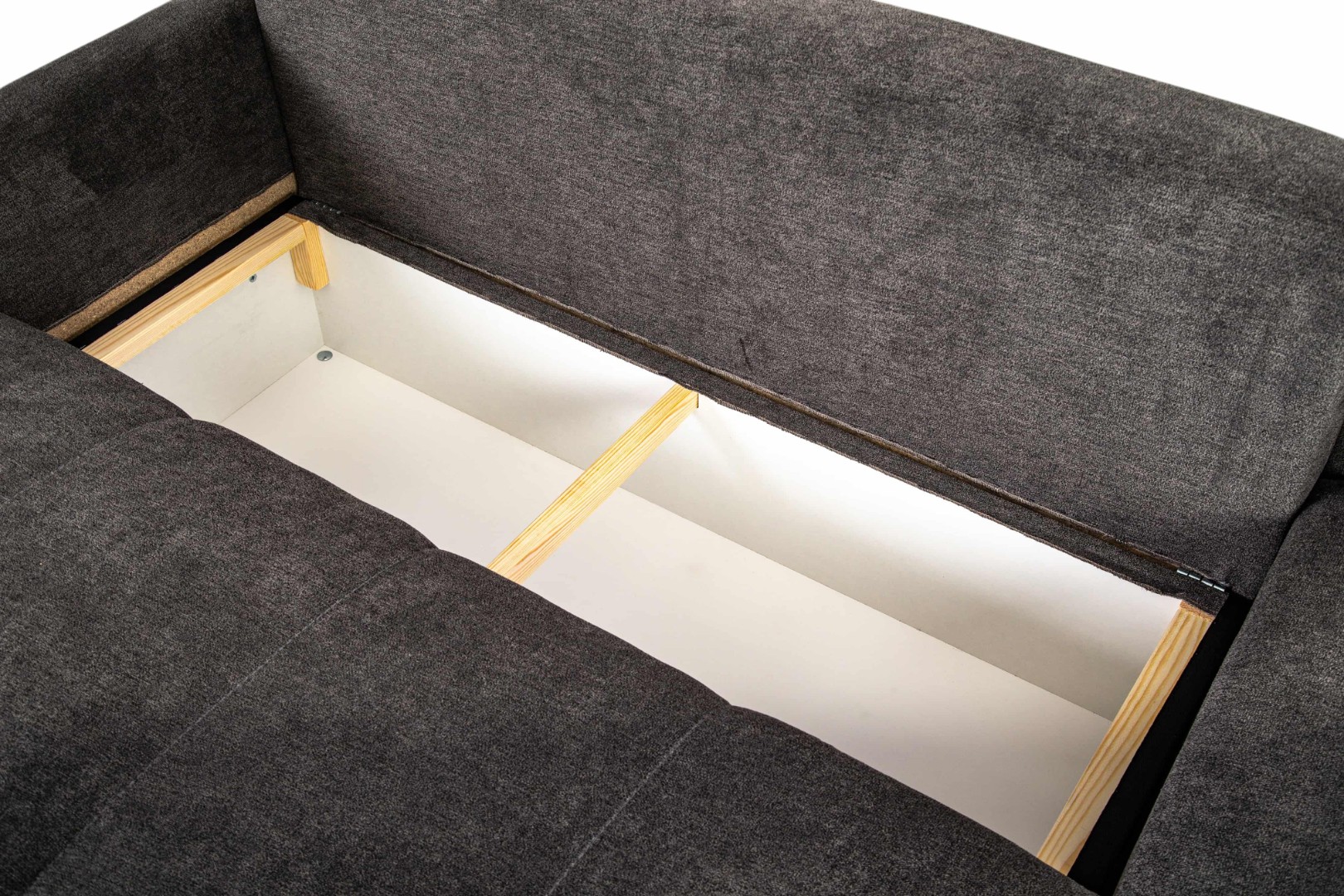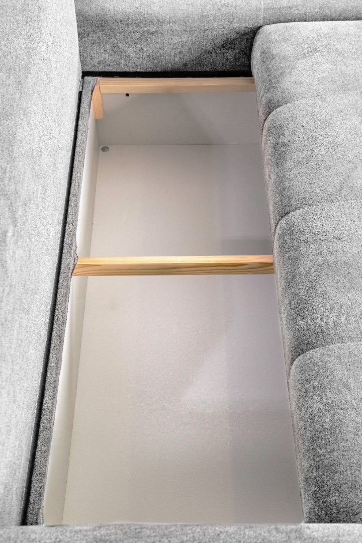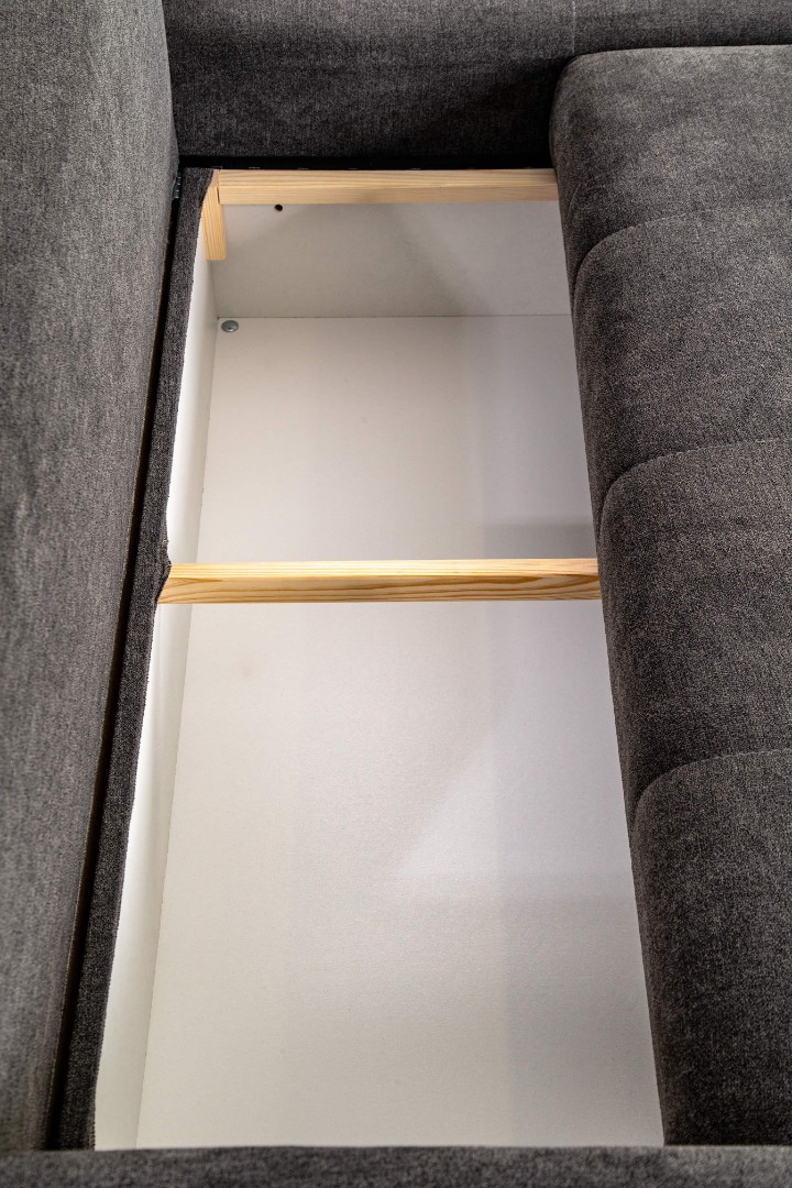 Один вместительный ящик под выдвижной частью позволяюет разместить комплект постельного белья, одеяло, плед, а также дополнительные подушки.