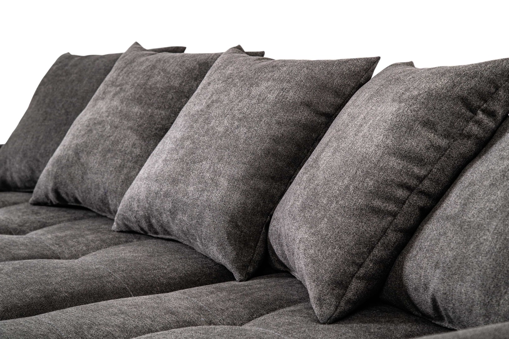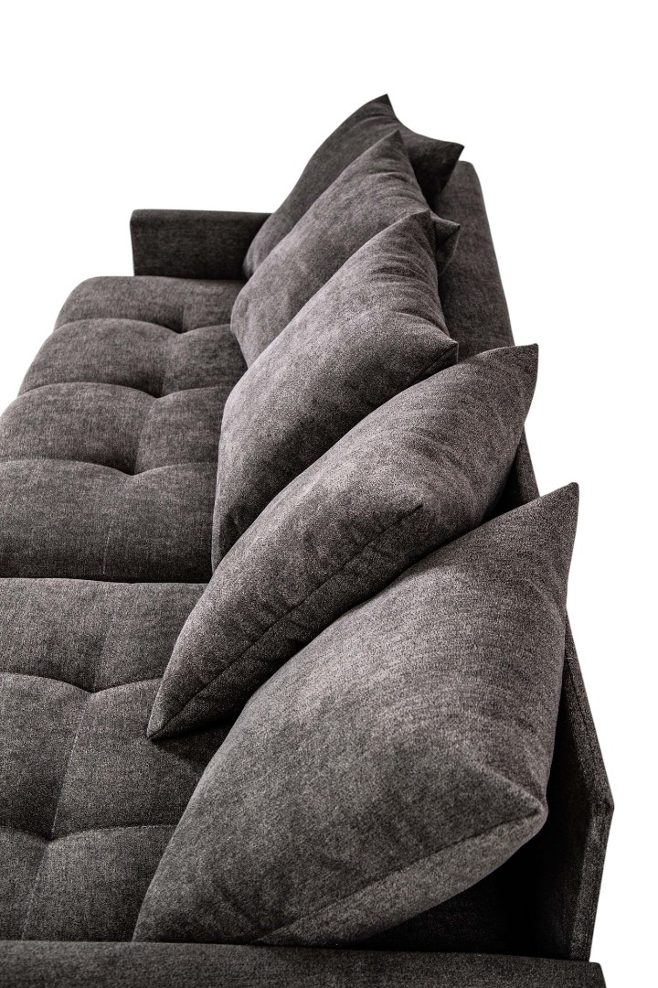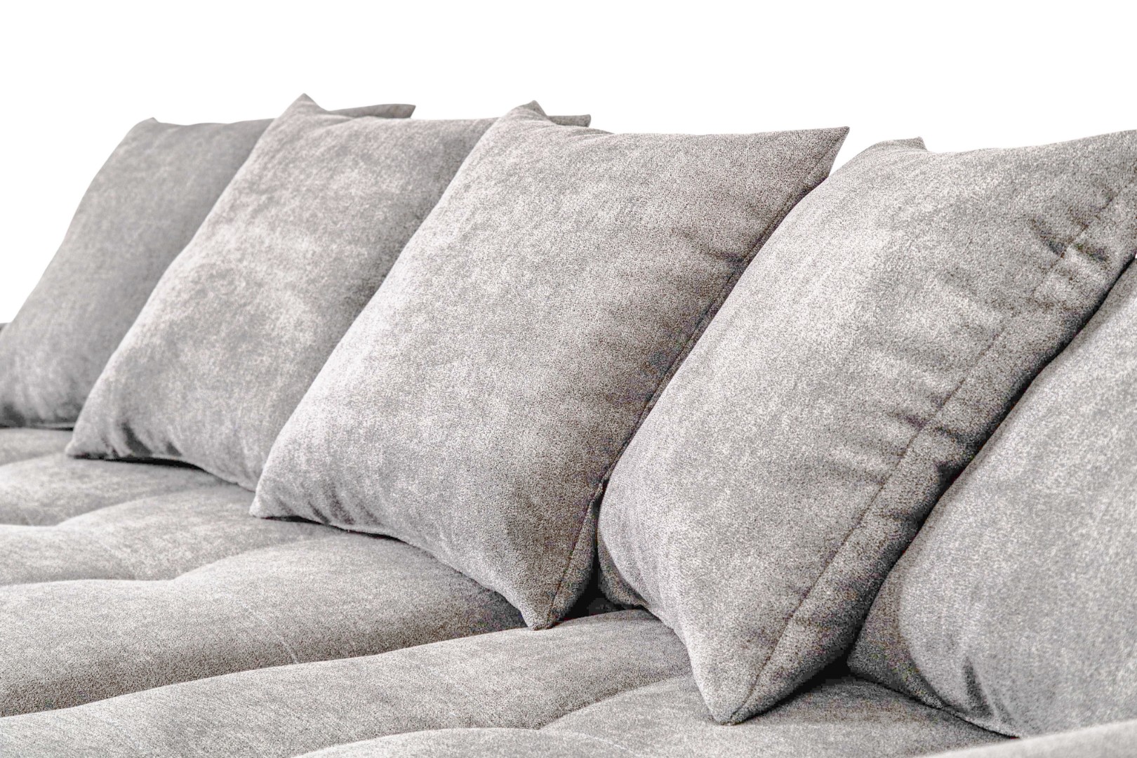 Наличие комплекта опорных подушек служит как декоративной, так и практической функцией представленной модели дивана.