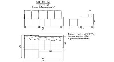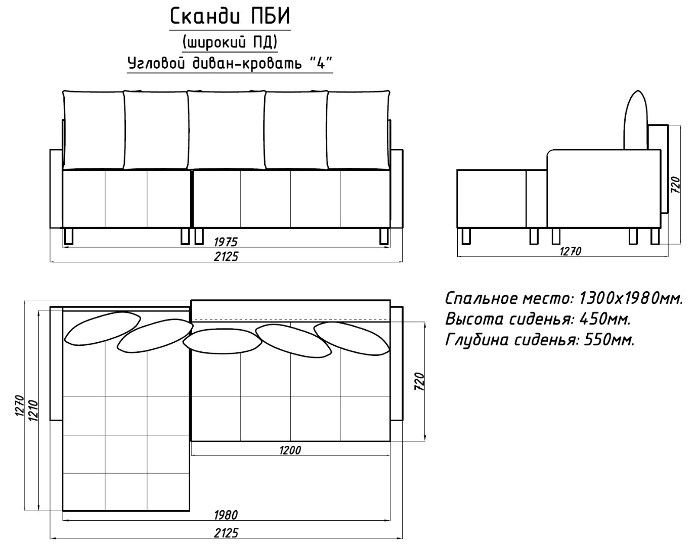 Диван-кровать «Сканди» небольшой и комфортабельный, что позволяет принять удобное положение как сидя, так и лёжа, даже не убирая подушки. Угловая часть имеет достаточноые размеры, что позволяет удобно разместиться на ней как в положении полусидя, так и лёжа.
