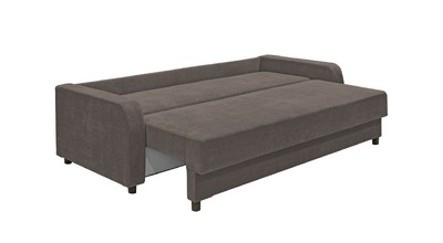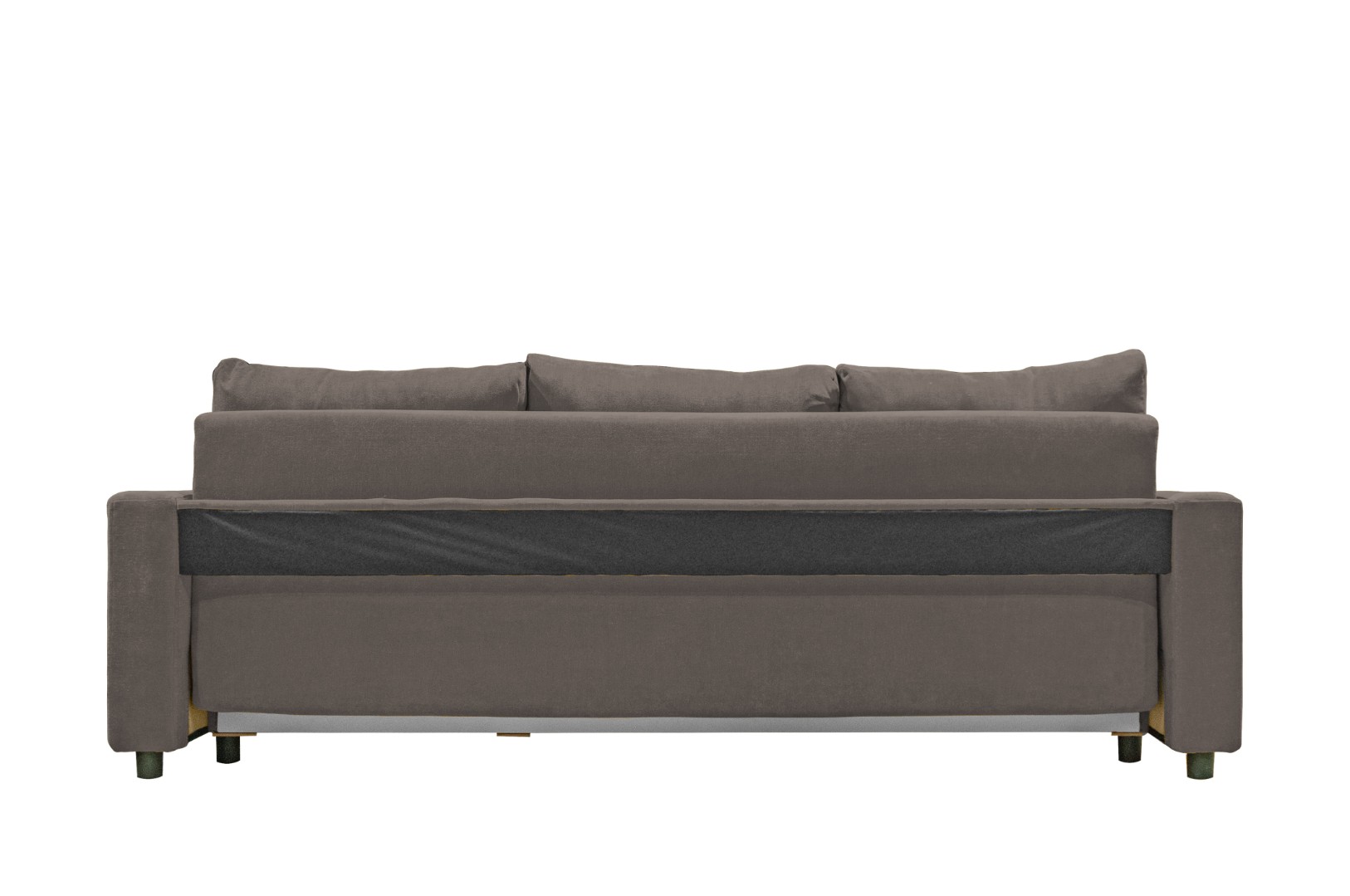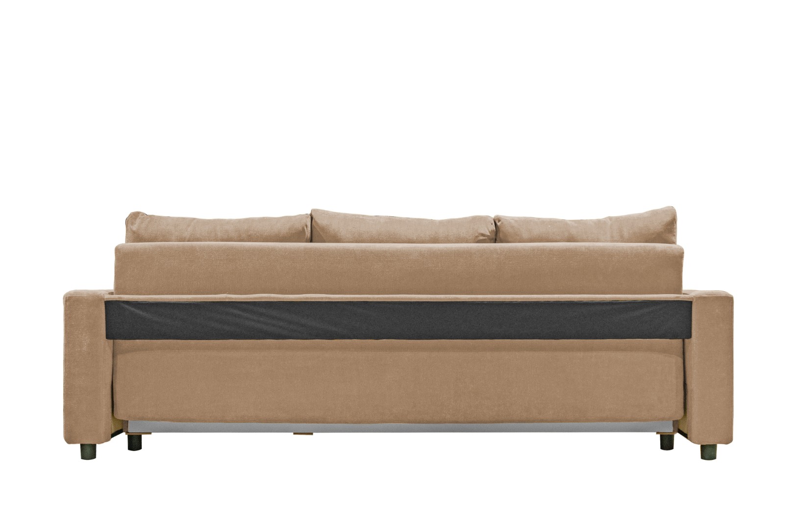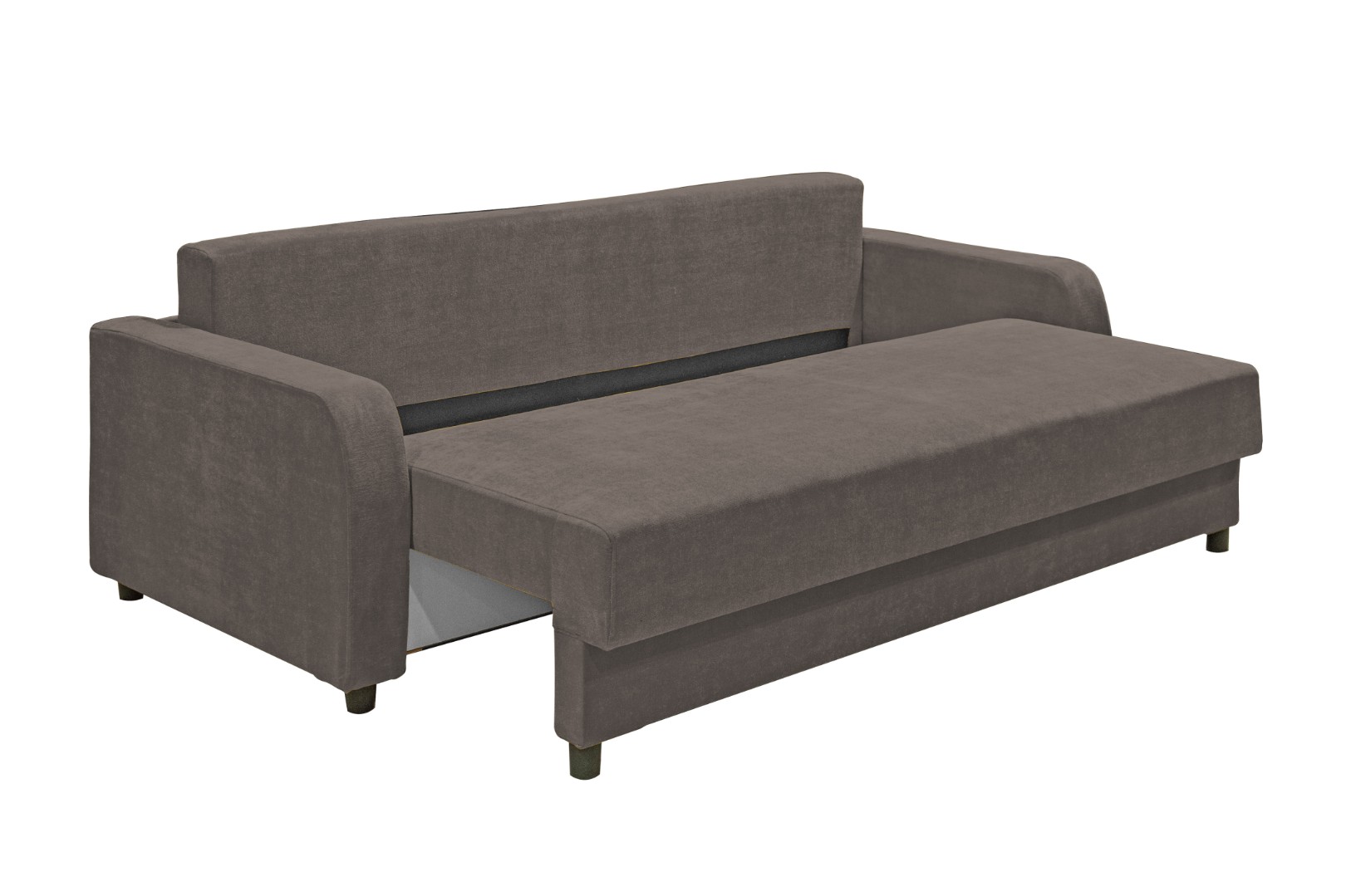 Мебель, изготовленная с применением такого механизма, имеет несколько достоинств: во-первых, можно варьировать размерами изделия, во-вторых, за счет использования недорогих комплектующих (роликов, петель), мебель относительно дешевая и доступна для покупателя. Подобный диван можно поставить вплотную к стене, в нём всегда есть вместительный бельевой ящик. Повышенная вместительность бельевого ящика обусловлена тем, что он занимает все пространство под сиденьем дивана. Недостатками является невозможность сделать спинку анатомической, но данная проблема решается за счет подушек, набитых синтетическим пухом, и то, что сиденье при выдвижении «ездит» по полу, поэтому будьте бдительны, владельцы дорогих паркетов и пушистых ковров. В разложенном виде подобные диваны достаточно громоздкие. Однако даже в этом минусе есть плюс – ведь вы получаете полноценное, максимально просторное спальное место.