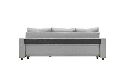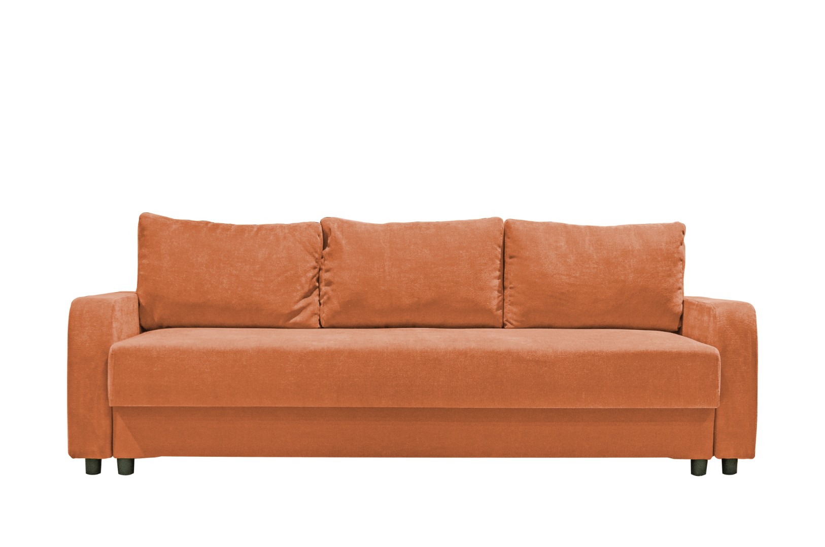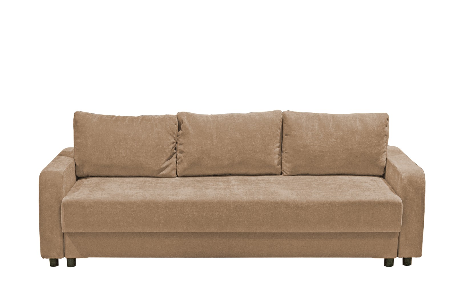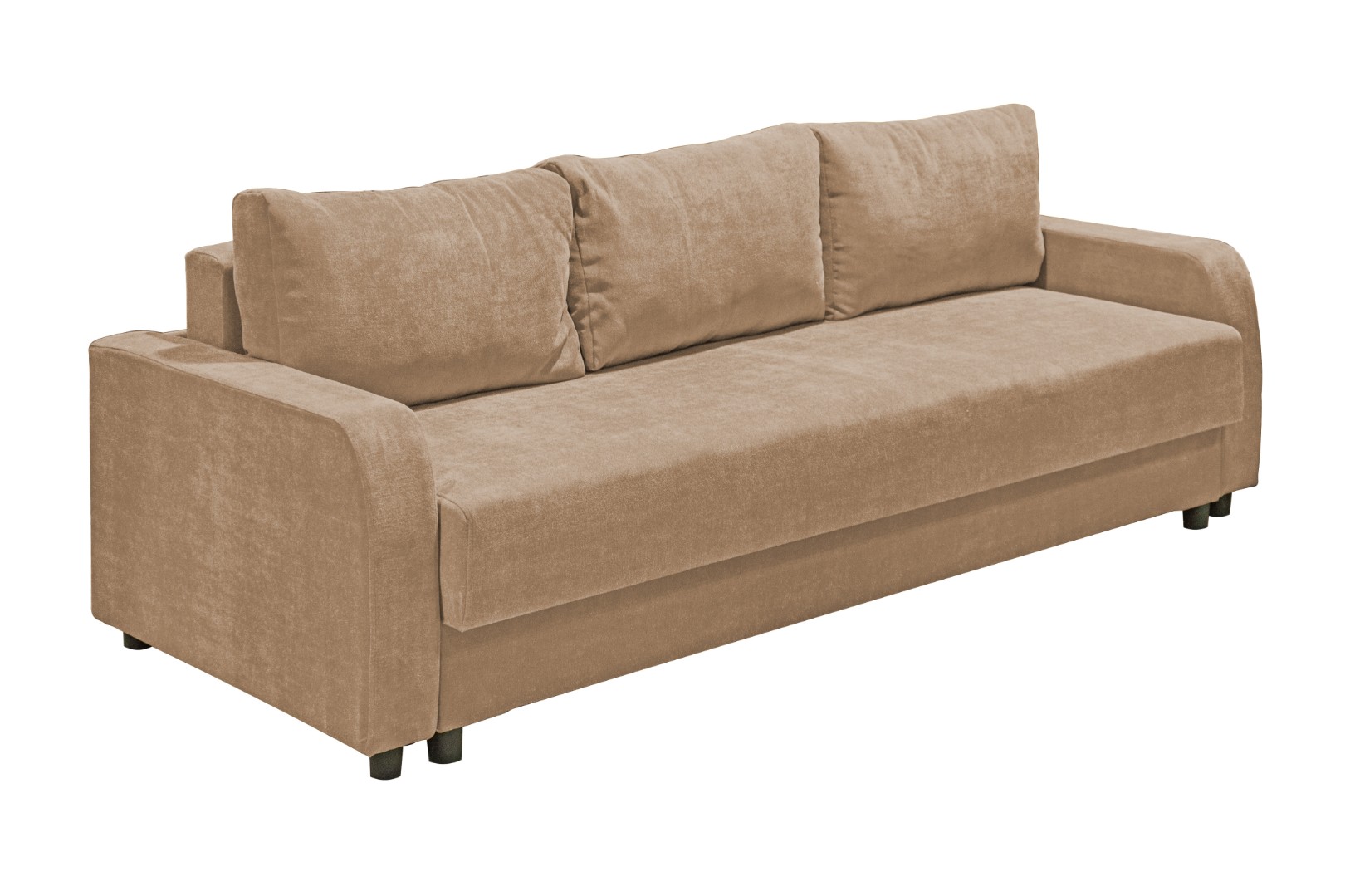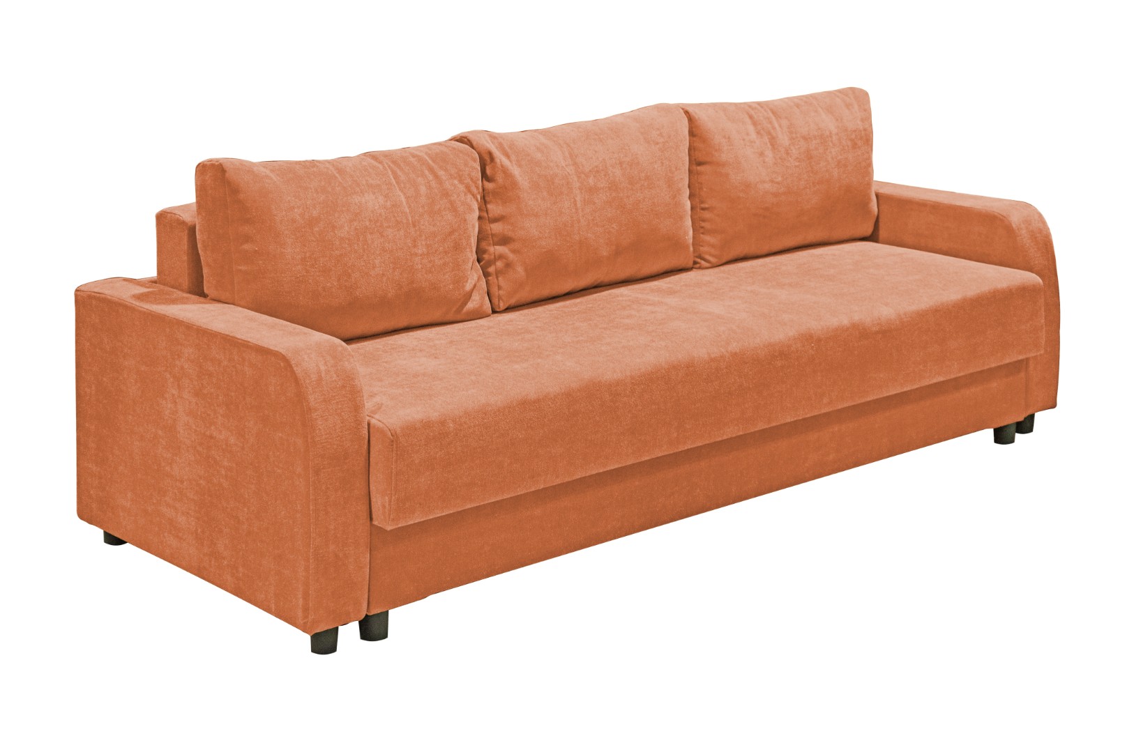 Мебель, изготовленная с применением такого механизма, имеет несколько достоинств: во-первых, можно варьировать размерами изделия, во-вторых, за счет использования недорогих комплектующих (роликов, петель), мебель относительно дешевая и доступна для покупателя. Подобный диван можно поставить вплотную к стене, в нём всегда есть вместительный бельевой ящик. Повышенная вместительность бельевого ящика обусловлена тем, что он занимает все пространство под сиденьем дивана. Недостатками является невозможность сделать спинку анатомической, но данная проблема решается за счет подушек, набитых синтетическим пухом, и то, что сиденье при выдвижении «ездит» по полу, поэтому будьте бдительны, владельцы дорогих паркетов и пушистых ковров. В разложенном виде подобные диваны достаточно громоздкие. Однако даже в этом минусе есть плюс – ведь вы получаете полноценное, максимально просторное спальное место.