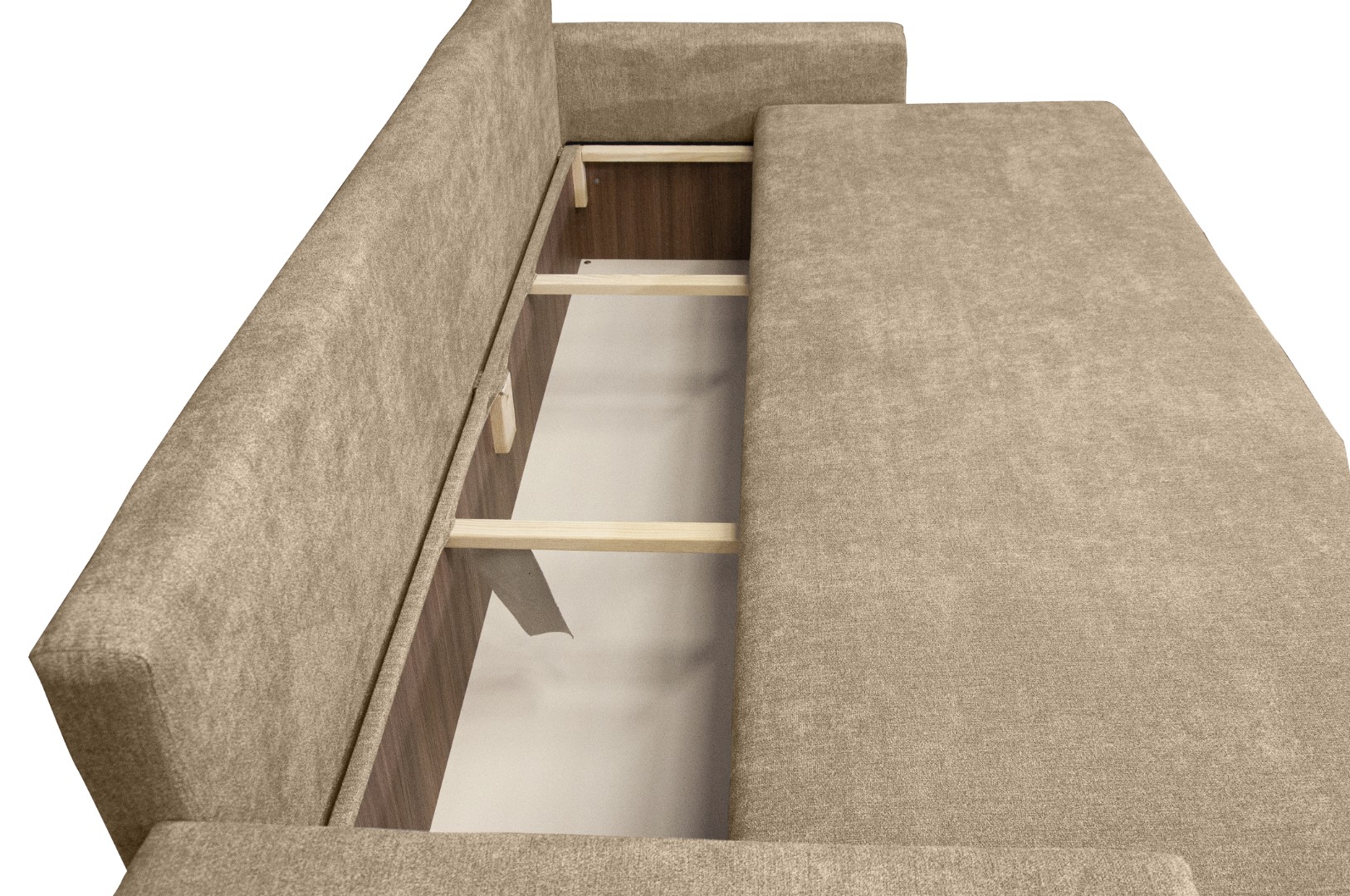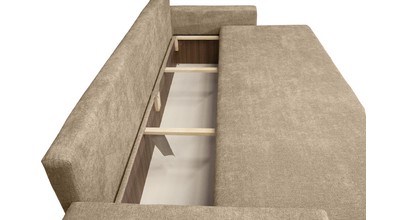 Площадь дивана полностью используется под спальное место. Спальное место - умеренно жесткое. Наполнение - высокоэластичный пенополиуретан.