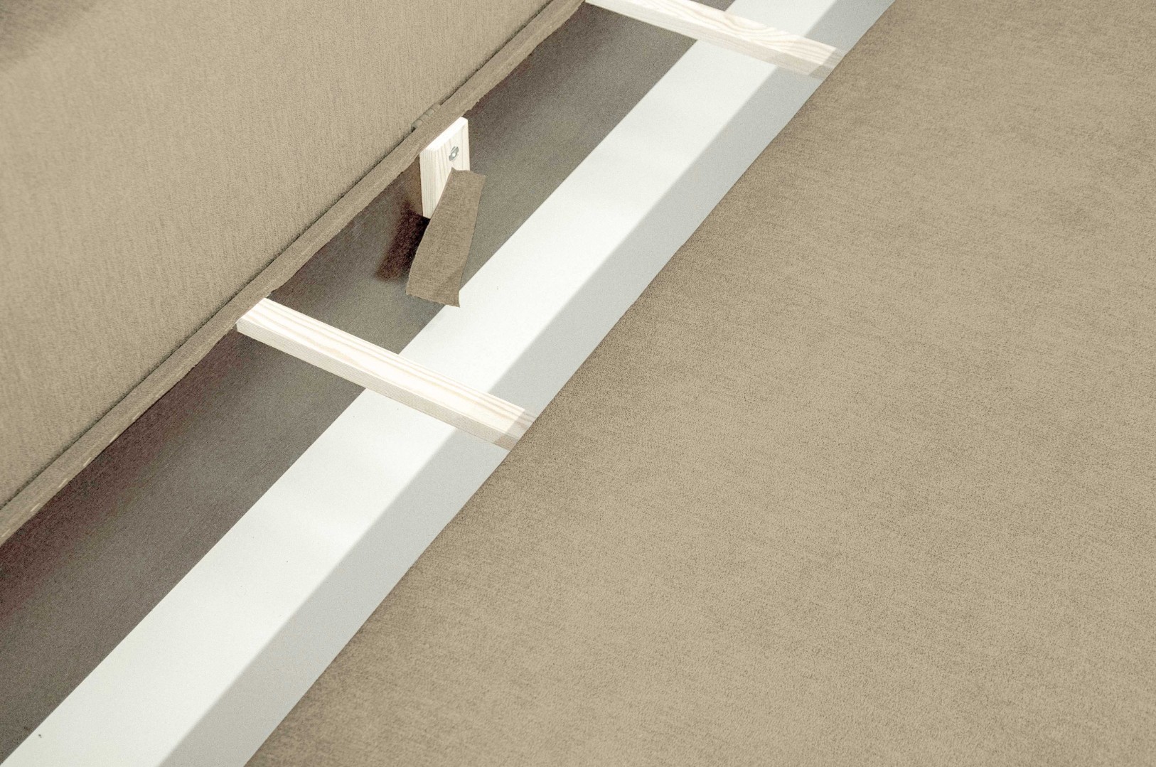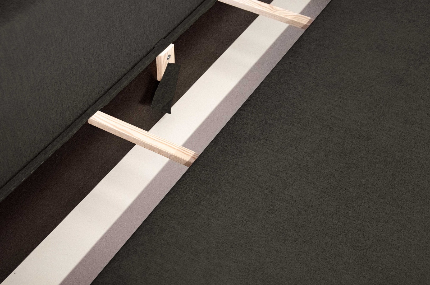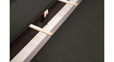 Прочность каркаса обеспечивает использование сухого бруса хвойных пород и ДСП. Имеет вместительный ящик для хранения постельных принадлежностей.