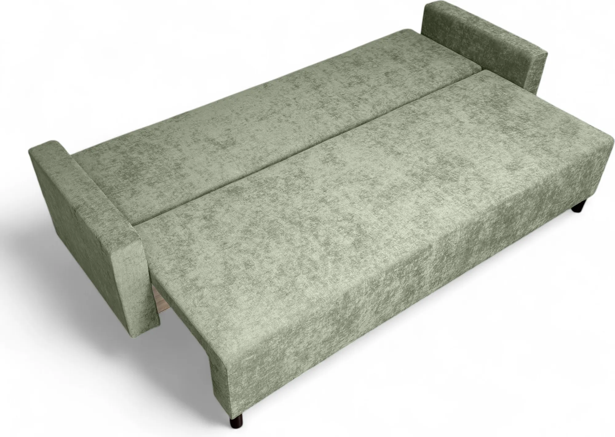 Площадь дивана полностью используется под спальное место. Спальное место — умеренно жесткое. Наполнение — высокоэластичный пенополиуретан.