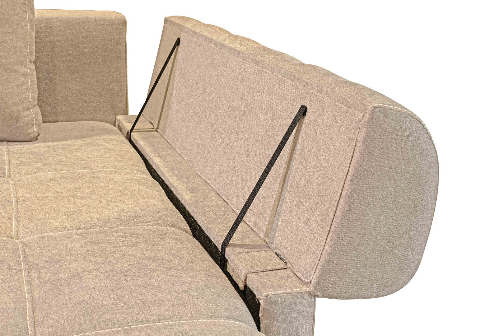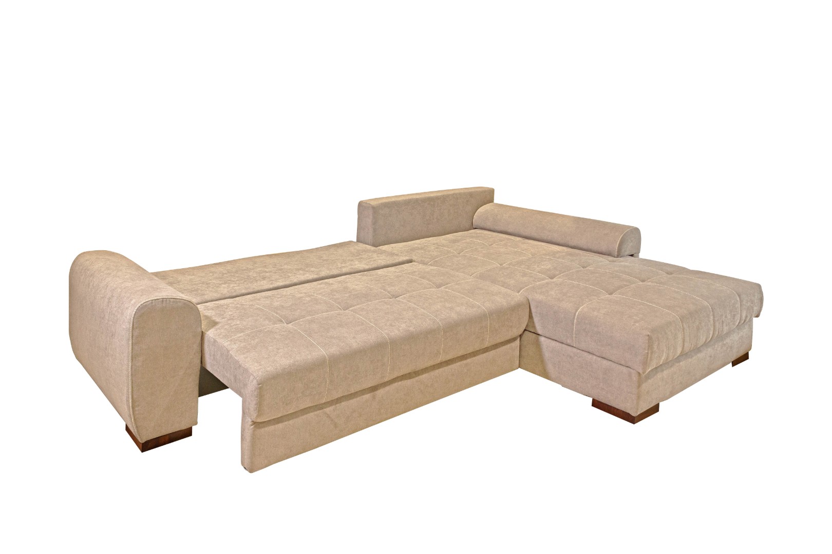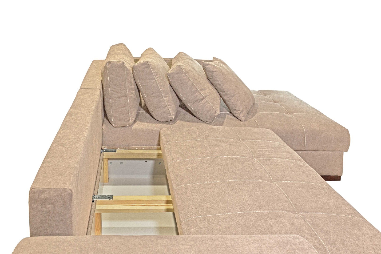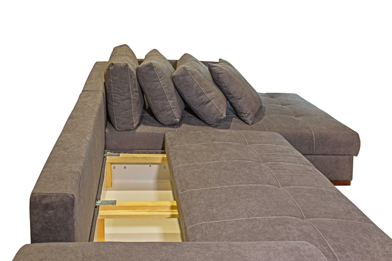 Два вместительных ящика (под выдвижной и угловой частями) позволяют разместить несколько комплектов постельного белья, одеяло, плед, а также дополнительные подушки.