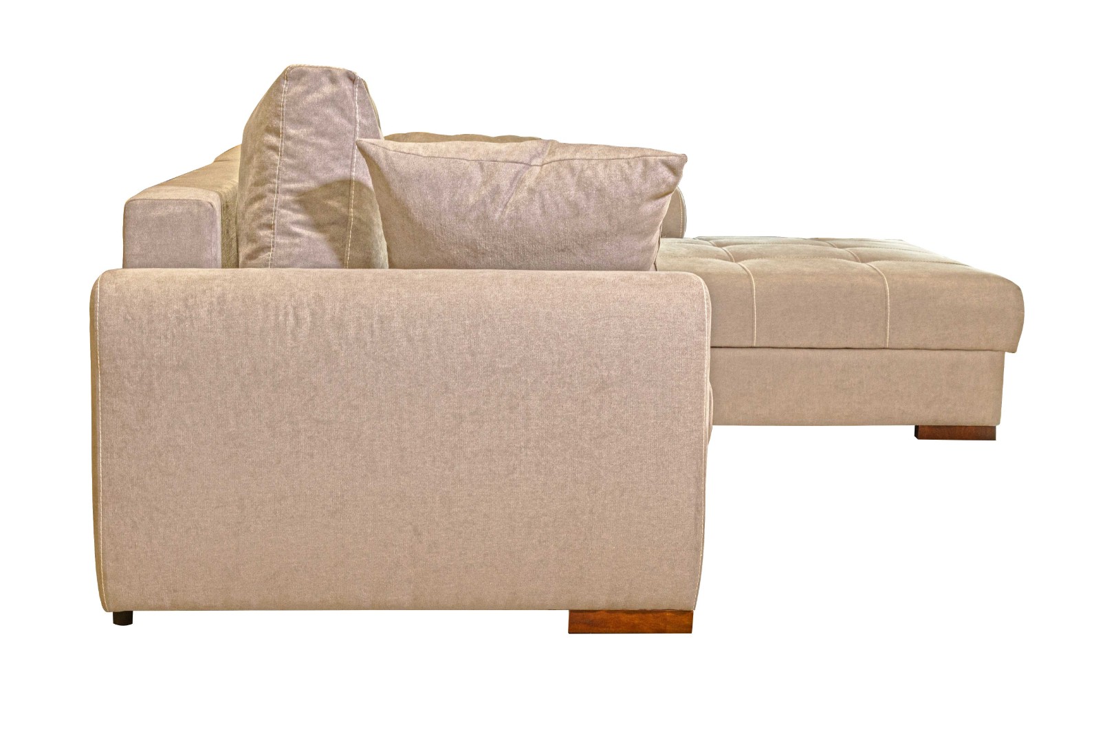 Наличие больших опорных и маленьких боковых подушек служит как декоративной, так и практической функцией представленной модели дивана.