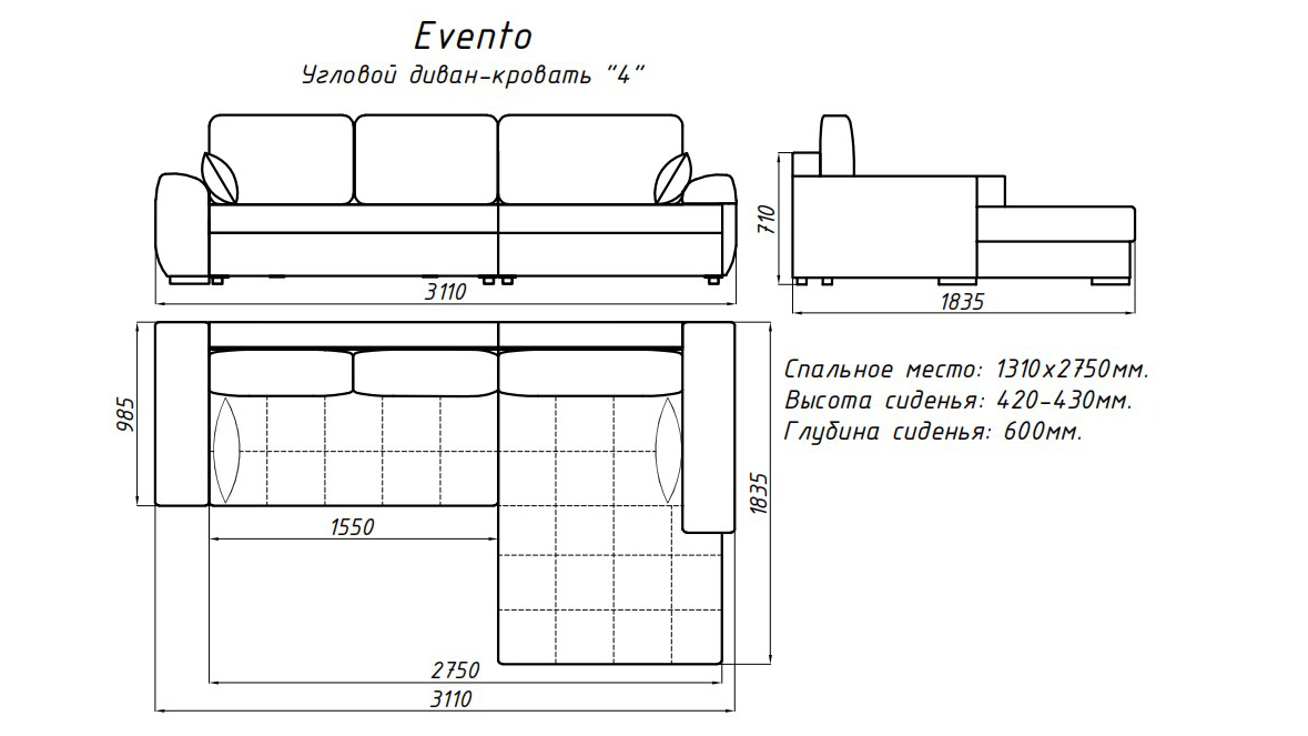 «Evento» - большой угловой диван-кровать, который станет центром притяжения для всей семьи и прекрасным местом для комфортного отдыха большой компании друзей . Это отличное сочетание стиля, комфорта и практичности.