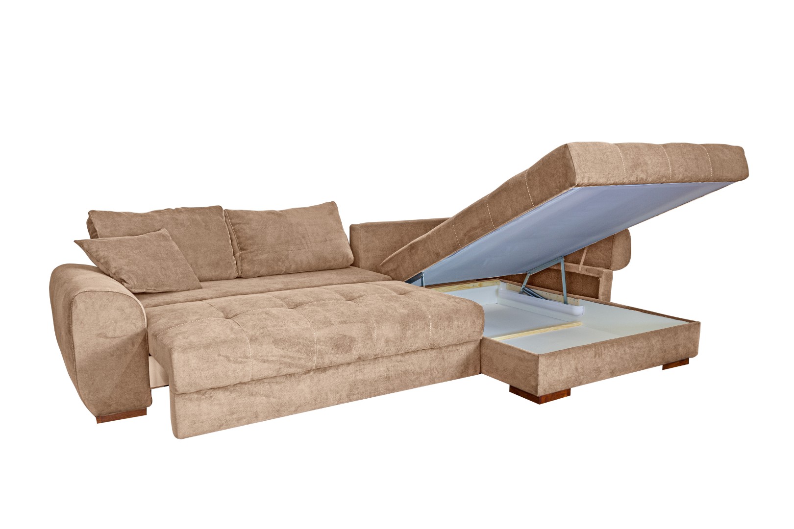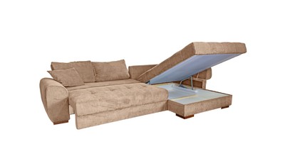 Два вместительных ящика (под выдвижной и угловой частями) позволяют разместить несколько комплектов постельного белья, одеяло, плед, а также дополнительные подушки.