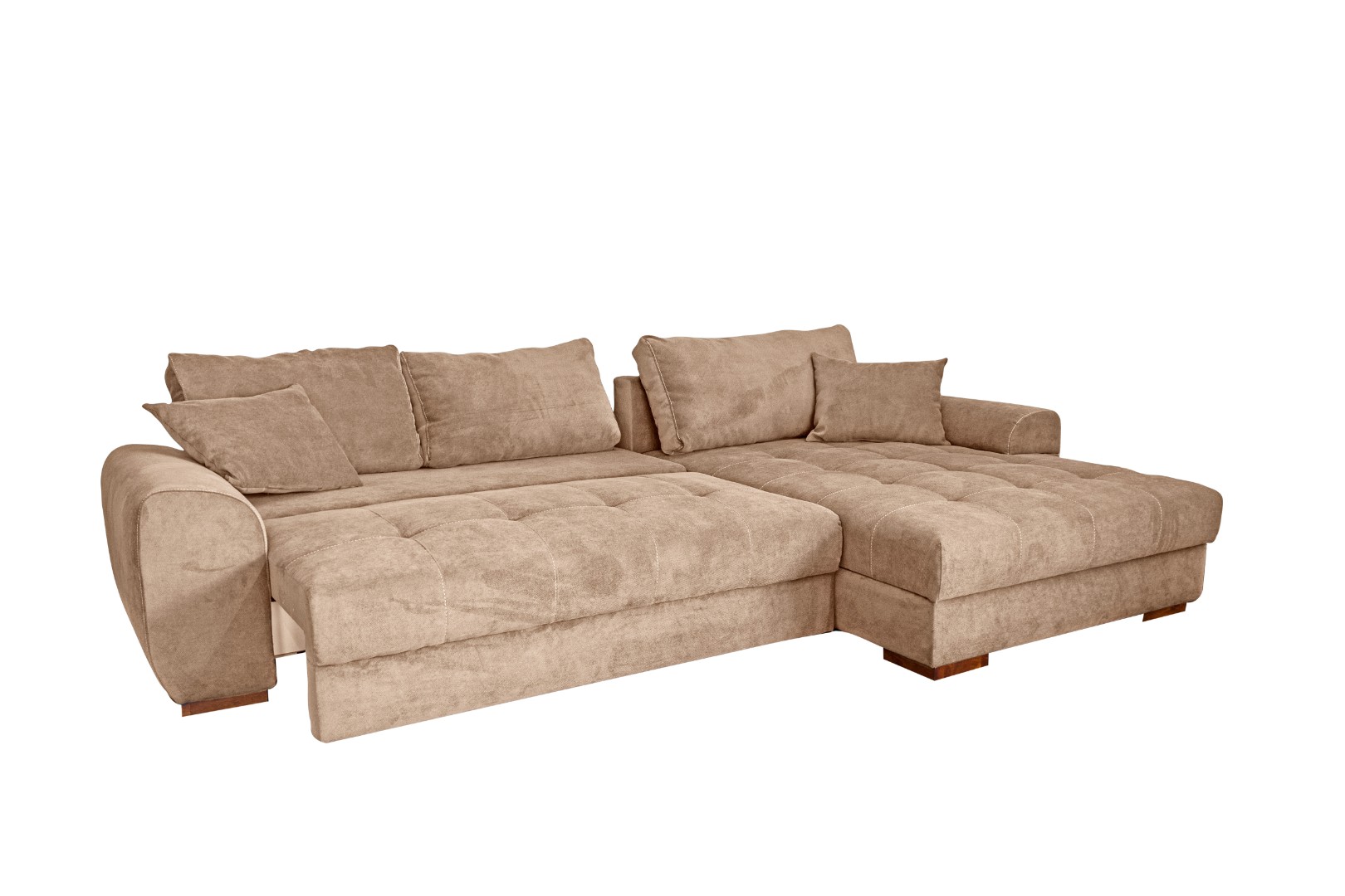 Диван-кровать «Evento» настолько большой и комфортабельный, что позволяет принять удобное положение как сидя, так и лёжа, даже не убирая подушки. Угловая часть имеет достаточно большие размеры по ширине и длине, что позволяет удобно разместиться на ней как в положении полусидя, так и лёжа.