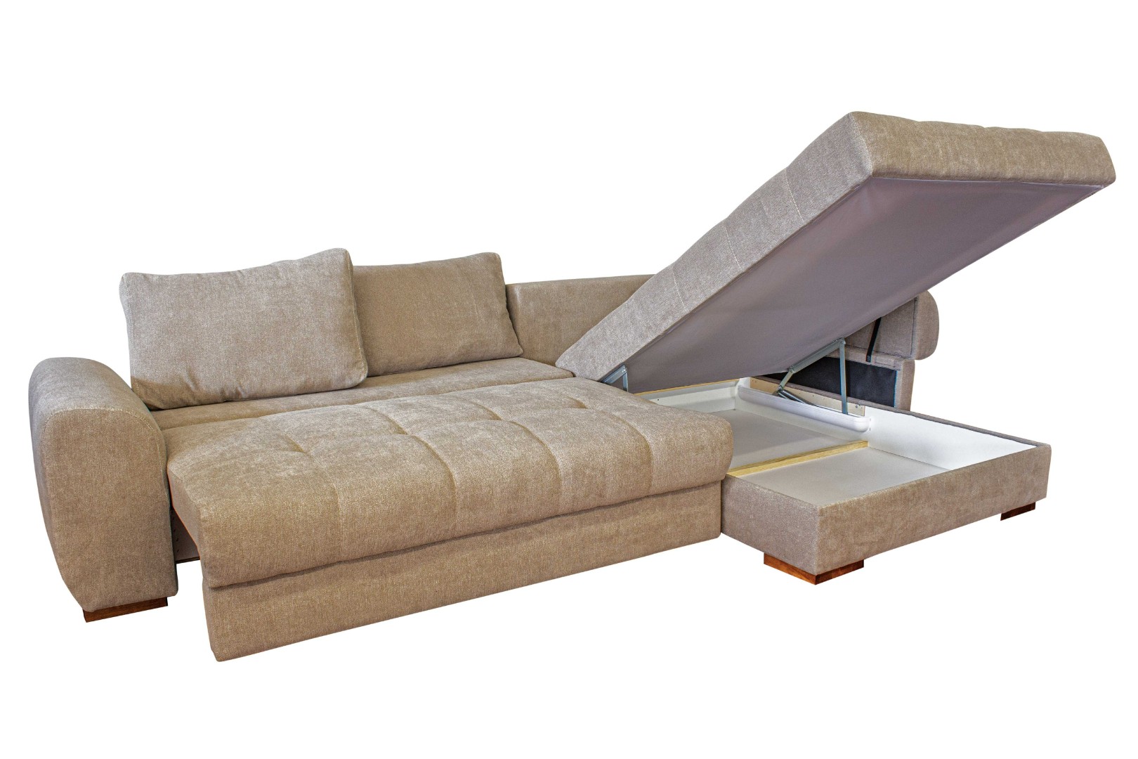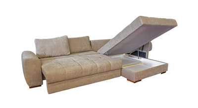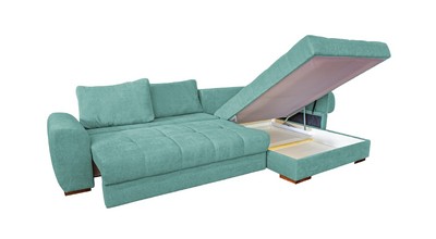 Два вместительных ящика (под выдвижной и угловой частями) позволяют разместить несколько комплектов постельного белья, одеяло, плед, а также дополнительные подушки.