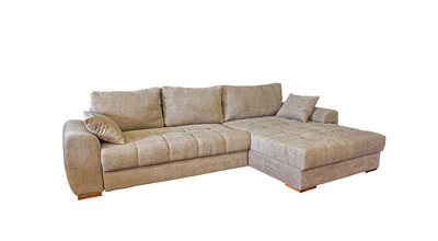 Модель углового дивана со всех сторон обита тканью, а потому может быть использована для зонирования пространства в квартирах-студиях.