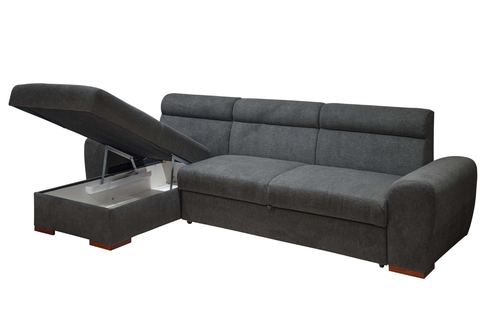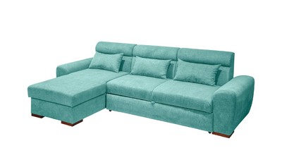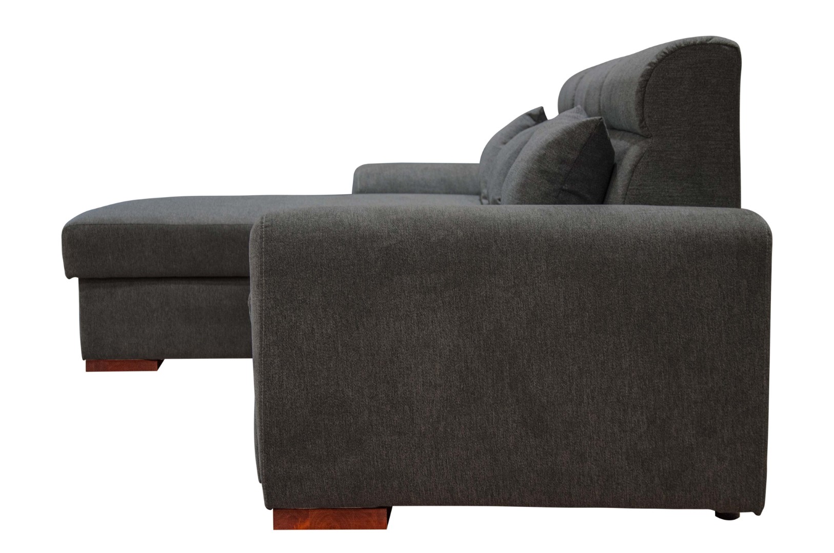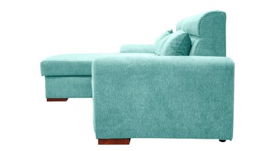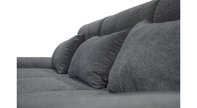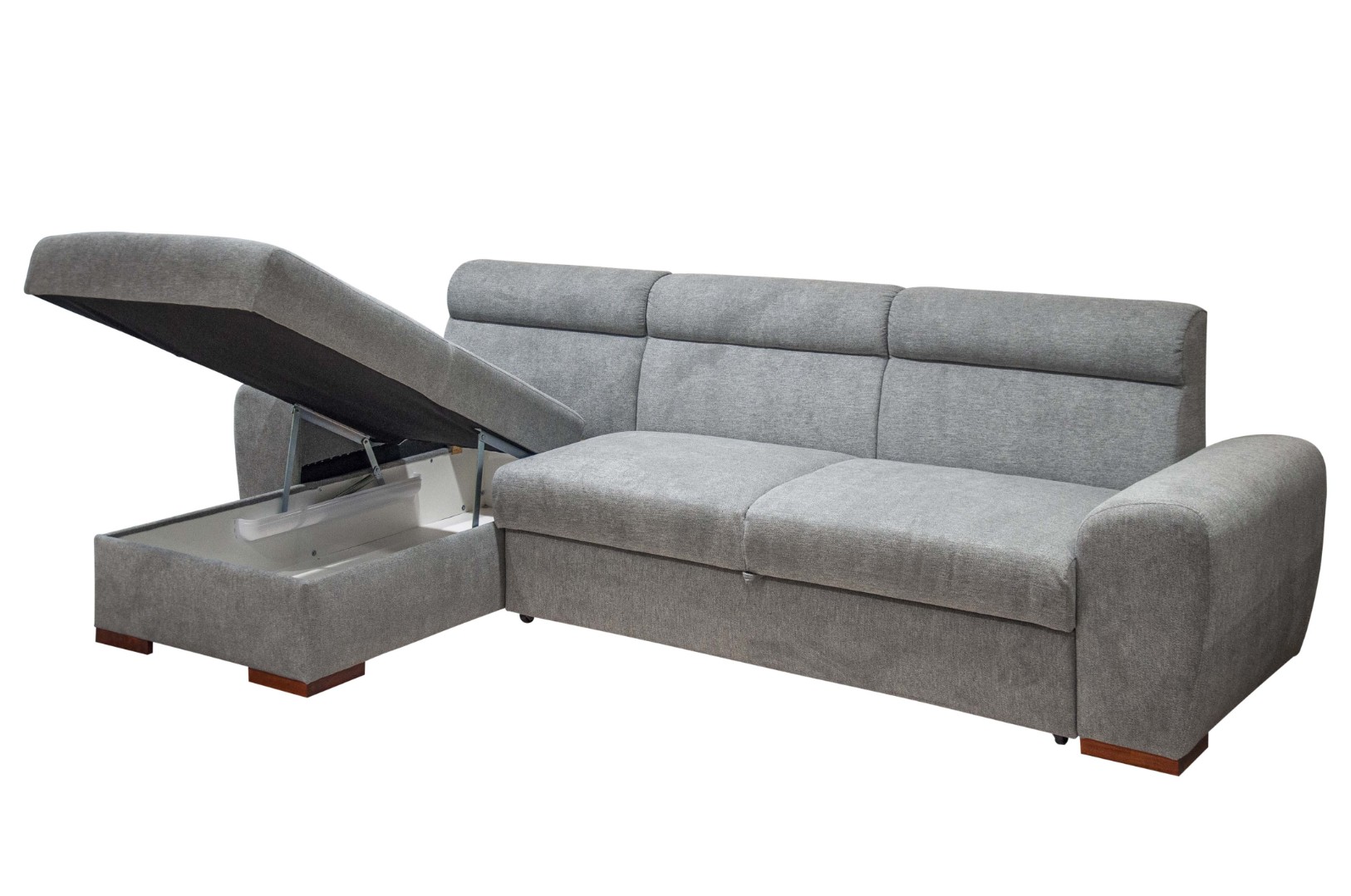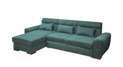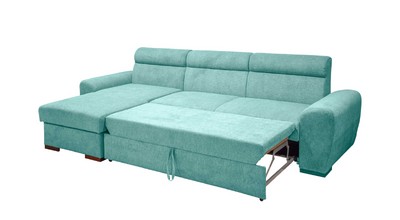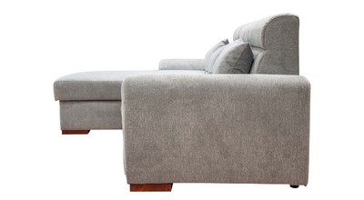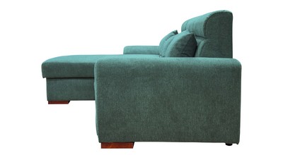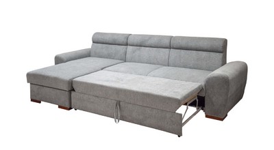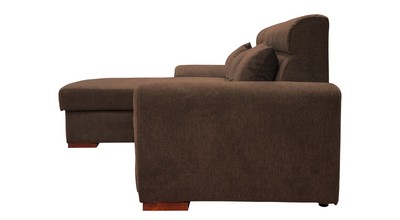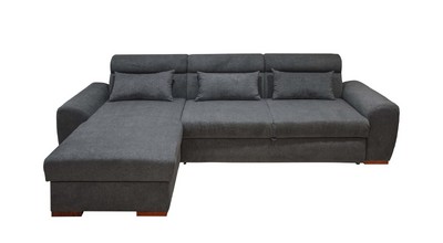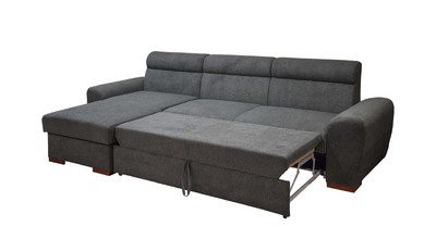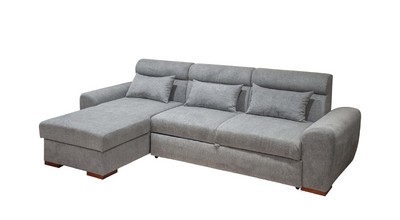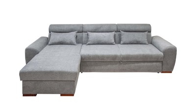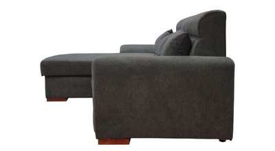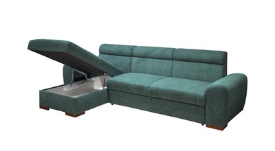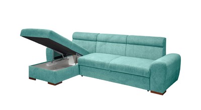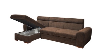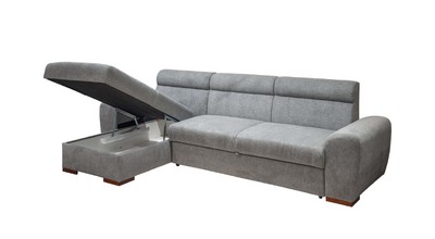 Вместительный ящик для спальных принадлежностей расположен под угловой частью дивана. Доступ к ящику обеспечивает подъемный механизм.