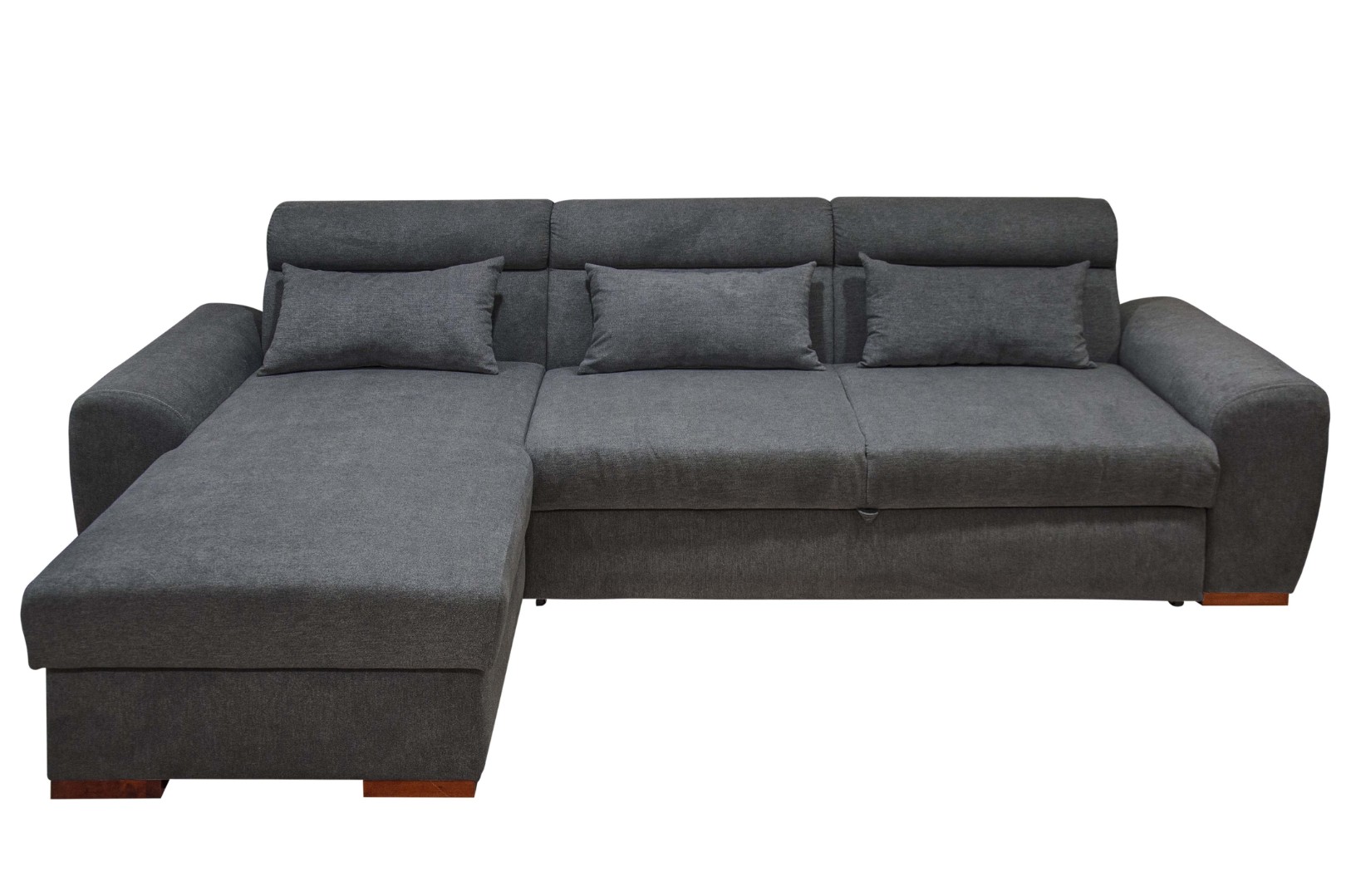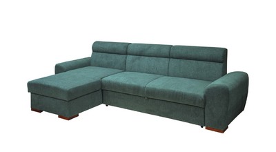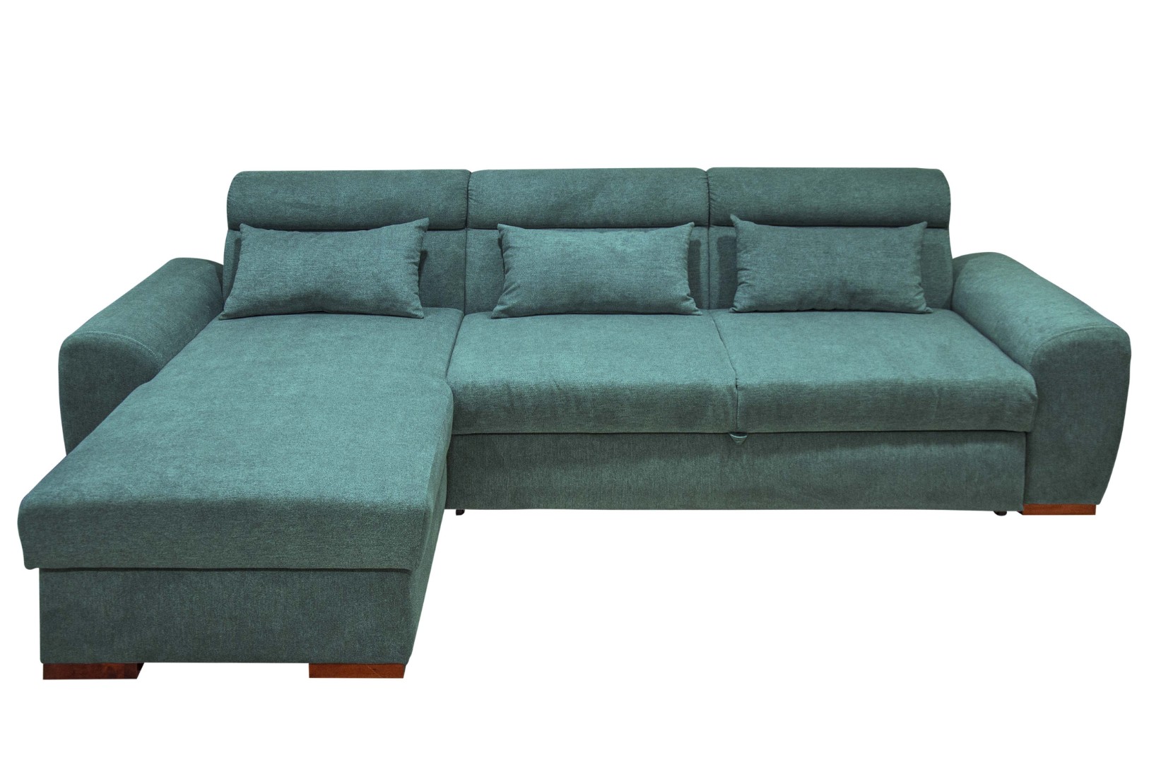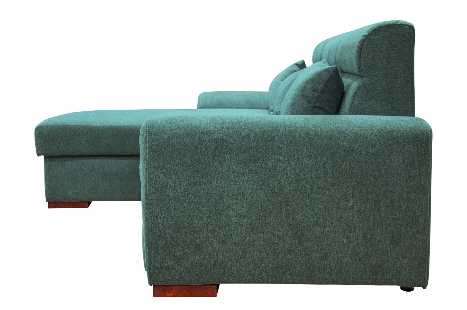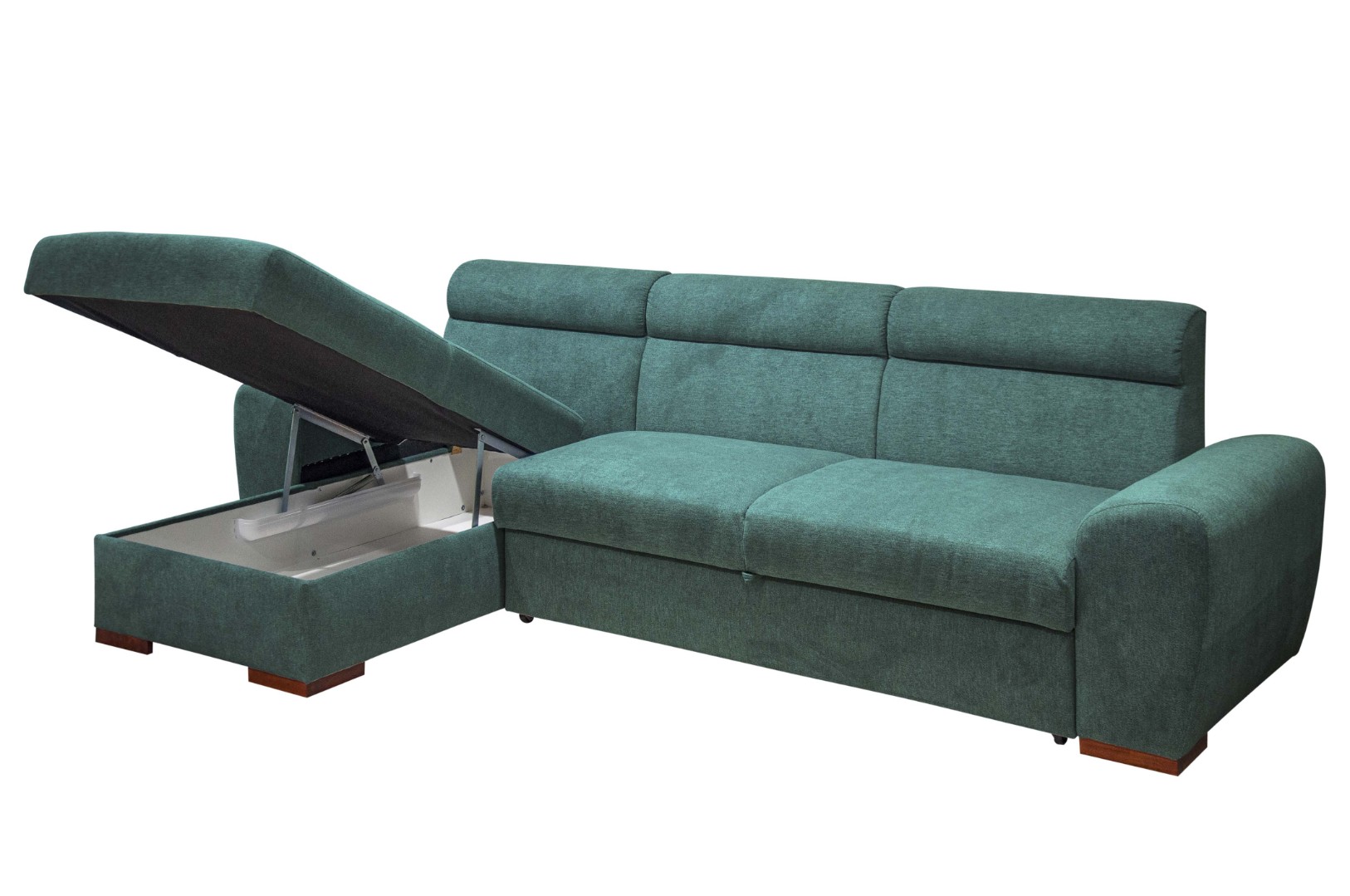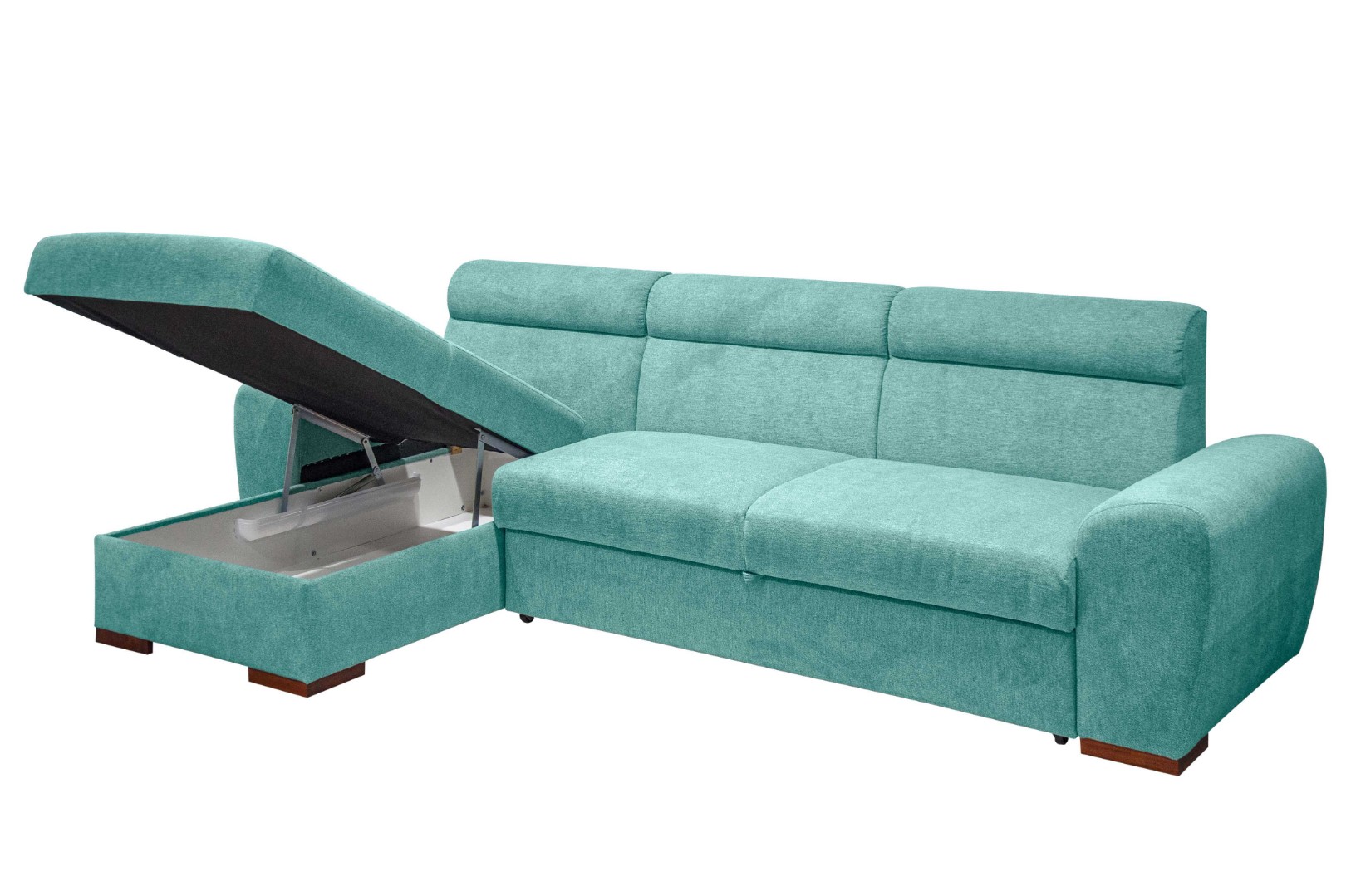 Вместительный ящик для спальных принадлежностей расположен под угловой частью дивана. Доступ к ящику обеспечивает подъемный механизм.