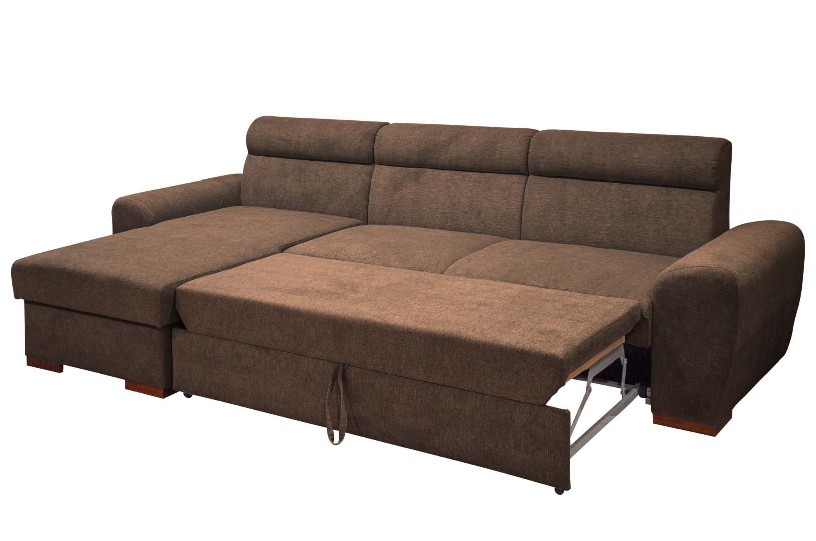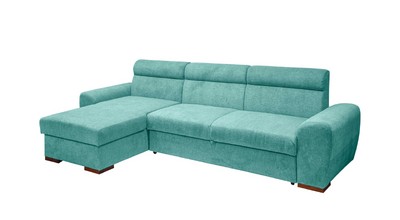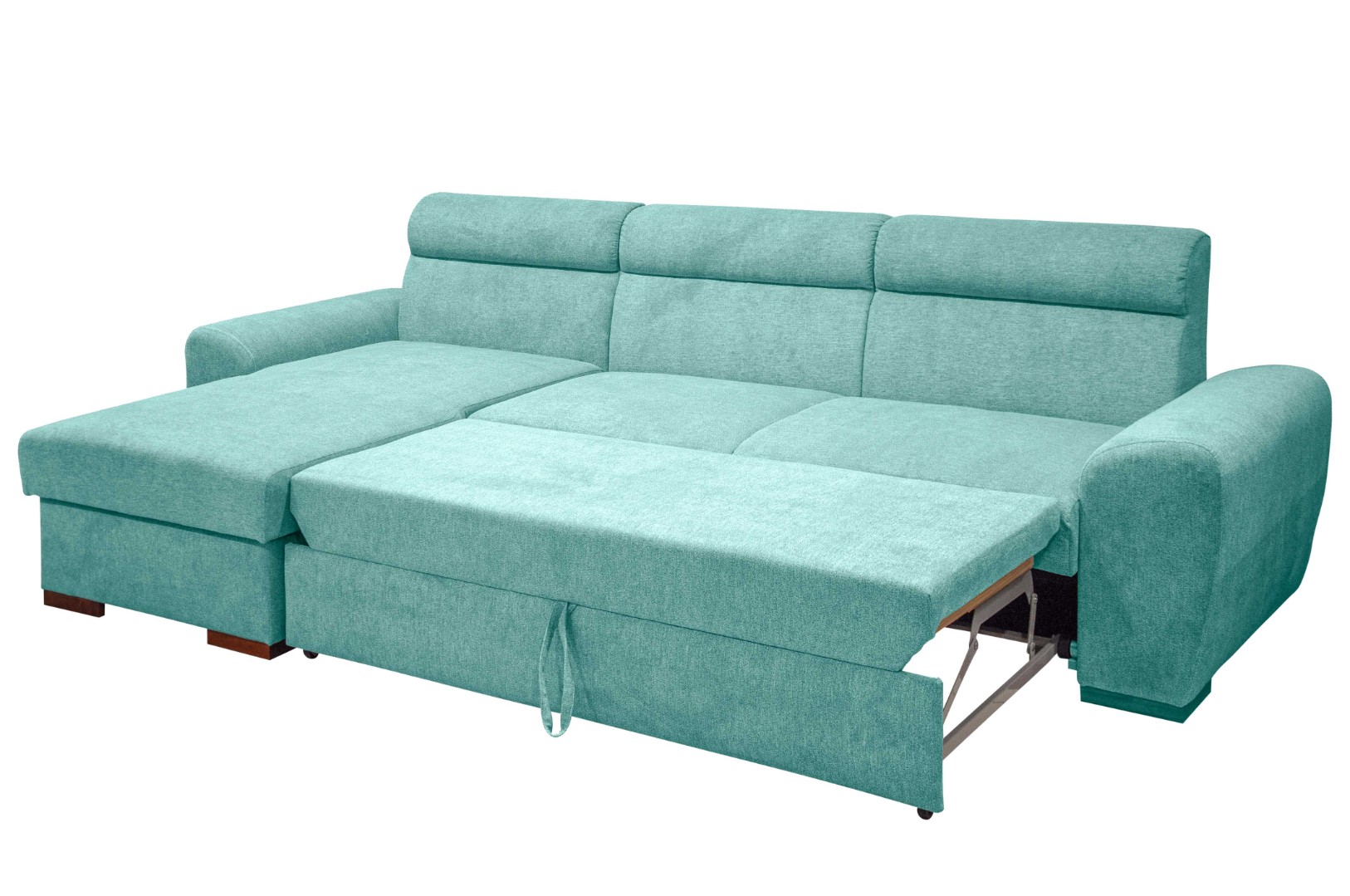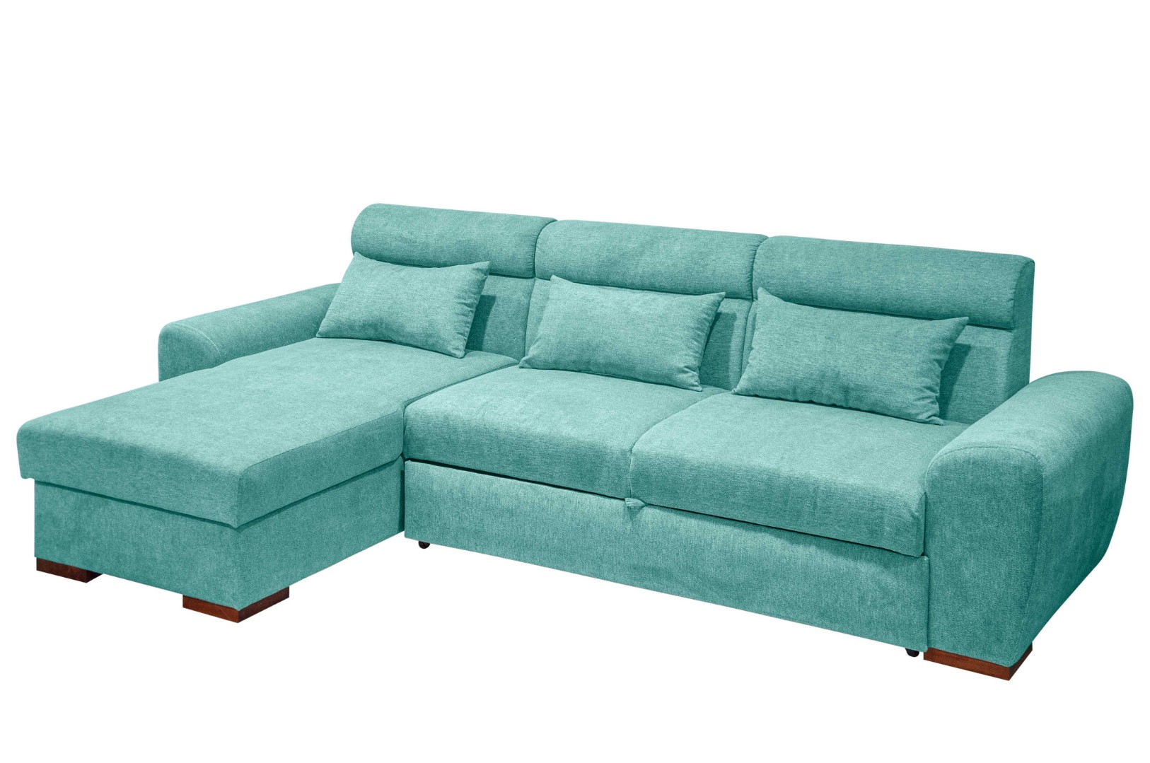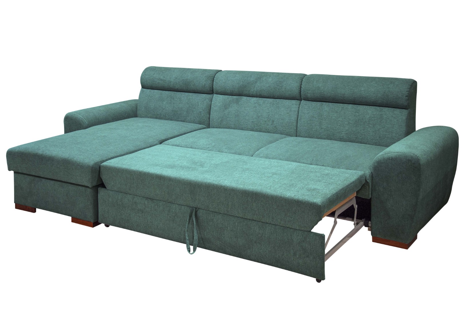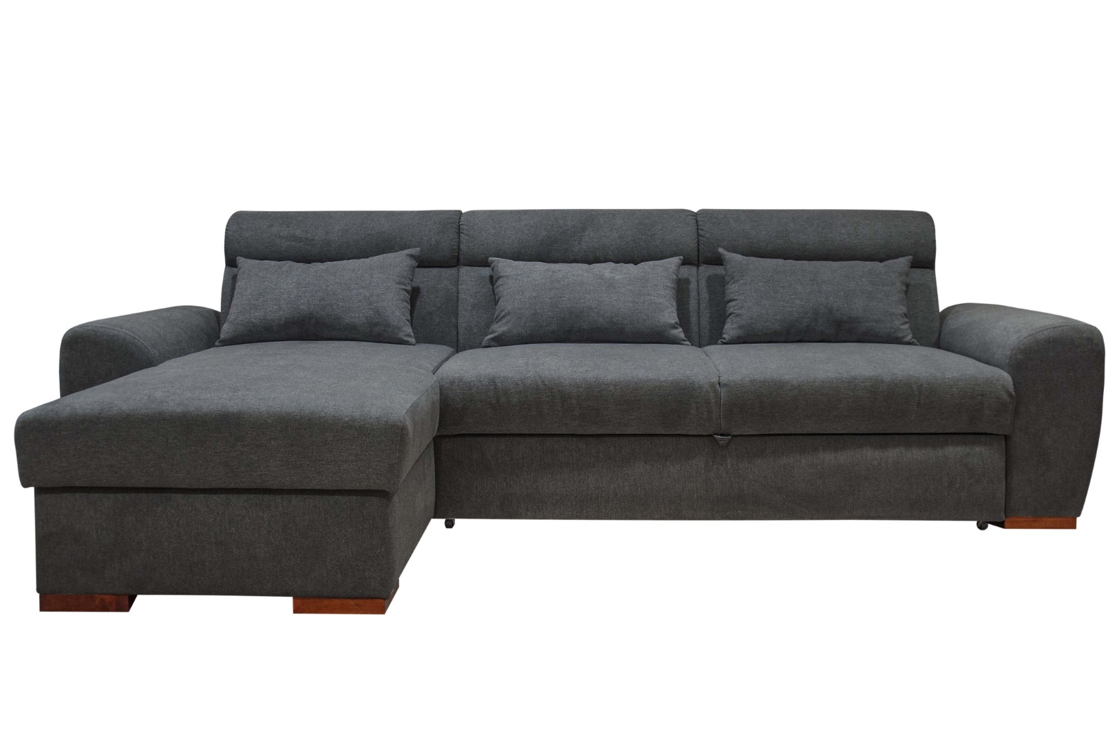 Вместительный ящик для спальных принадлежностей расположен под угловой частью дивана. Доступ к ящику обеспечивает подъемный механизм.