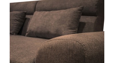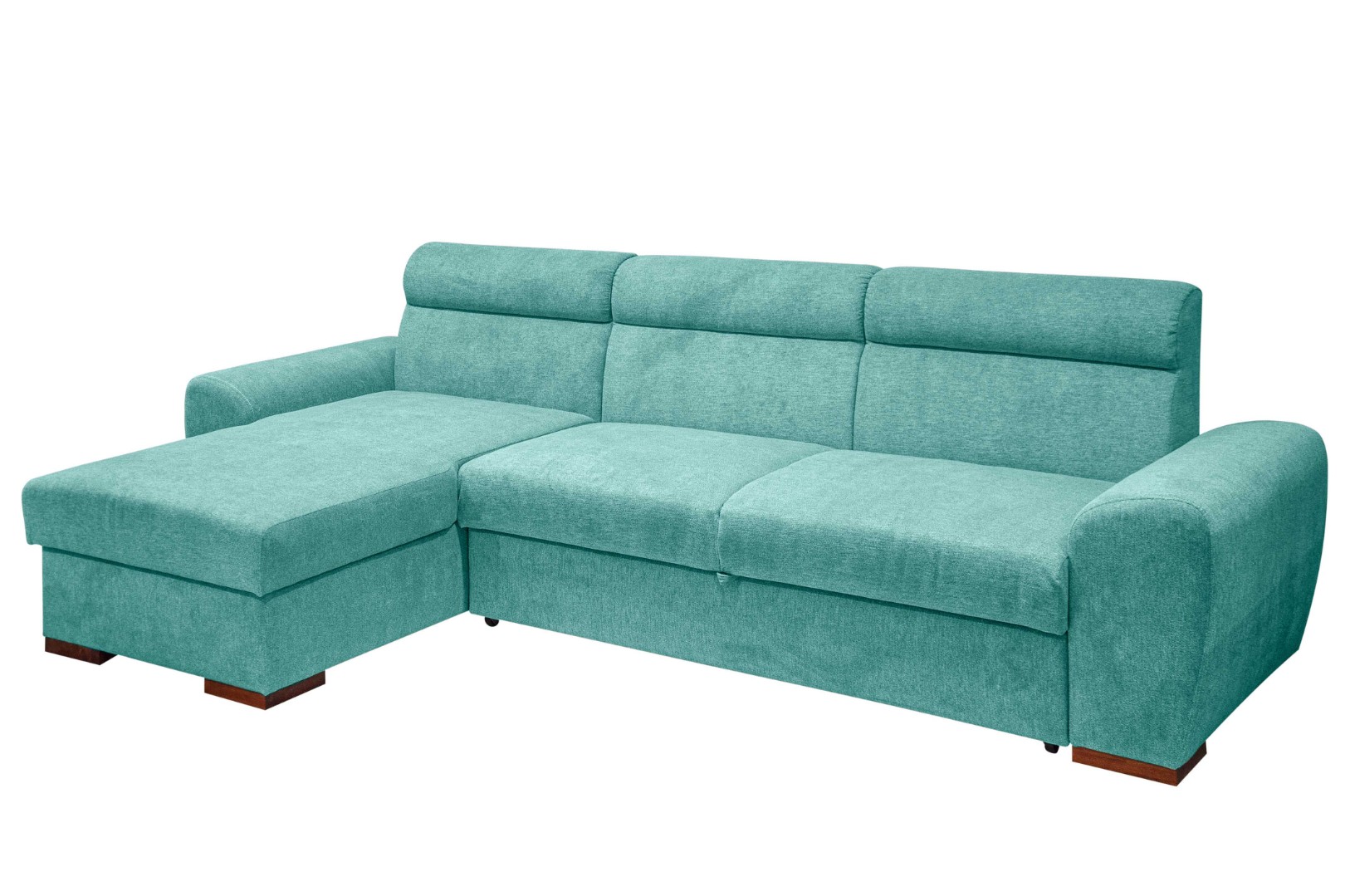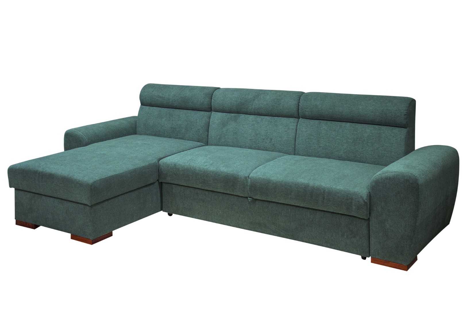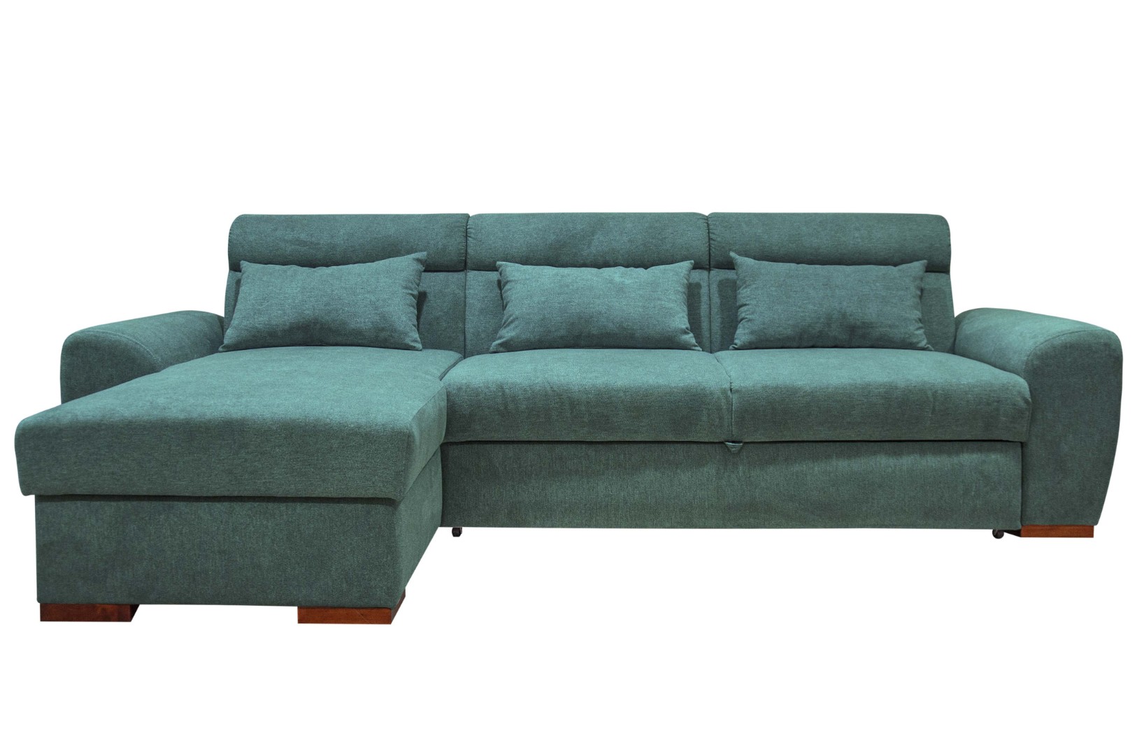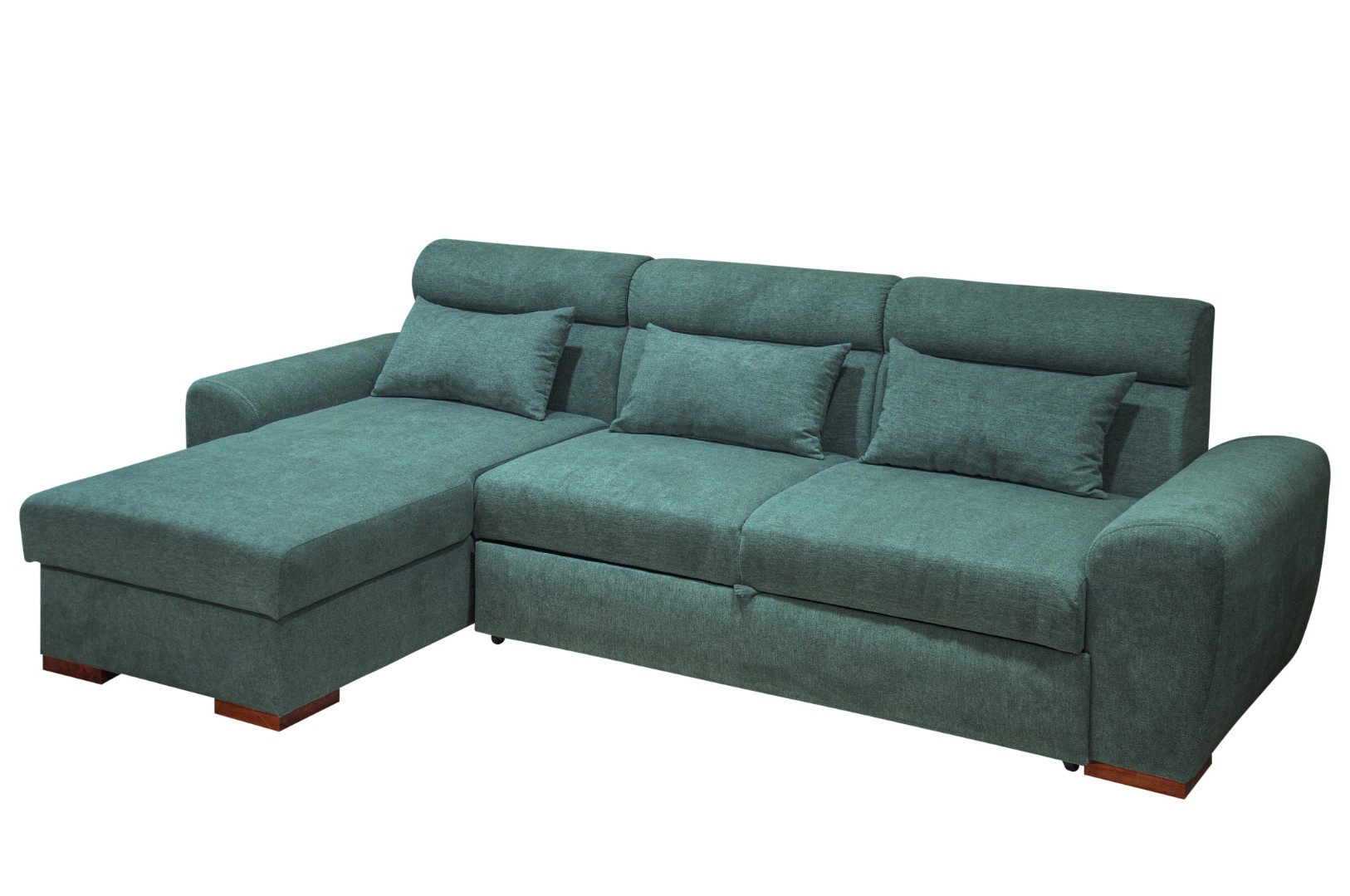 Вместительный ящик для спальных принадлежностей расположен под угловой частью дивана. Доступ к ящику обеспечивает подъемный механизм.