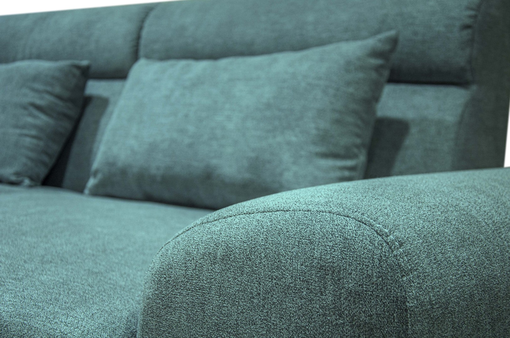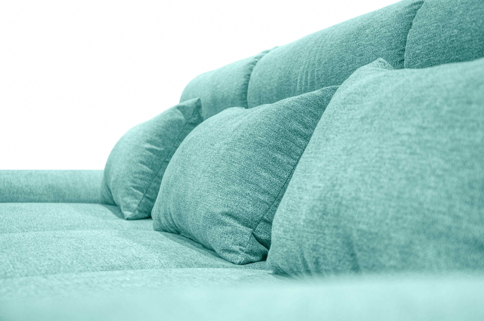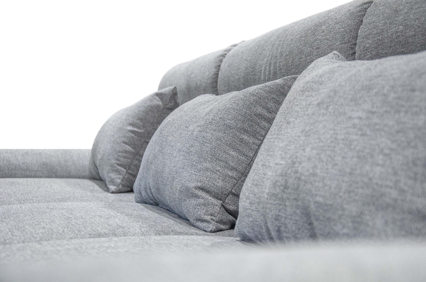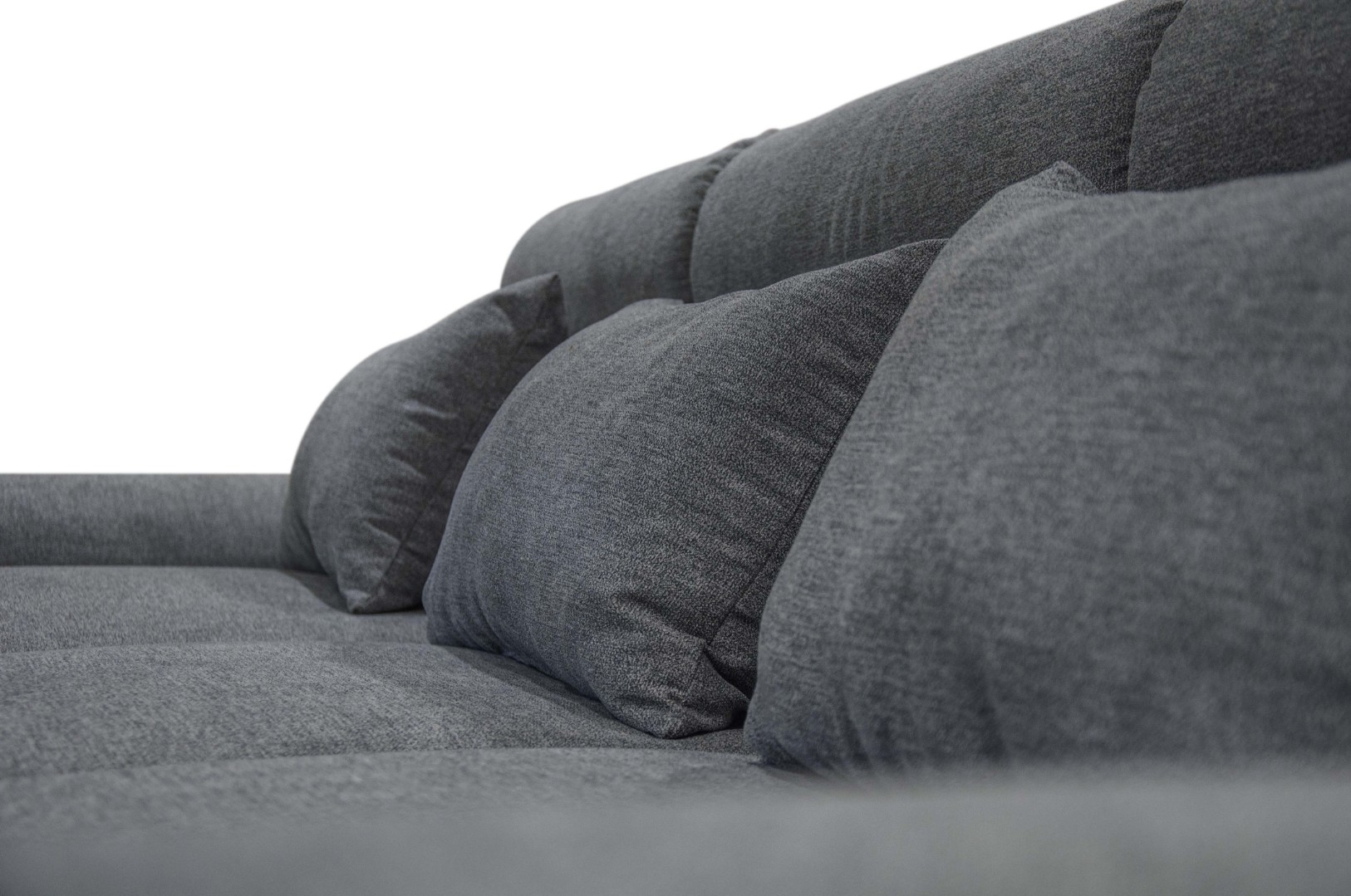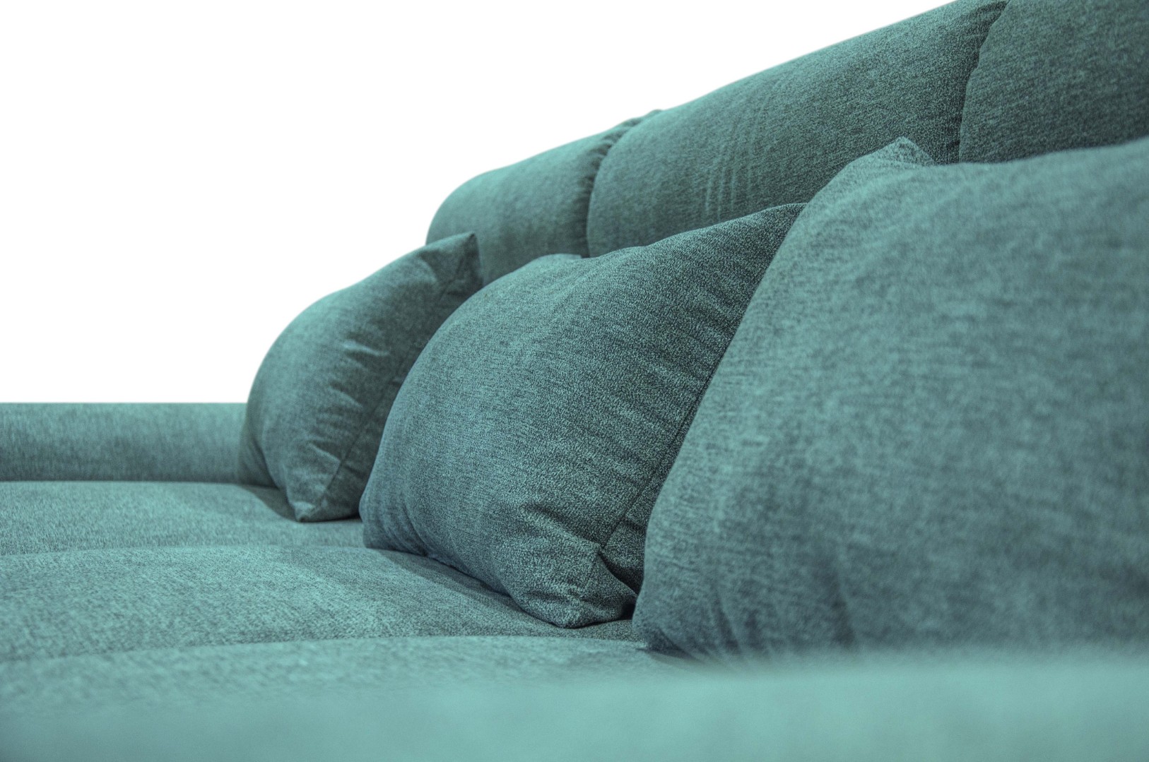 Вместительный ящик для спальных принадлежностей расположен под угловой частью дивана. Доступ к ящику обеспечивает подъемный механизм.