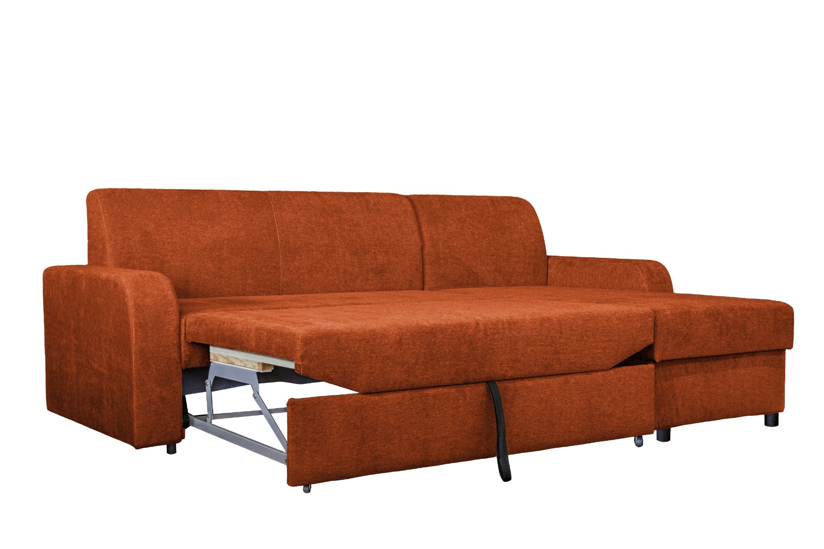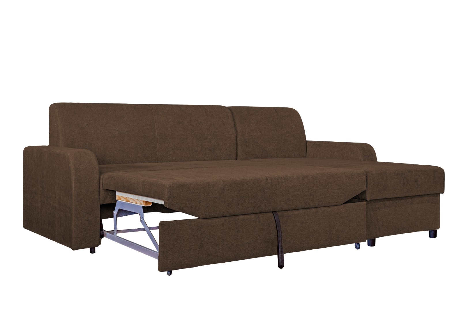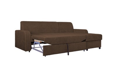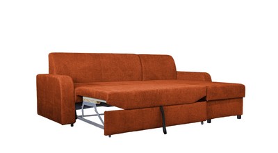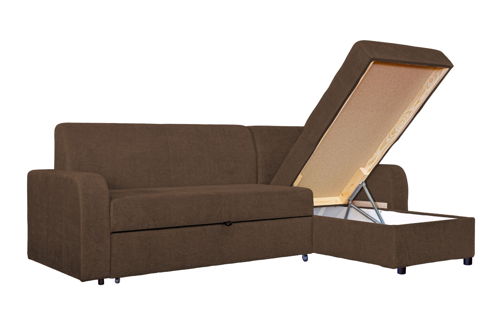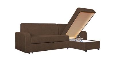 Вместительный ящик для спальных принадлежностей расположен под угловой частью дивана. Доступ к ящику обеспечивает подъемный механизм.