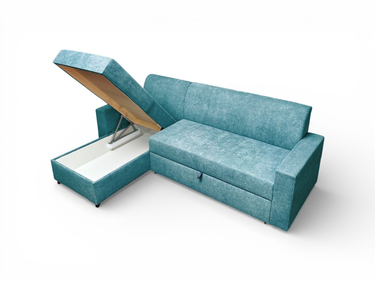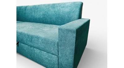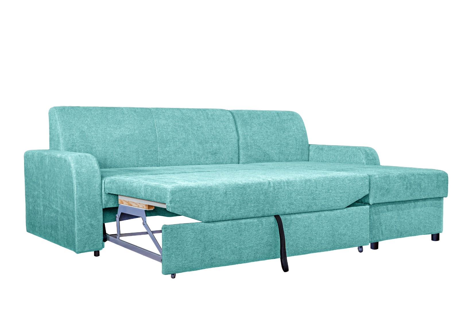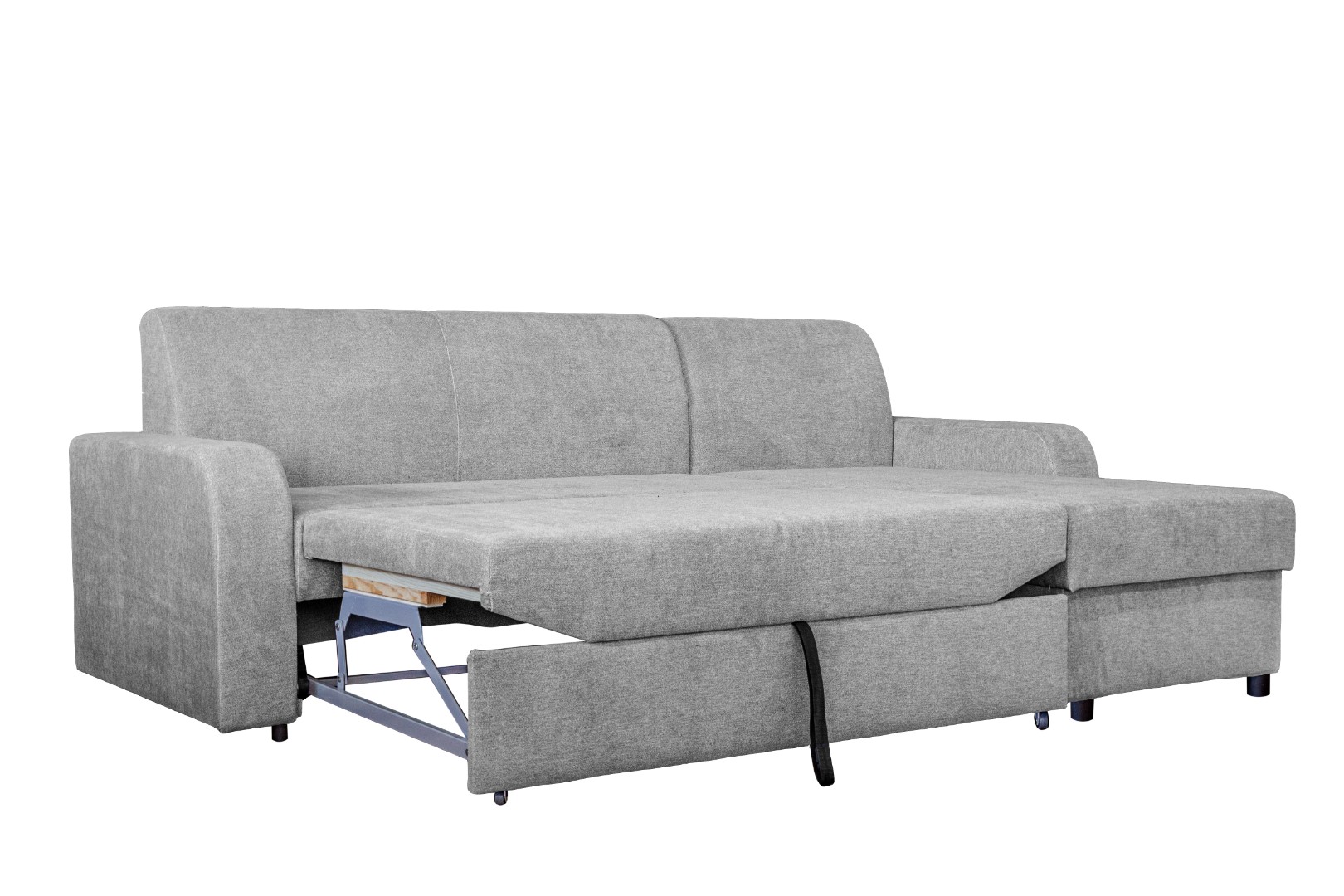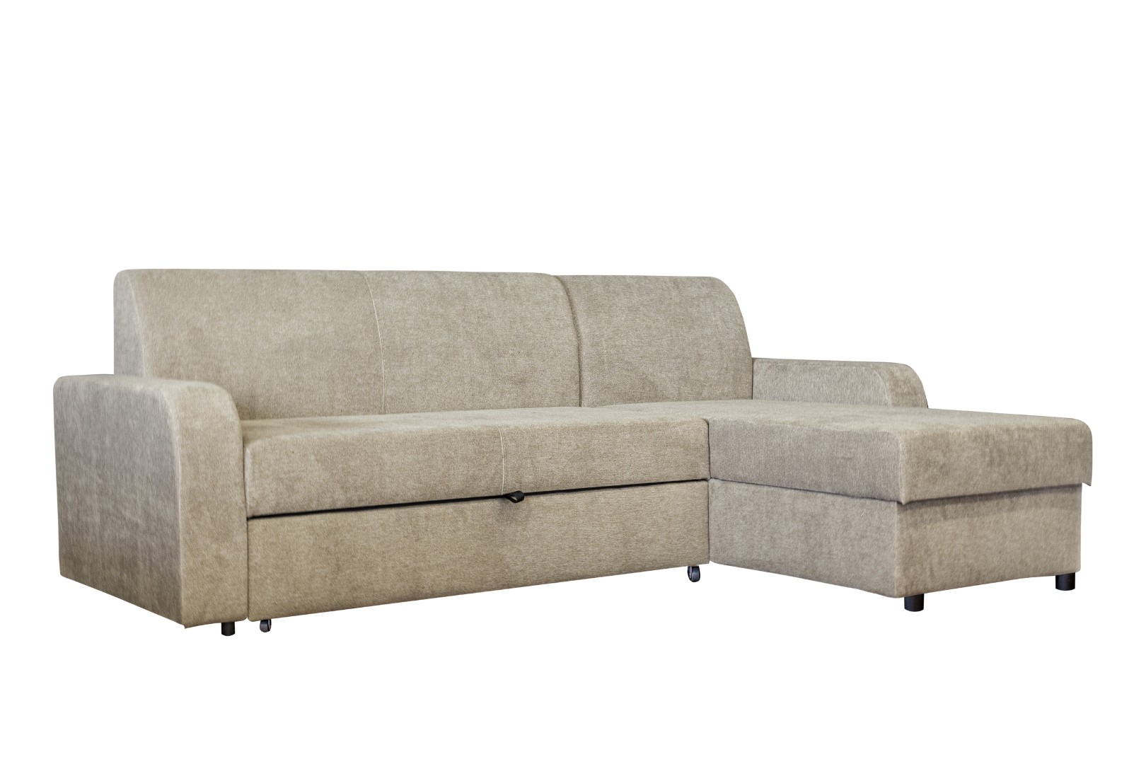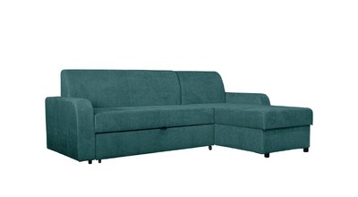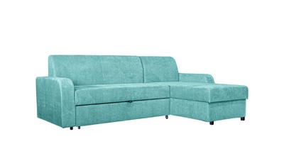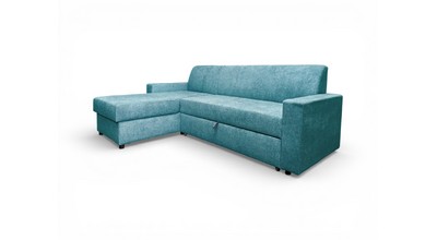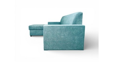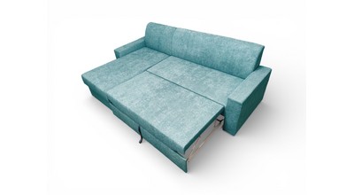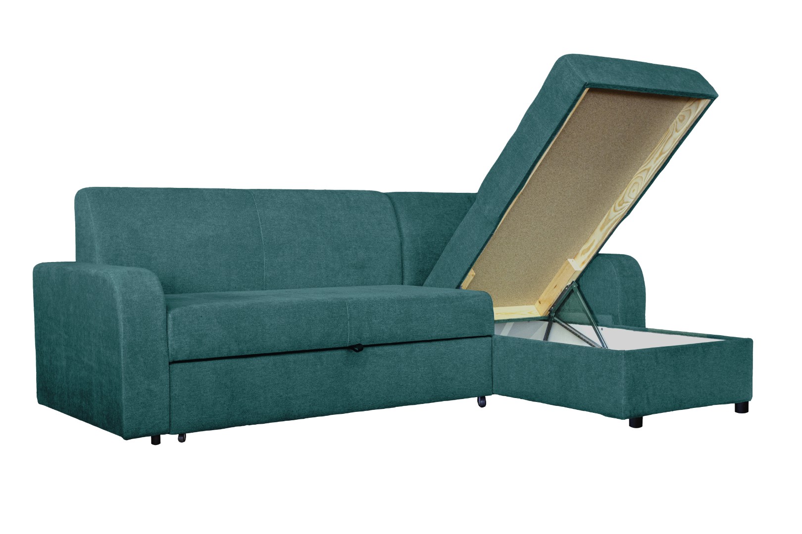 Вместительный ящик для спальных принадлежностей расположен под угловой частью дивана. Доступ к ящику обеспечивает подъемный механизм.