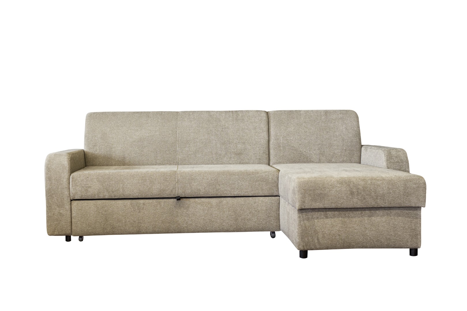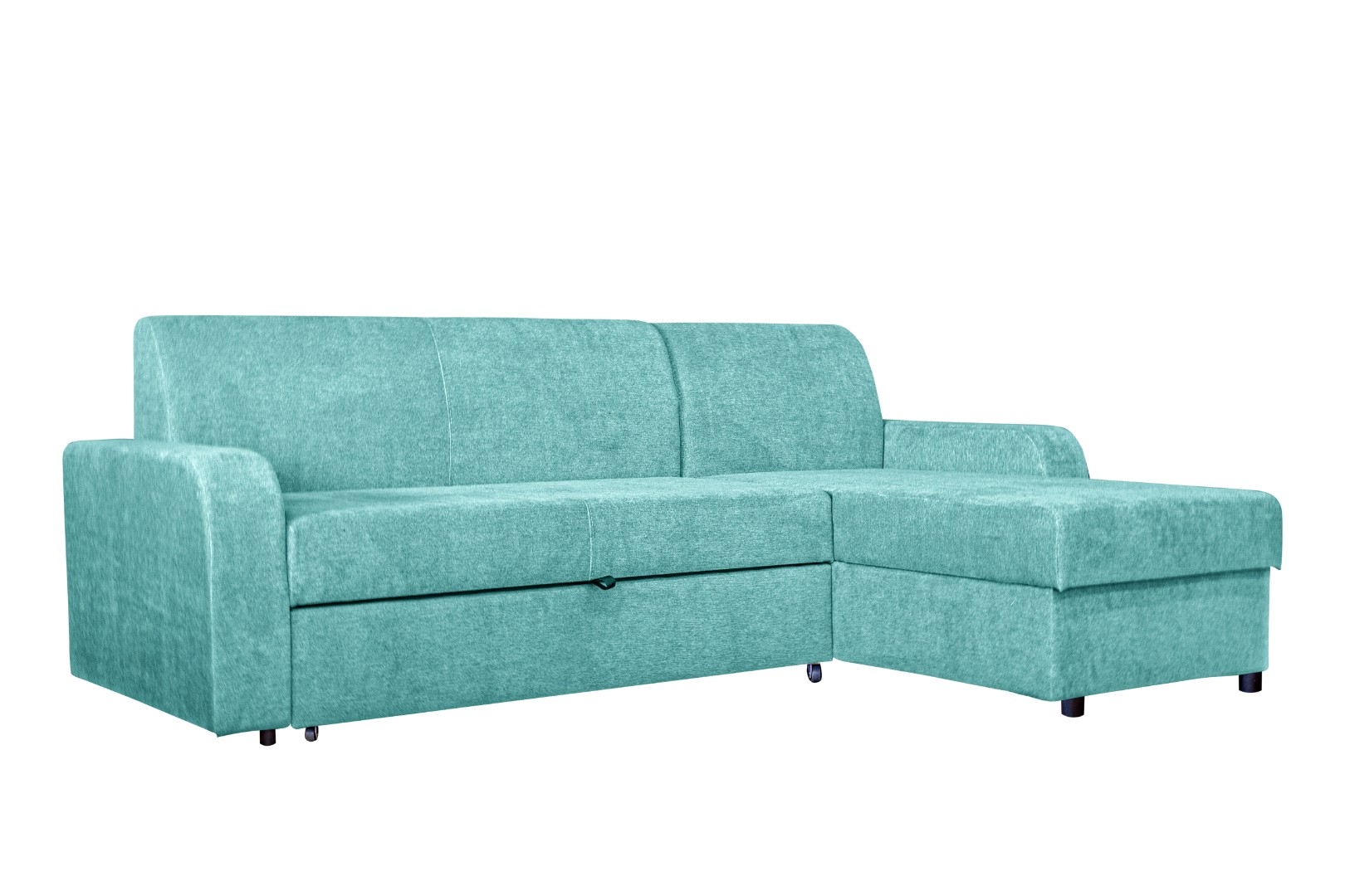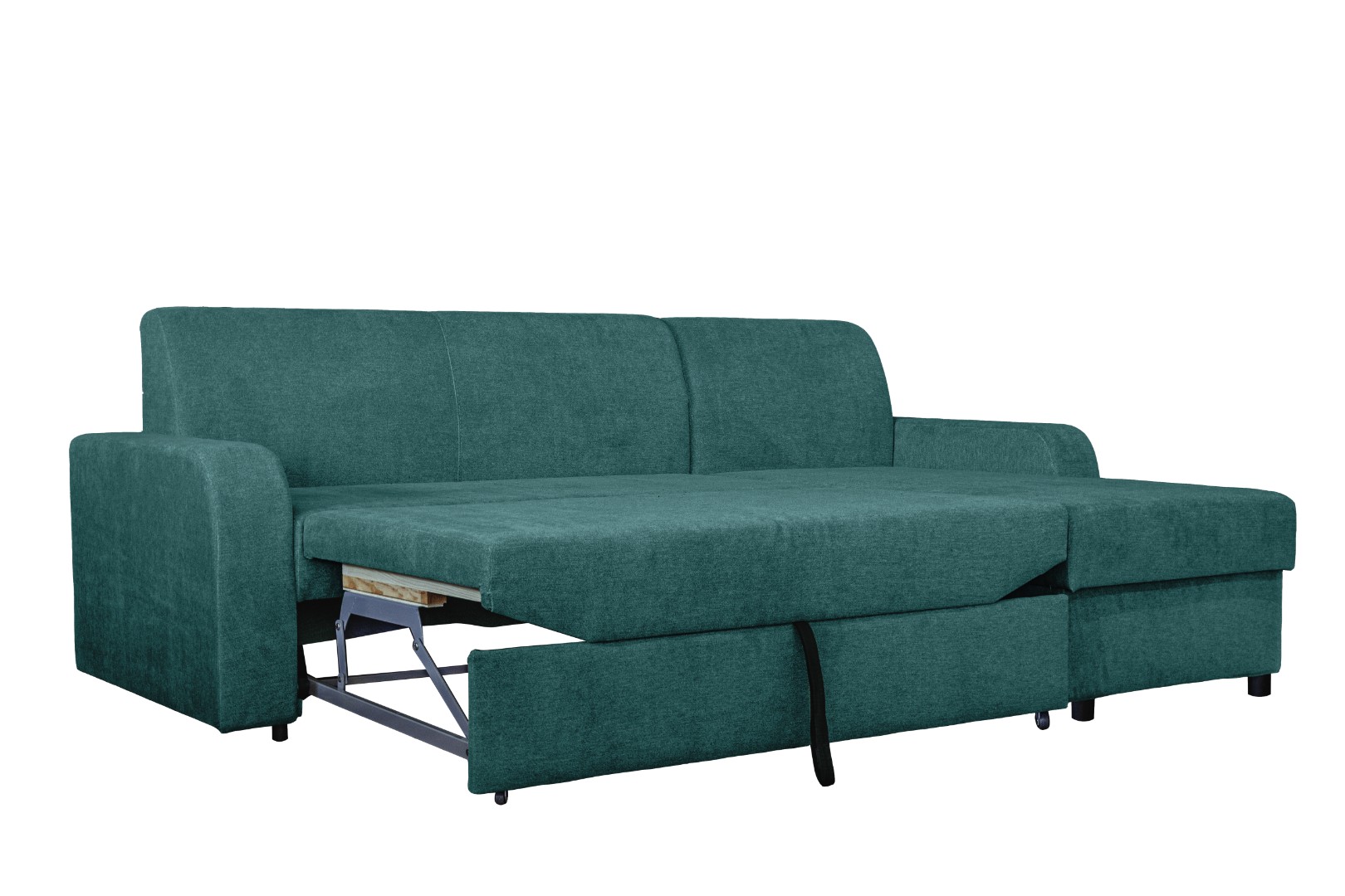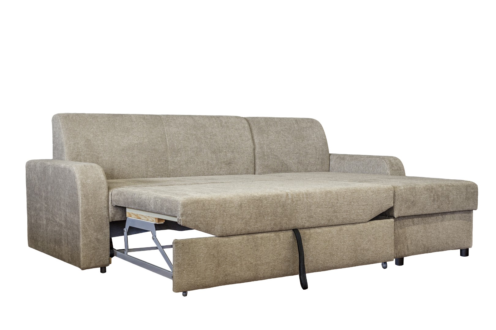 Вместительный ящик для спальных принадлежностей расположен под угловой частью дивана. Доступ к ящику обеспечивает подъемный механизм.