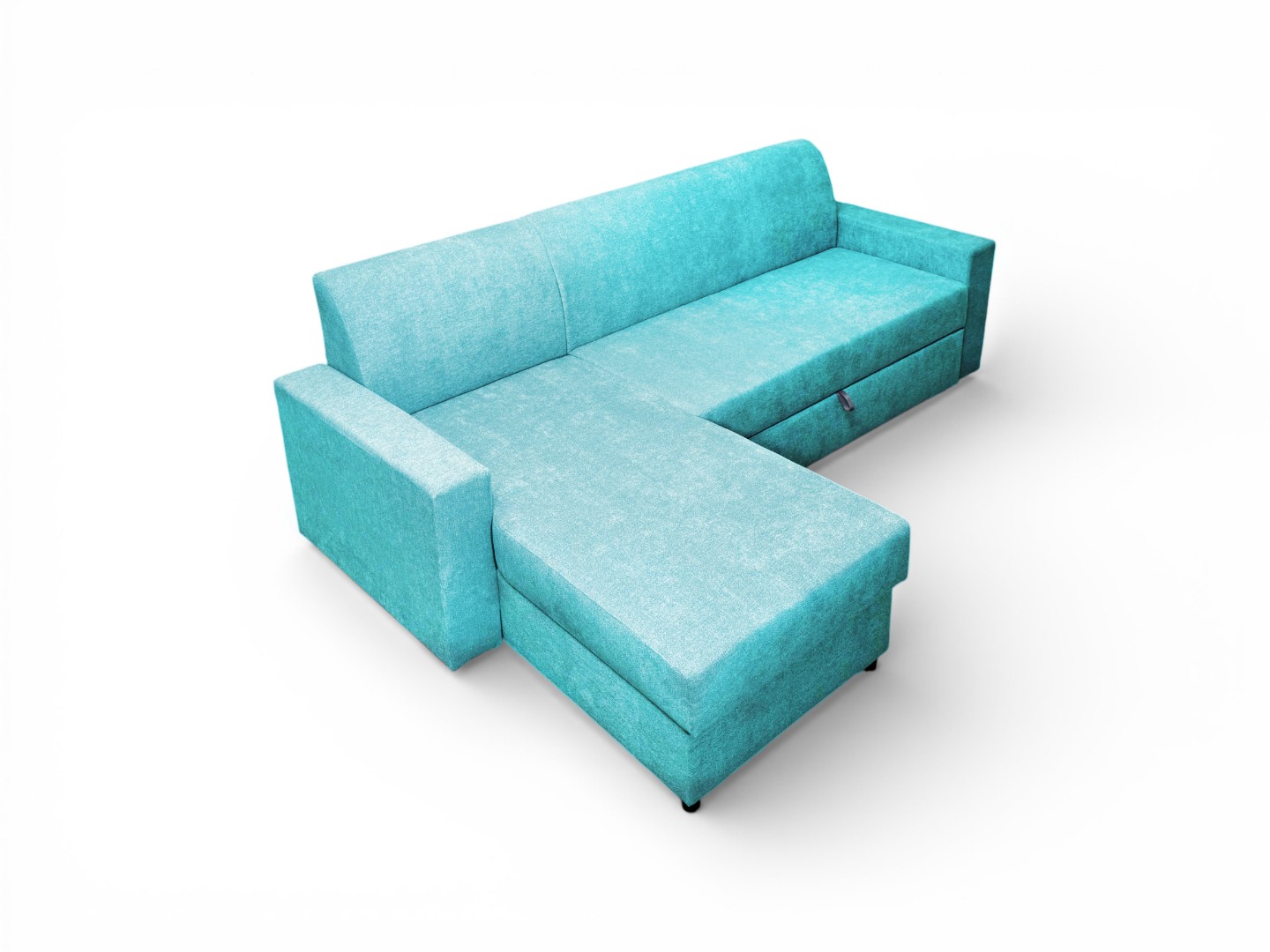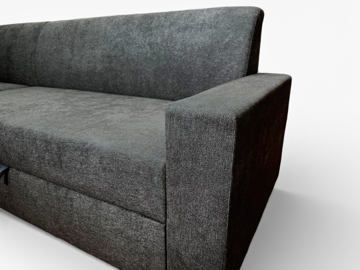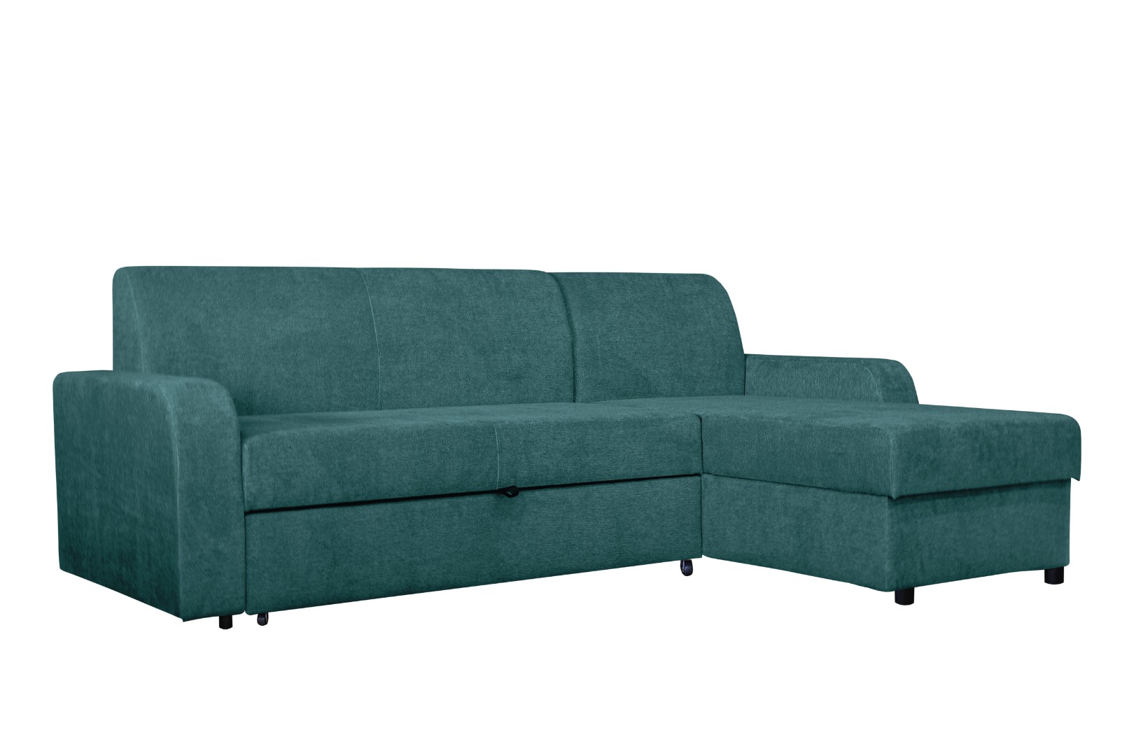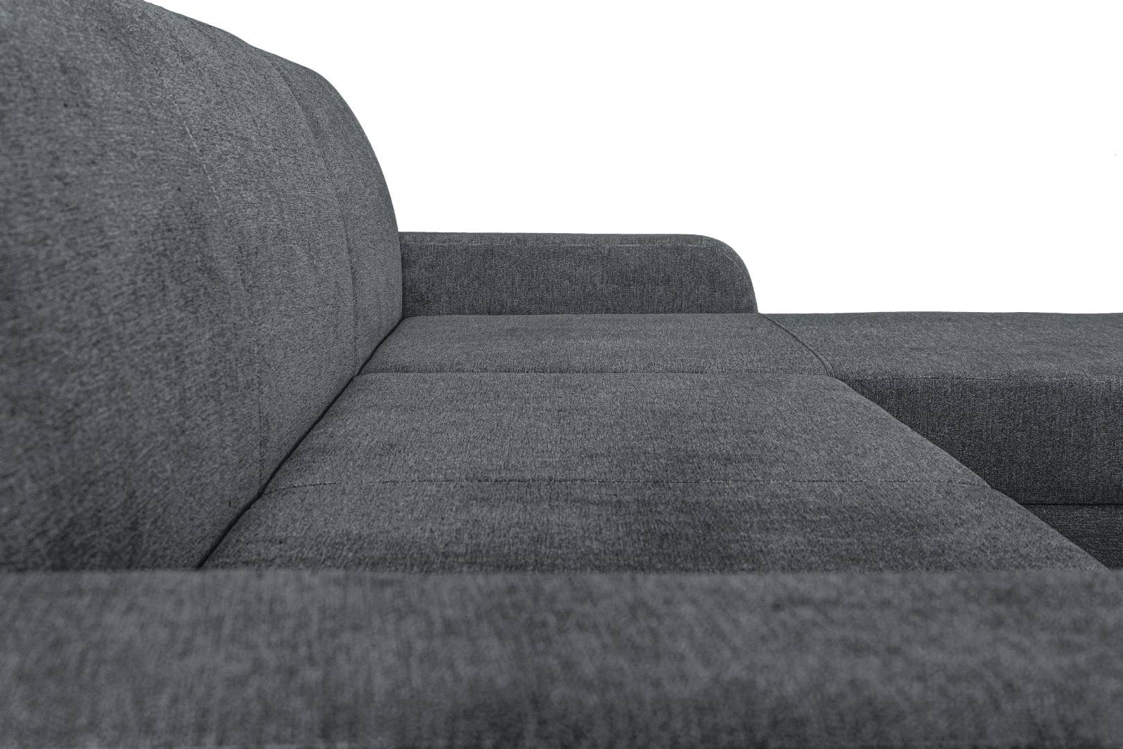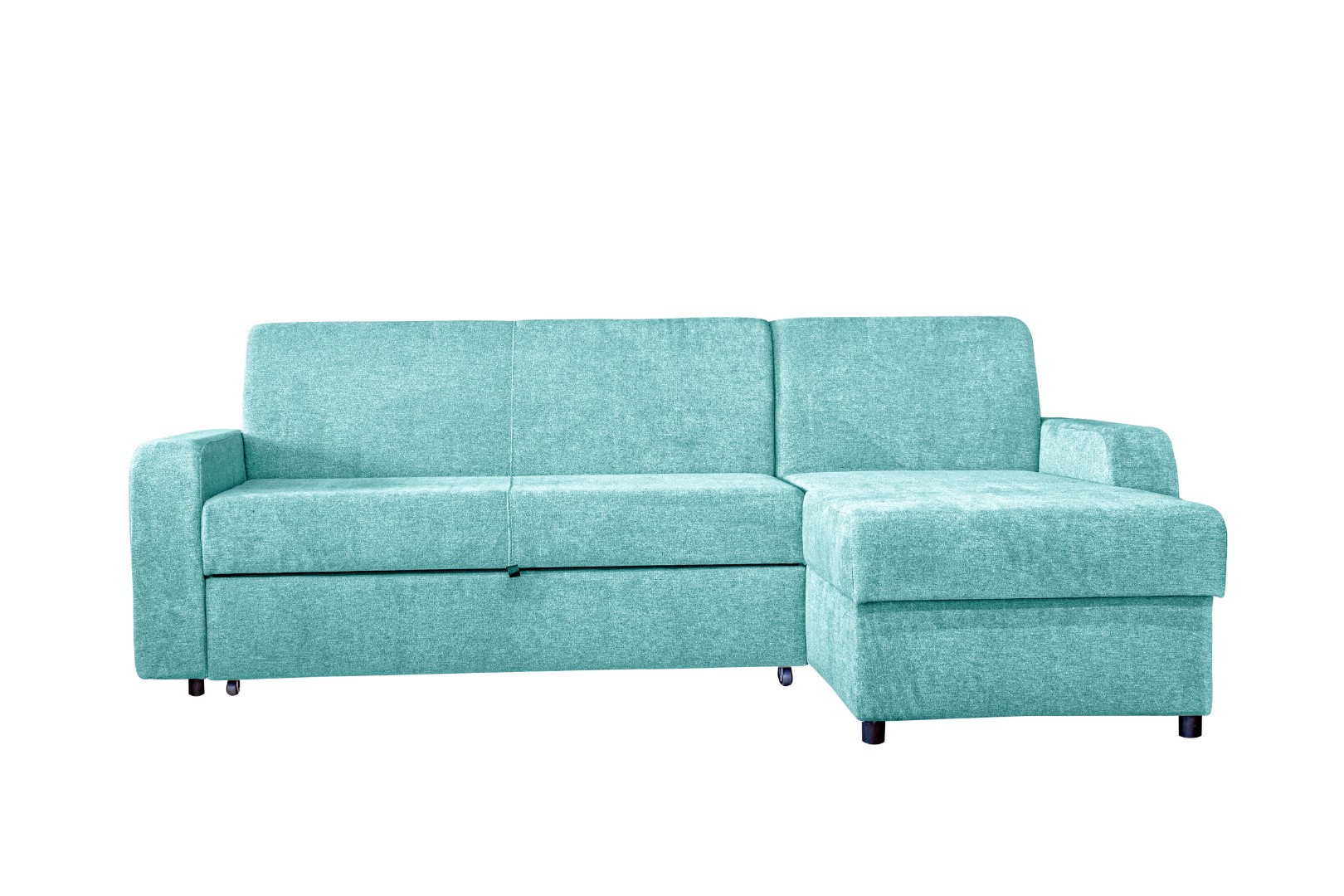 Вместительный ящик для спальных принадлежностей расположен под угловой частью дивана. Доступ к ящику обеспечивает подъемный механизм.