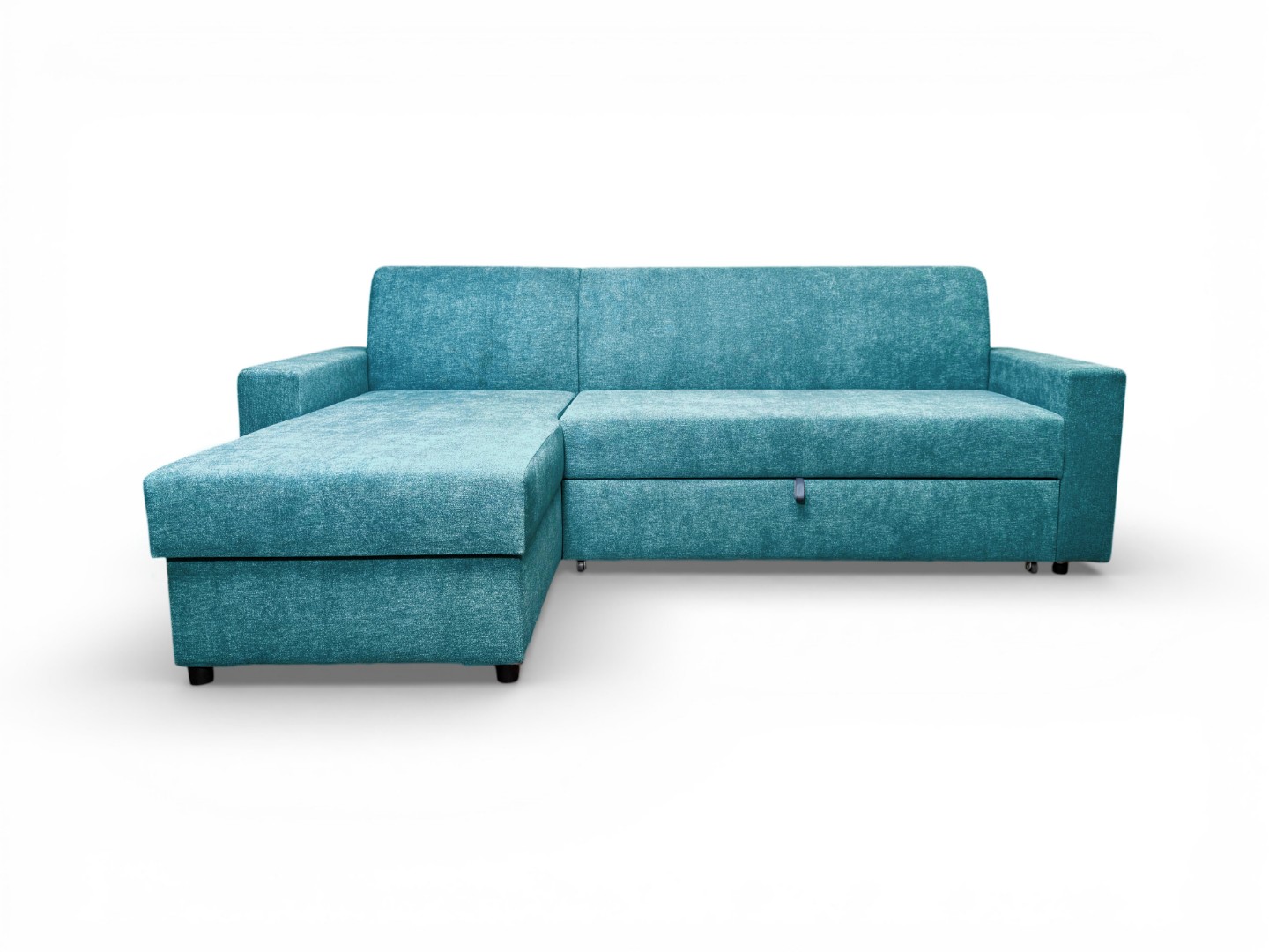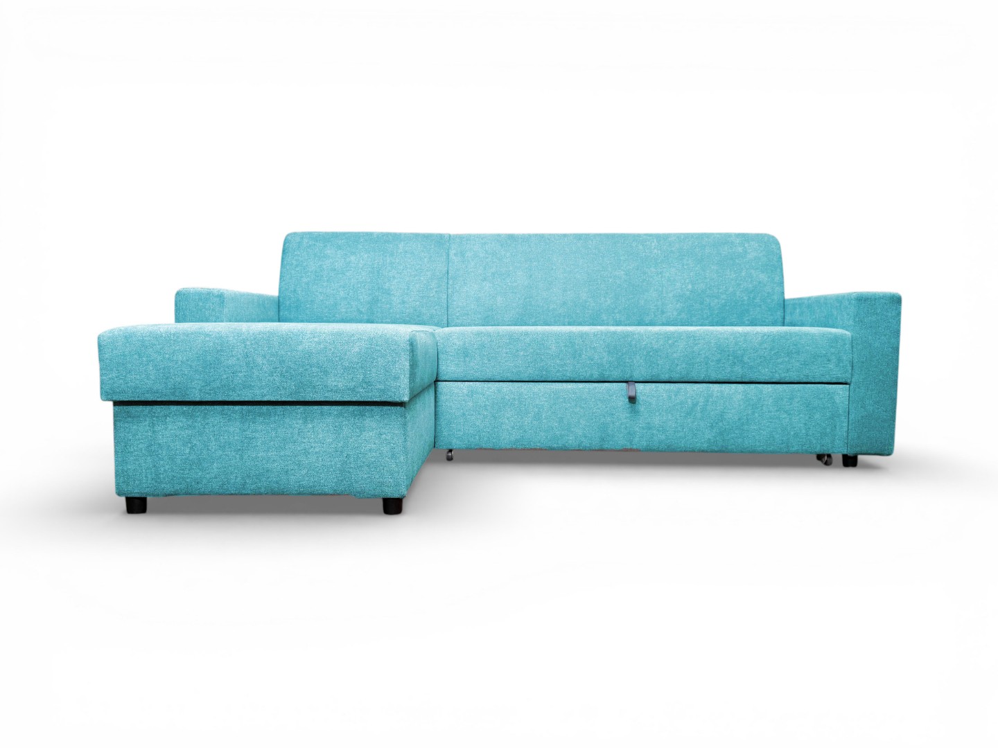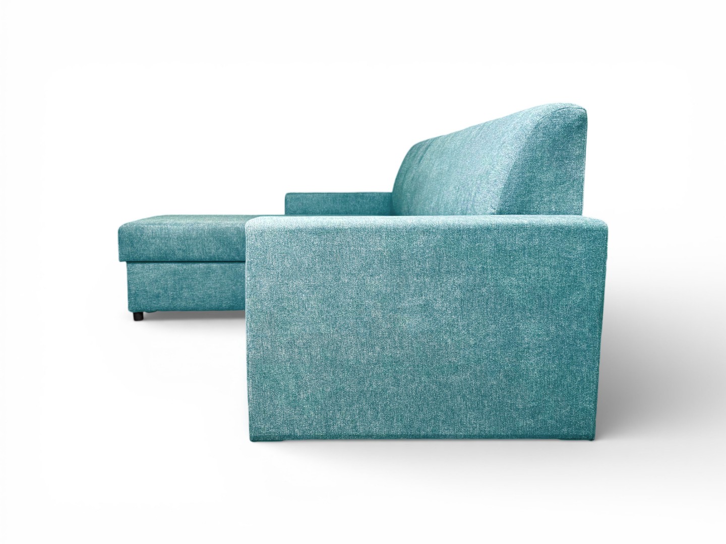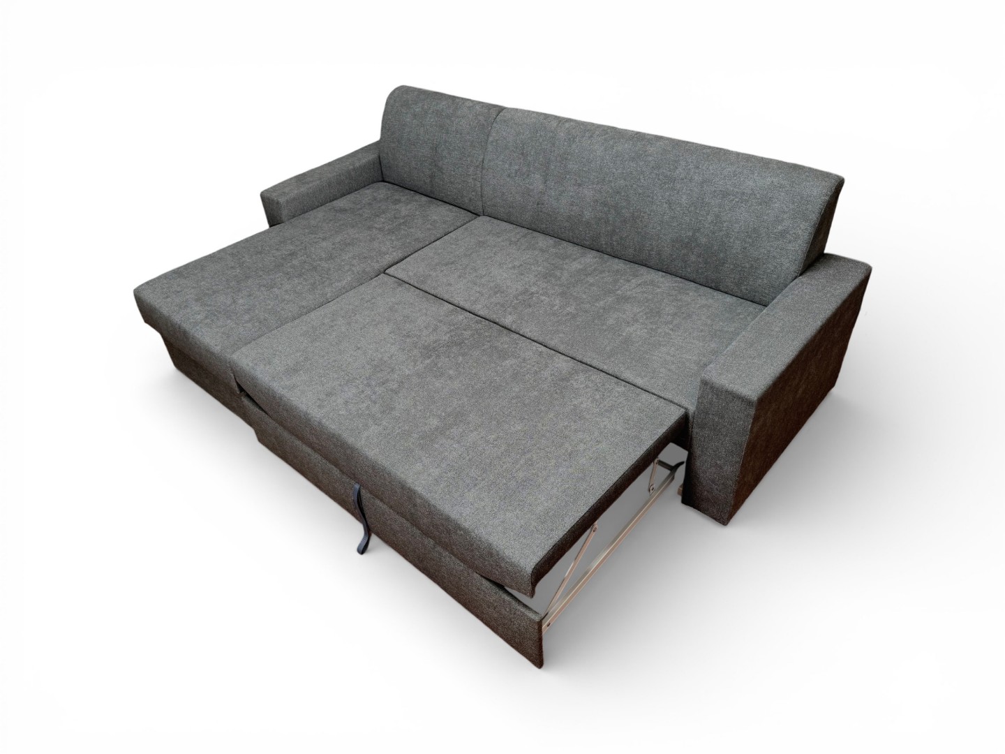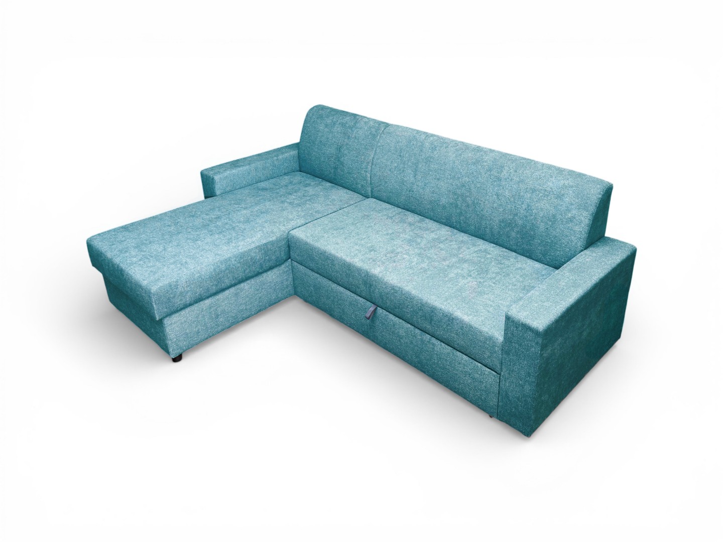 Вместительный ящик для спальных принадлежностей расположен под угловой частью дивана. Доступ к ящику обеспечивает подъемный механизм.