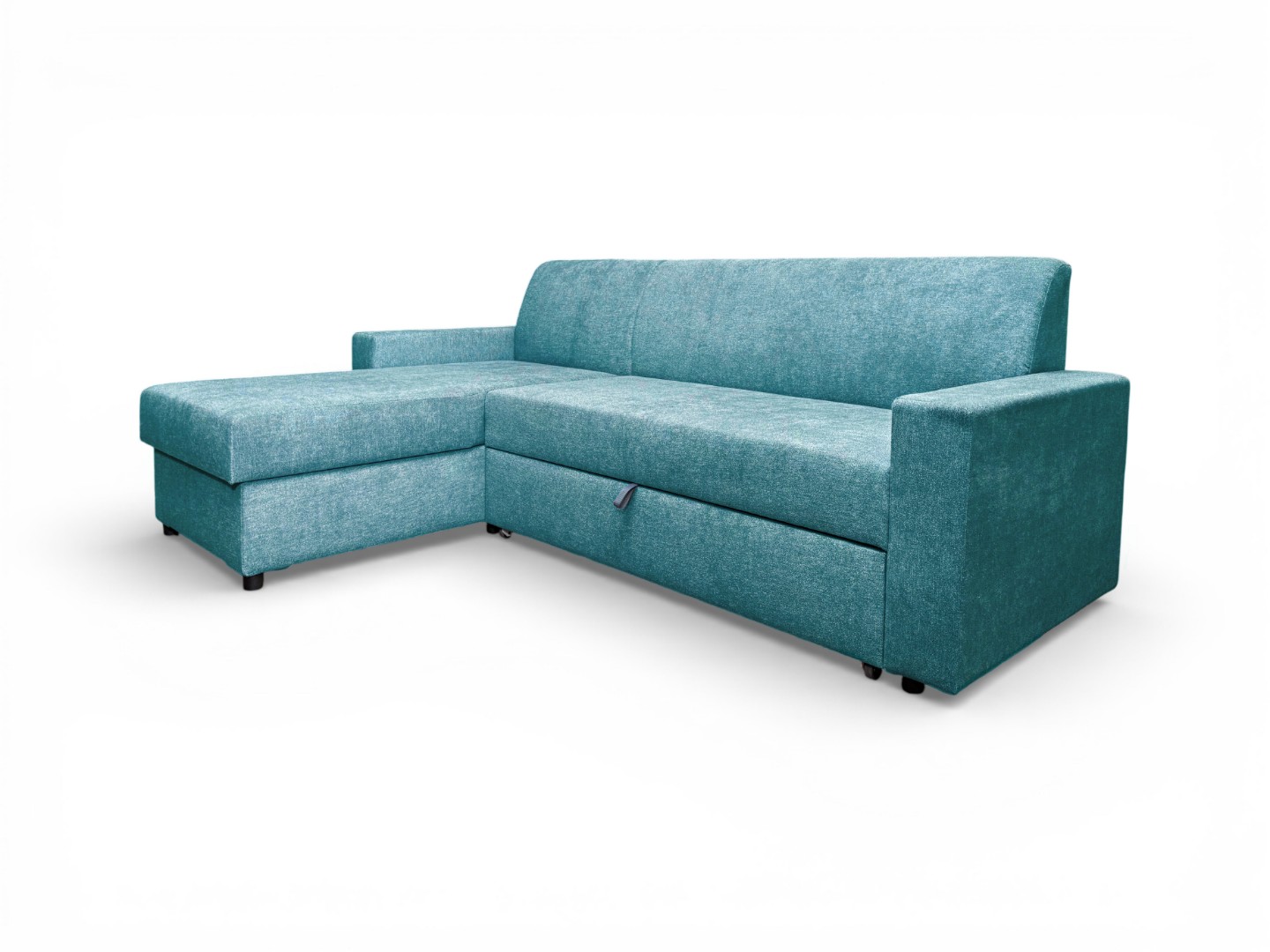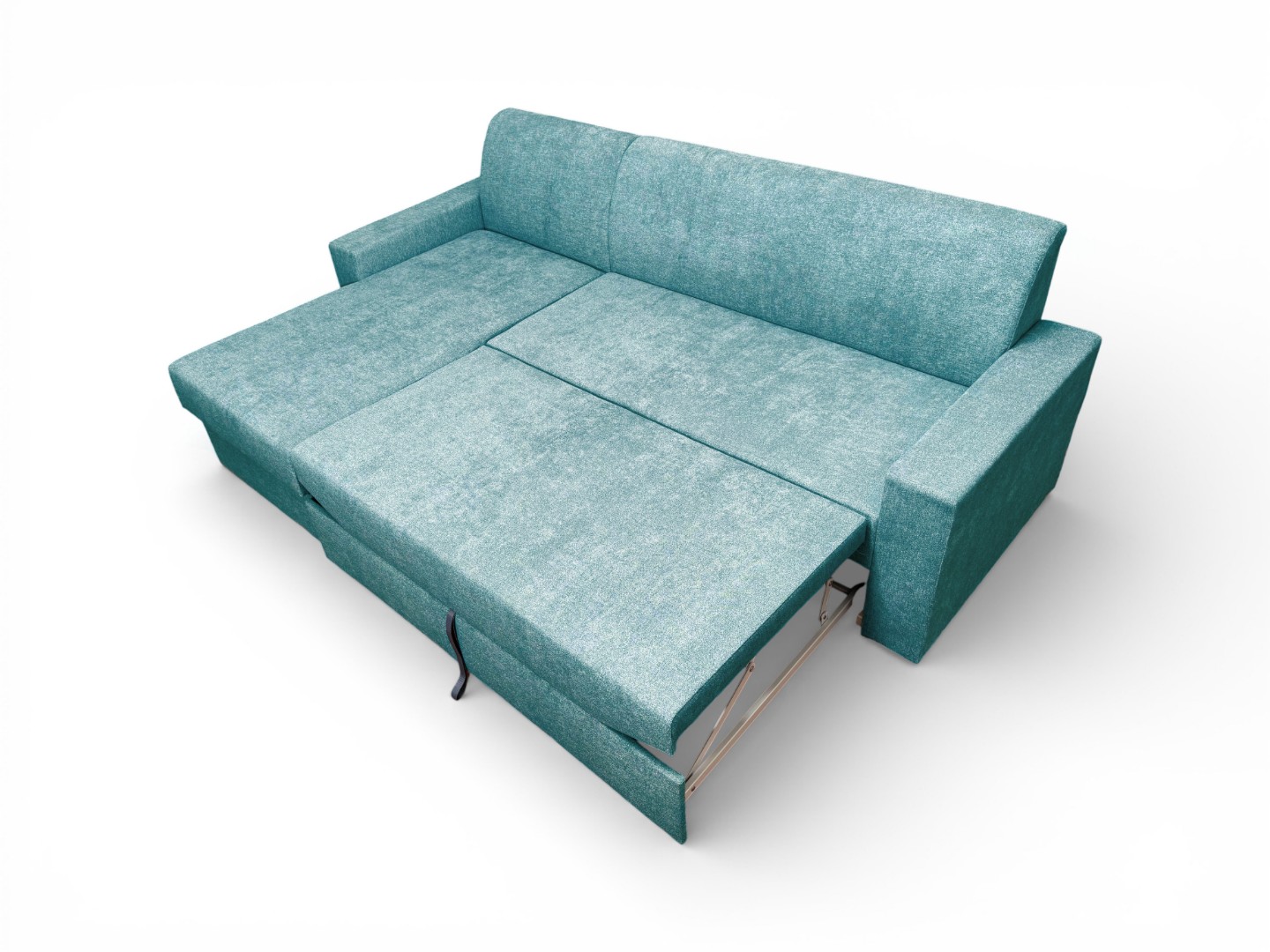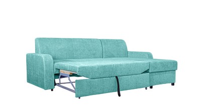 Чтобы трансформировать диван, нужно за скрытую петлю или ручку вытянуть спальный блок, который находится под сидением и, подняв его, установить на одном уровне с сидением. Результатом трансформации будет удобное, ровное, умеренно-жесткое спальное место.