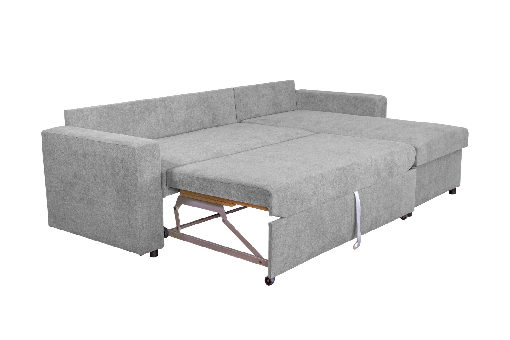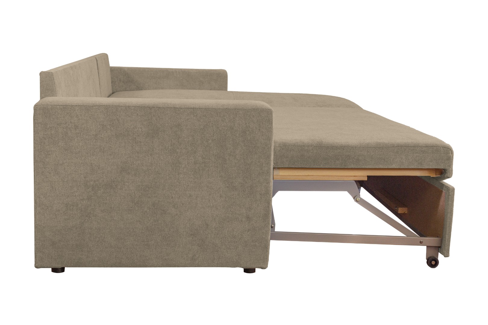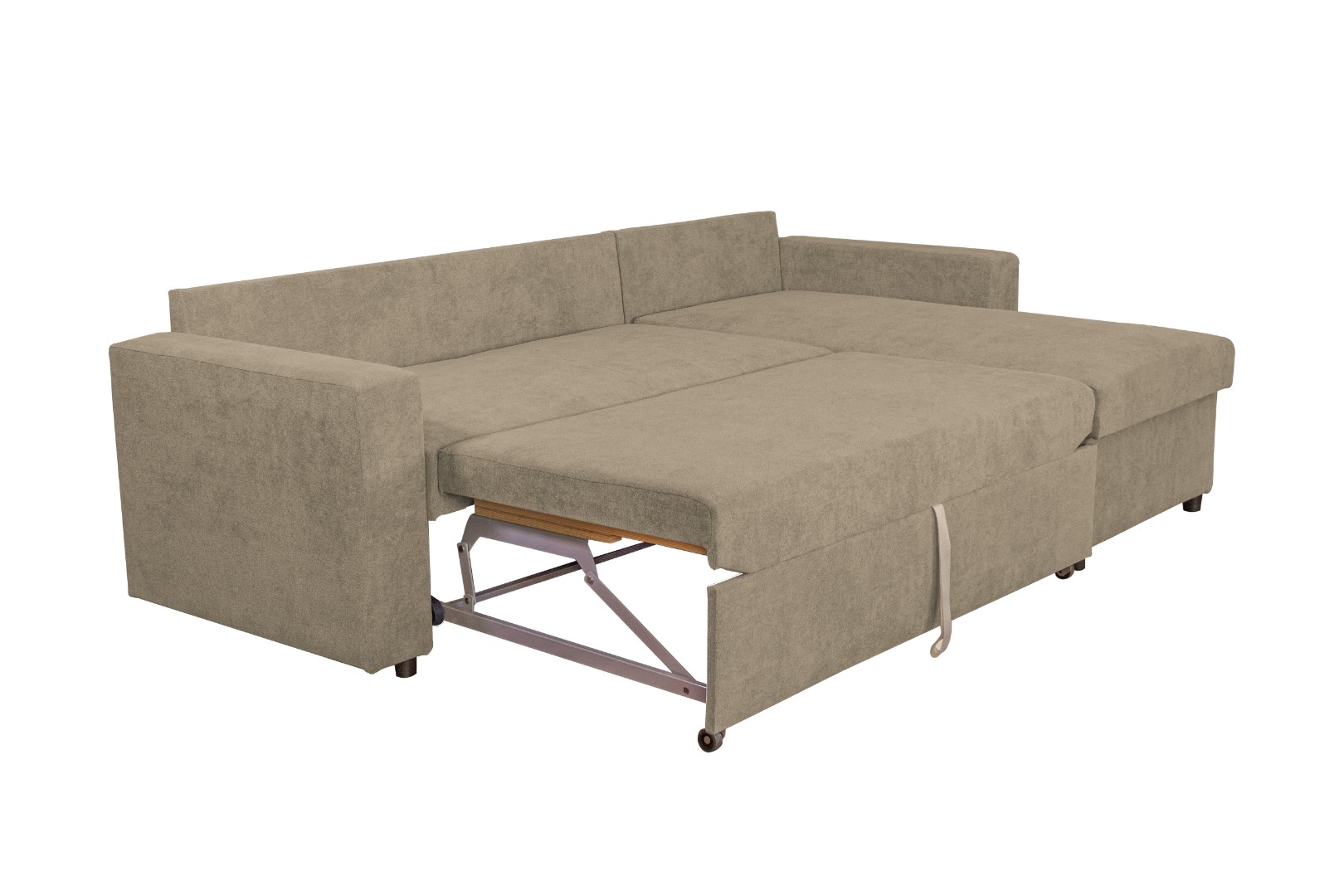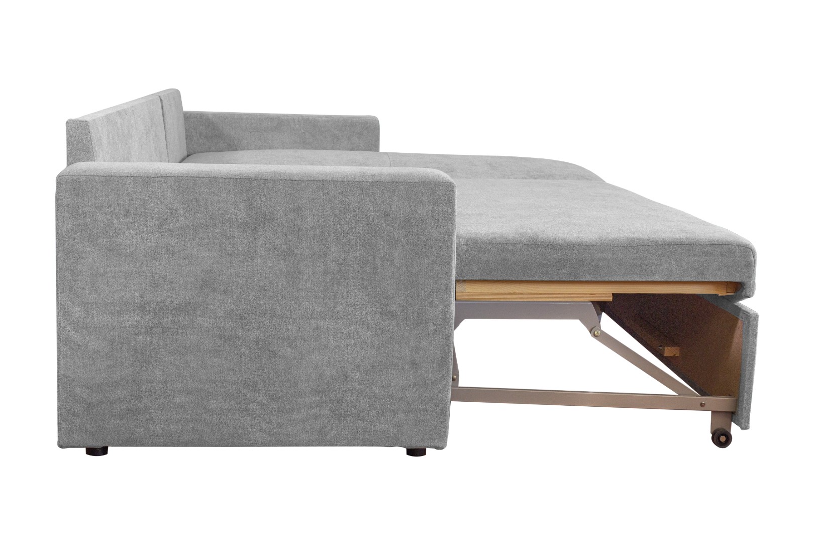 Угловой диван «Остин» легко трансформируется в большую кровать с помощью выкатного механизма «Дельфин» с размером спального места 135*205 см.