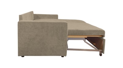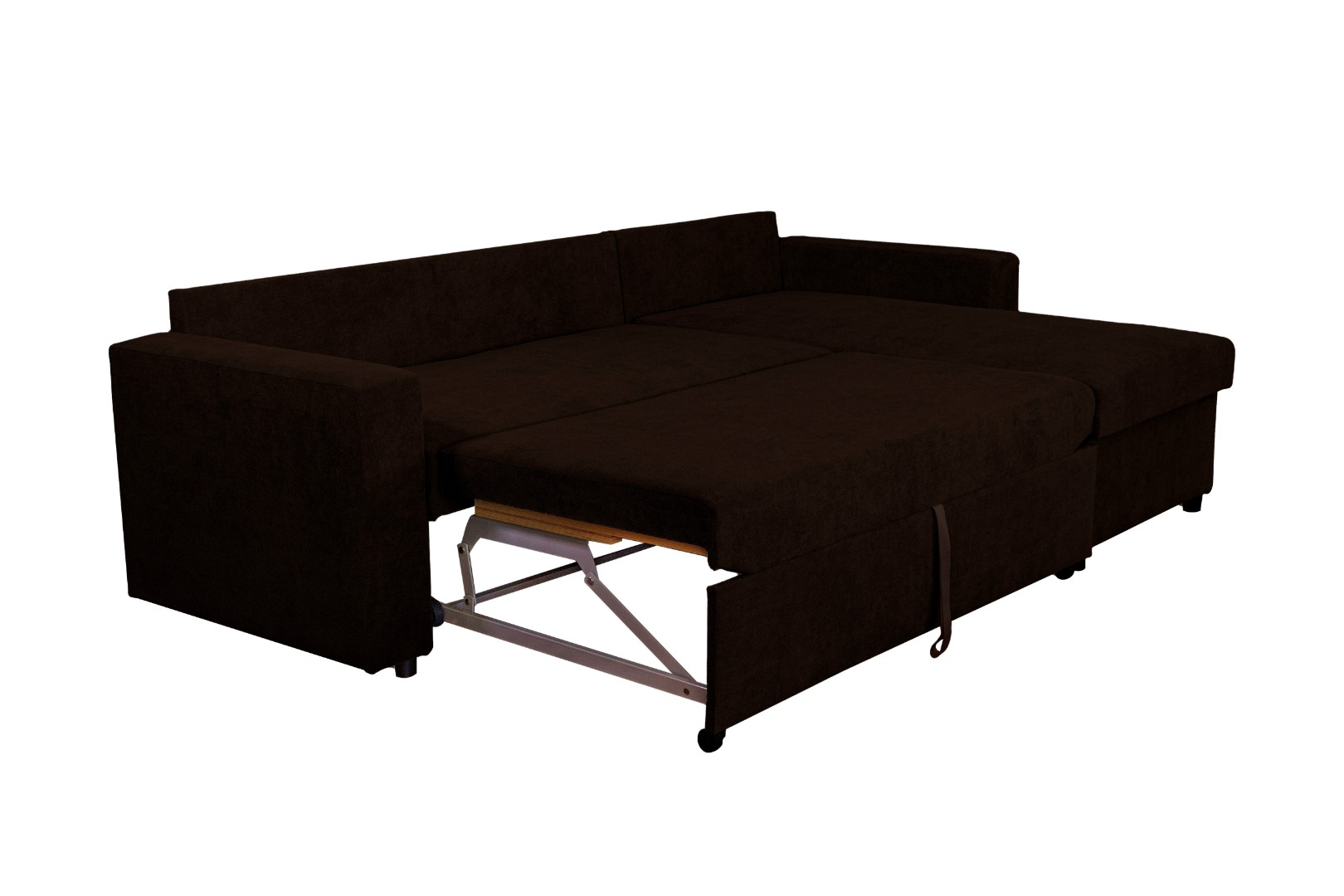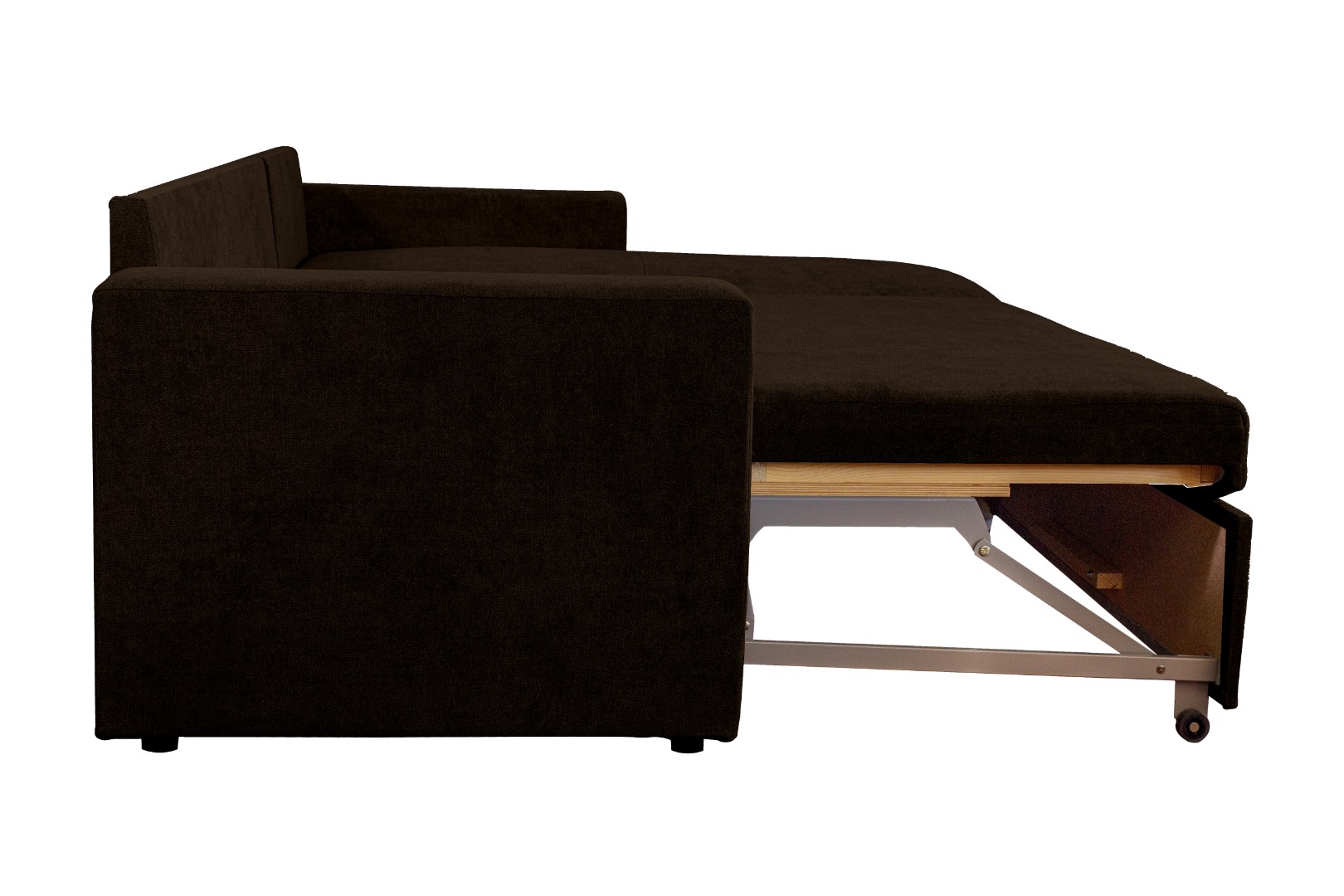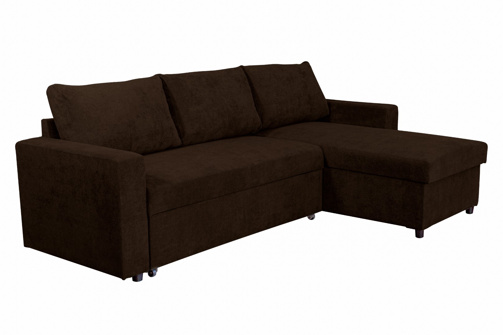 Угловой диван «Остин» легко трансформируется в большую кровать с помощью выкатного механизма «Дельфин» с размером спального места 135*205 см.