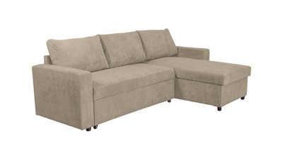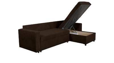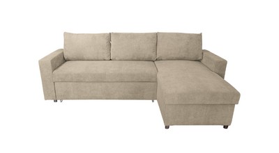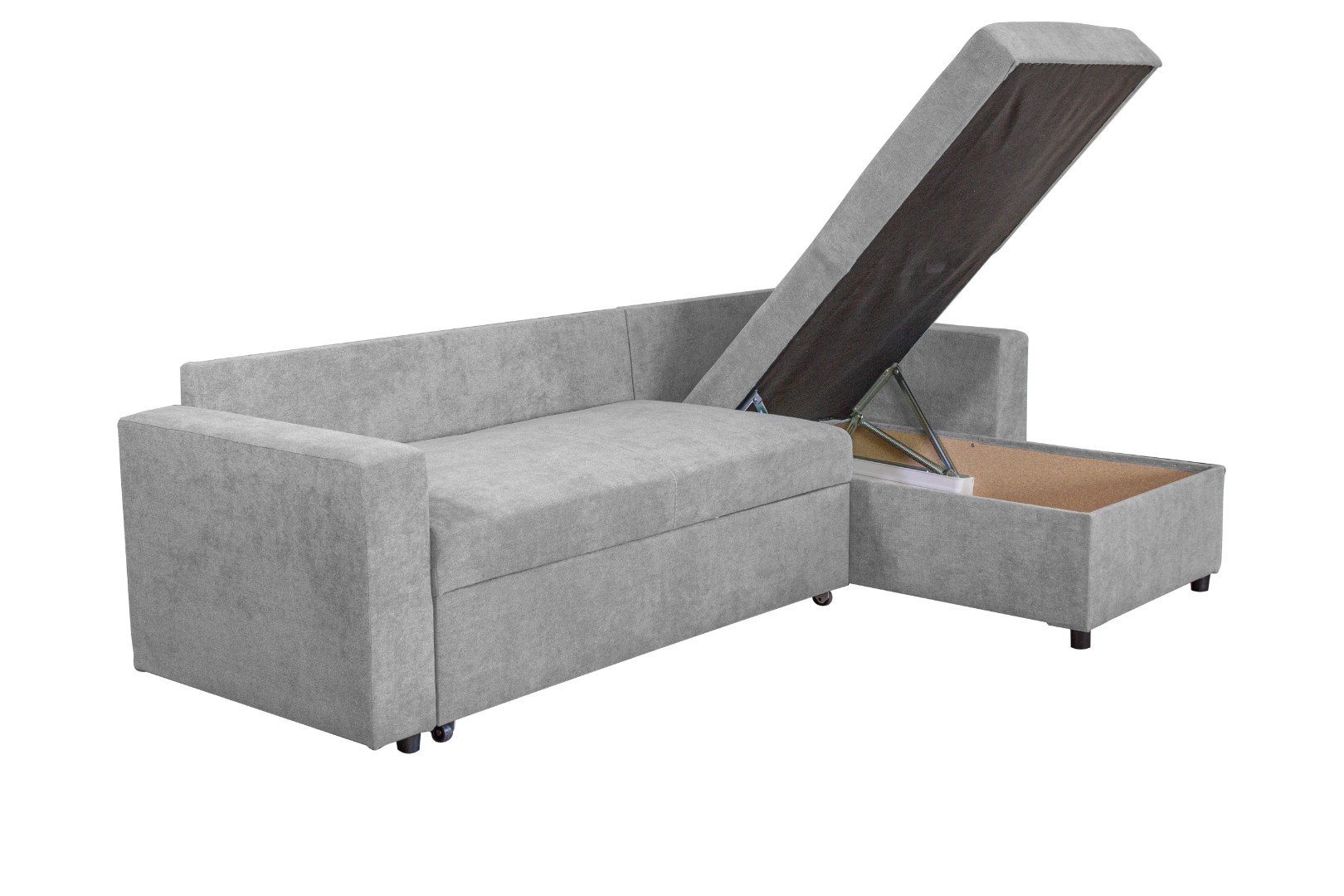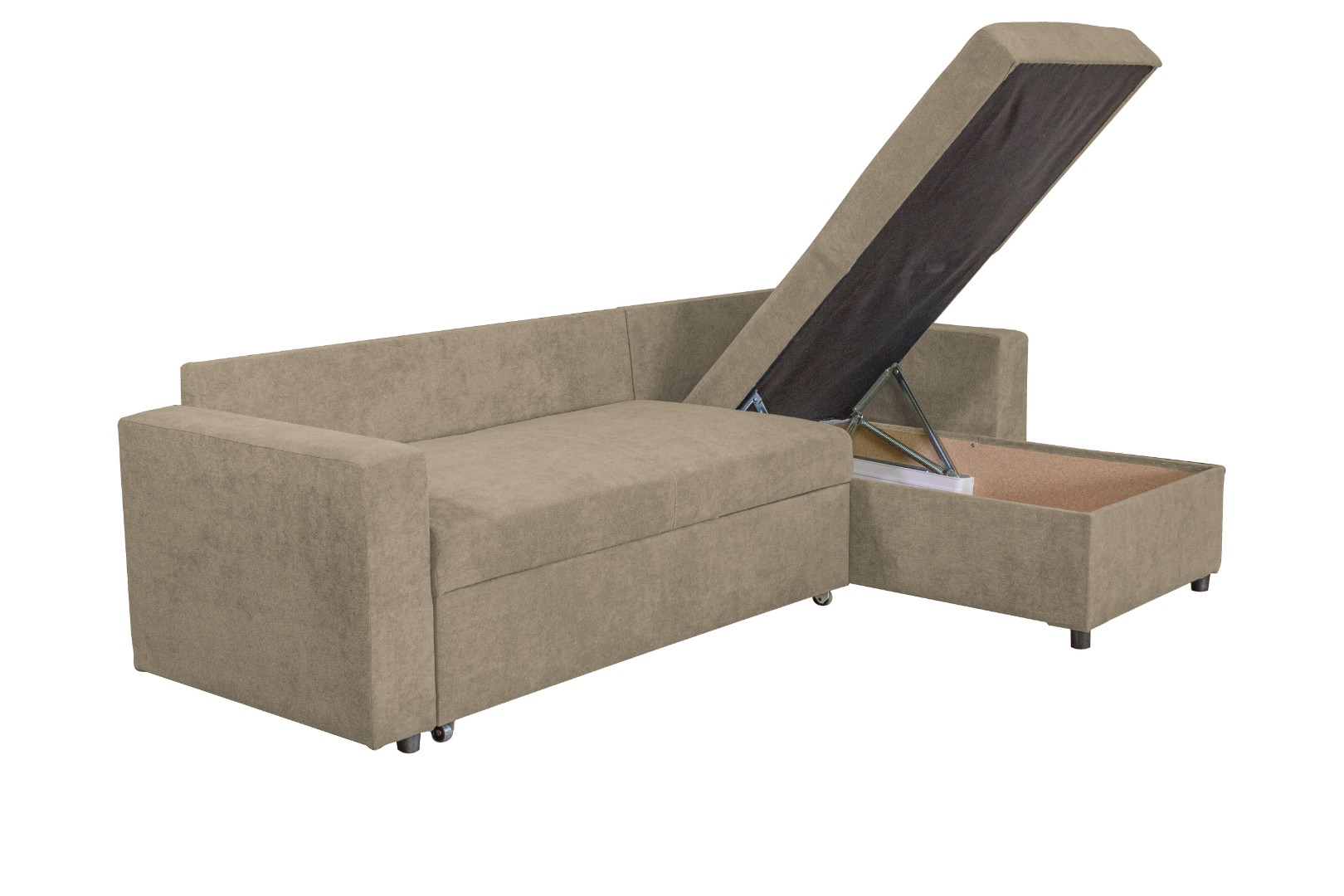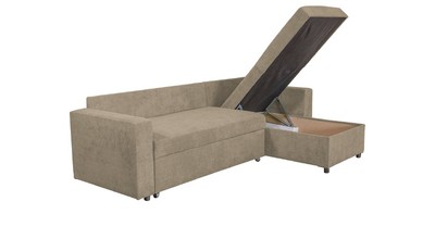 Вместительный ящик для спальных принадлежностей расположен под угловой частью дивана. Доступ к ящику обеспечивает подъемный механизм. У дивана на ППУ ящик для белья больше, что позволяет оптимизировать упаковку дивана: свободно помещаются 3 подушки+ спинка от угловой части.