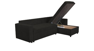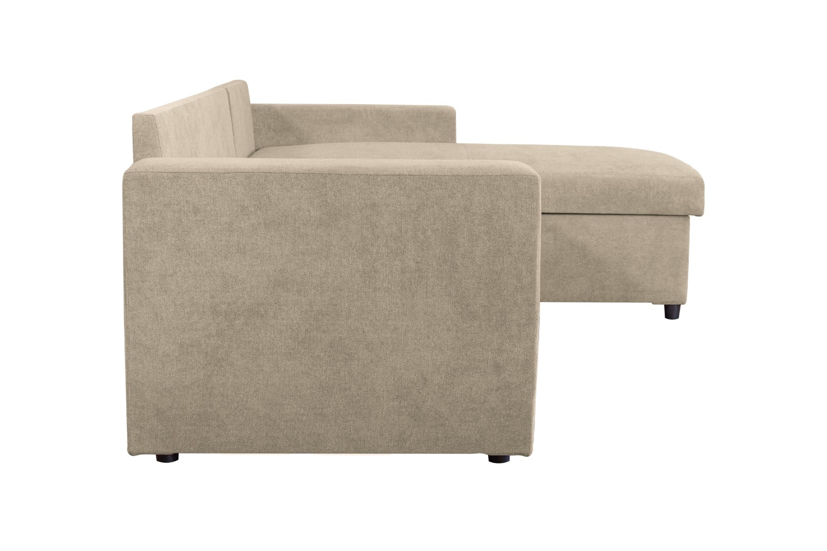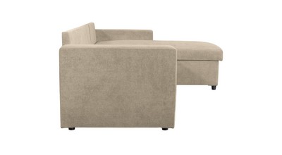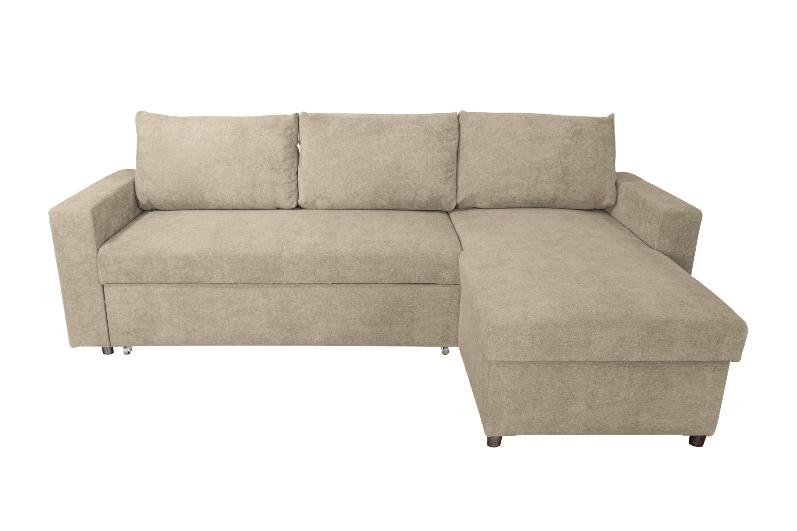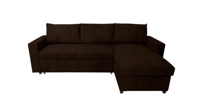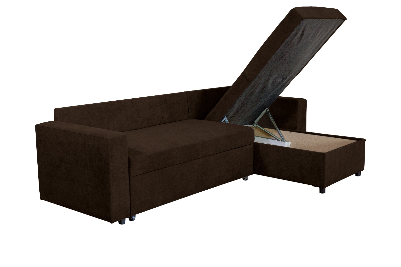 Вместительный ящик для спальных принадлежностей расположен под угловой частью дивана. Доступ к ящику обеспечивает подъемный механизм. У дивана на ППУ ящик для белья больше, что позволяет оптимизировать упаковку дивана: свободно помещаются 3 подушки+ спинка от угловой части.