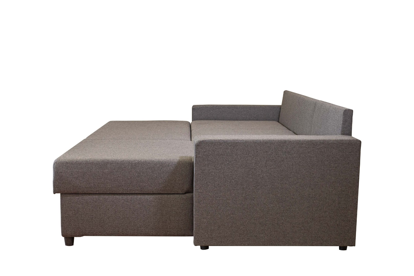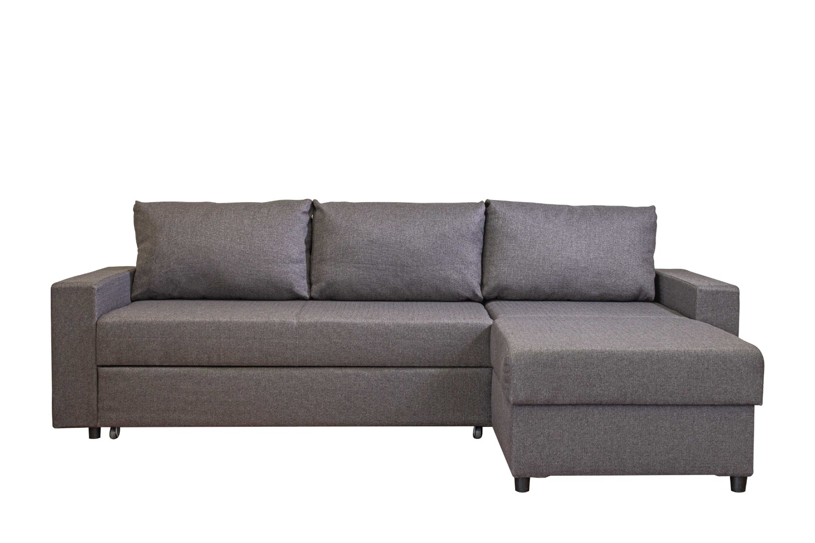 Угловой диван «Остин» легко трансформируется в большую кровать с помощью выкатного механизма «Дельфин» с размером спального места 135*205 см.