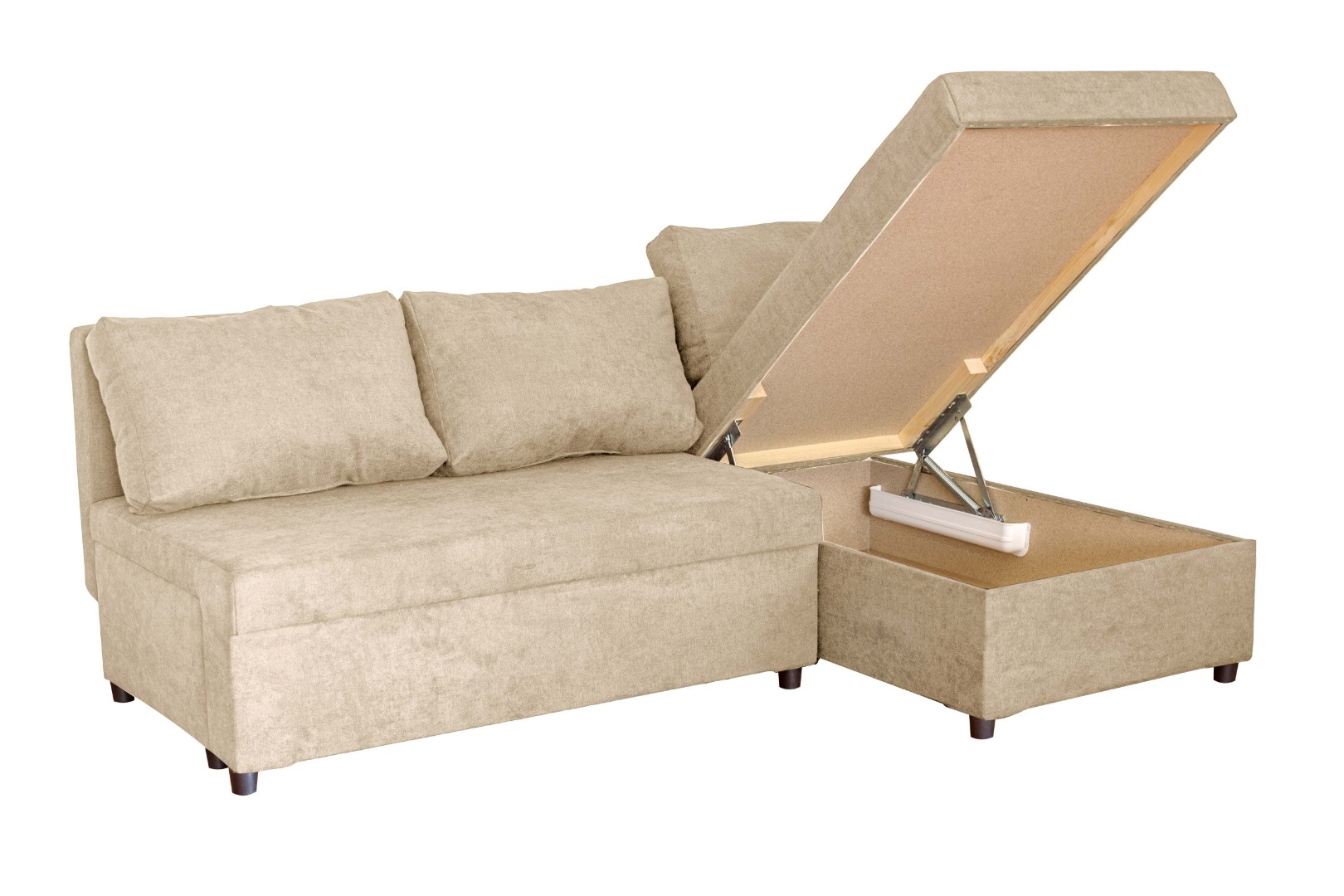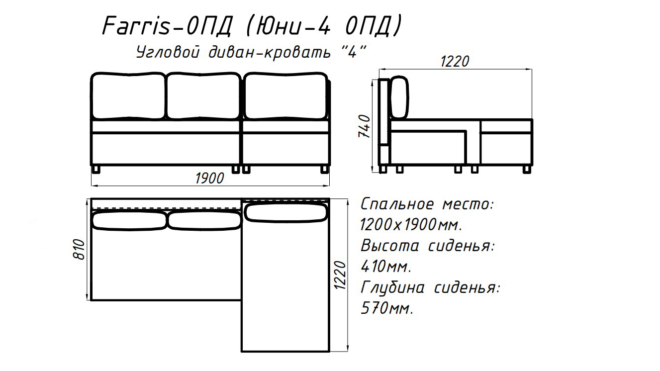 Площадь дивана полностью используется под спальное место. Спальное место — умеренно жесткое. Наполнение — высокоэластичный пенополиуретан.