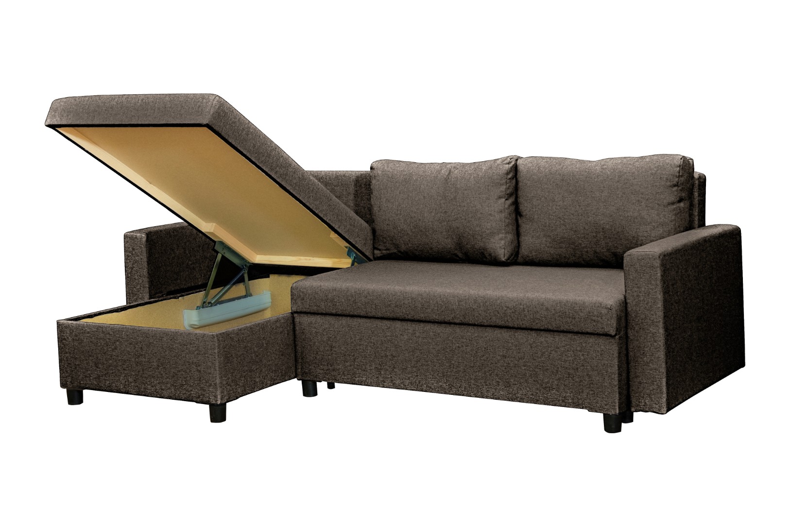 Площадь дивана полностью используется под спальное место. Спальное место — умеренно жесткое. Наполнение — высокоэластичный пенополиуретан.