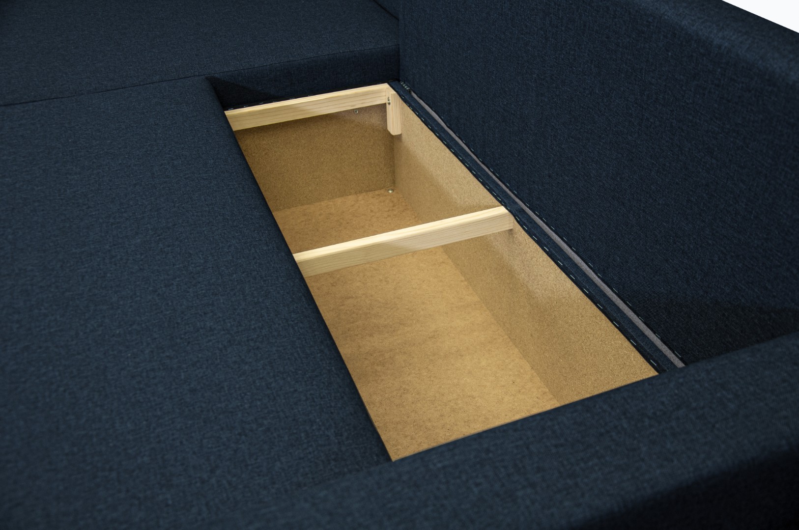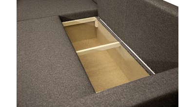 Прочность каркаса обеспечивает использование сухого бруса хвойных пород и ДСП. Имеет вместительный ящик для хранения постельных принадлежностей.