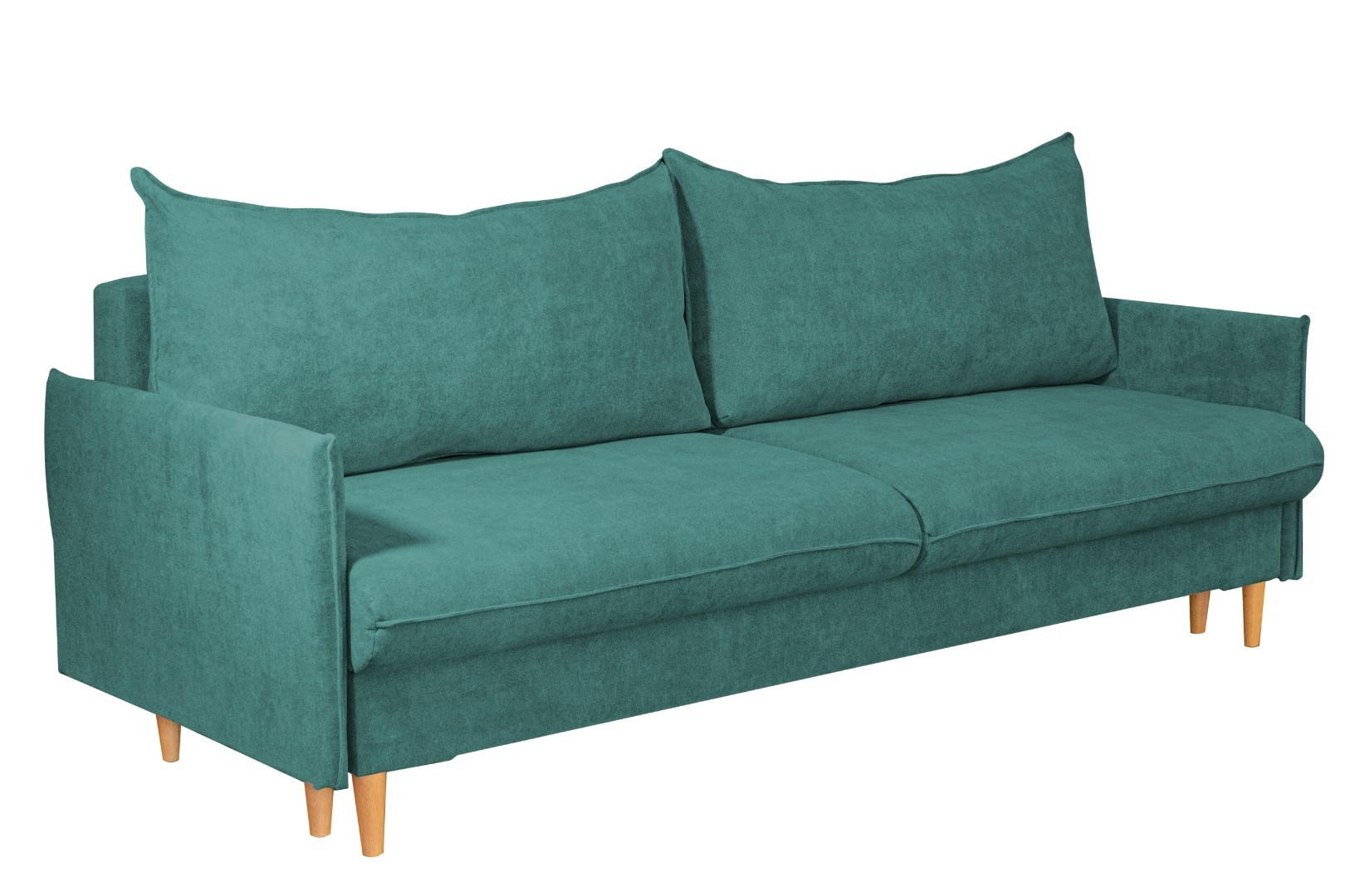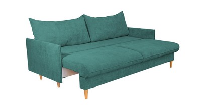 Мягкий и удобный прямой диван – оснащен простым и надежным механизмом трансформации, эта модель легко раскладывается в просторное и ровное место для сна. Материал обивки – практичный и приятный на ощупь, он надолго сохраняет свой прежний вид, не истирается и легко поддается уходу. Стильная расцветка дивана гармонично поддержит общее оформление и позволит создать неповторимый интерьер. Высокие деревянные опоры придают дивану особый элегантный и современный стиль. Удобства дополняют две большие и мягкие подушки, образующие спинку.