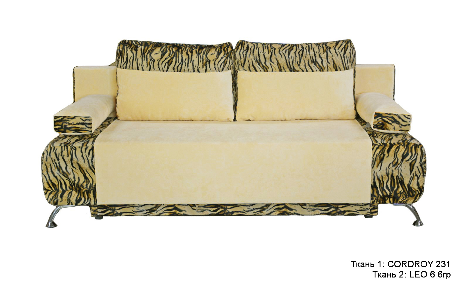 Уже полюбившееся многим решение диванов без подлокотников смотрится стильно и эффектно благодаря хромированным металлическим ножкам, а подушки-валики прекрасно дополняют дизайн. Расцветка, равно, как и фактура ткани для моделей «Визит-6», может быть практически любой. Особенно удачно применять комбинированные варианты обивки.