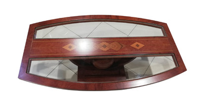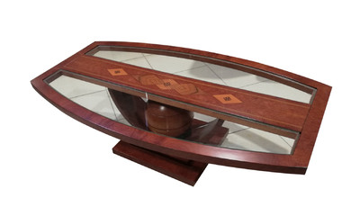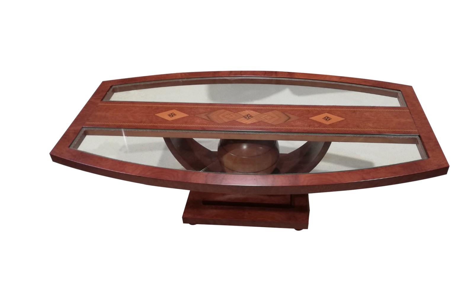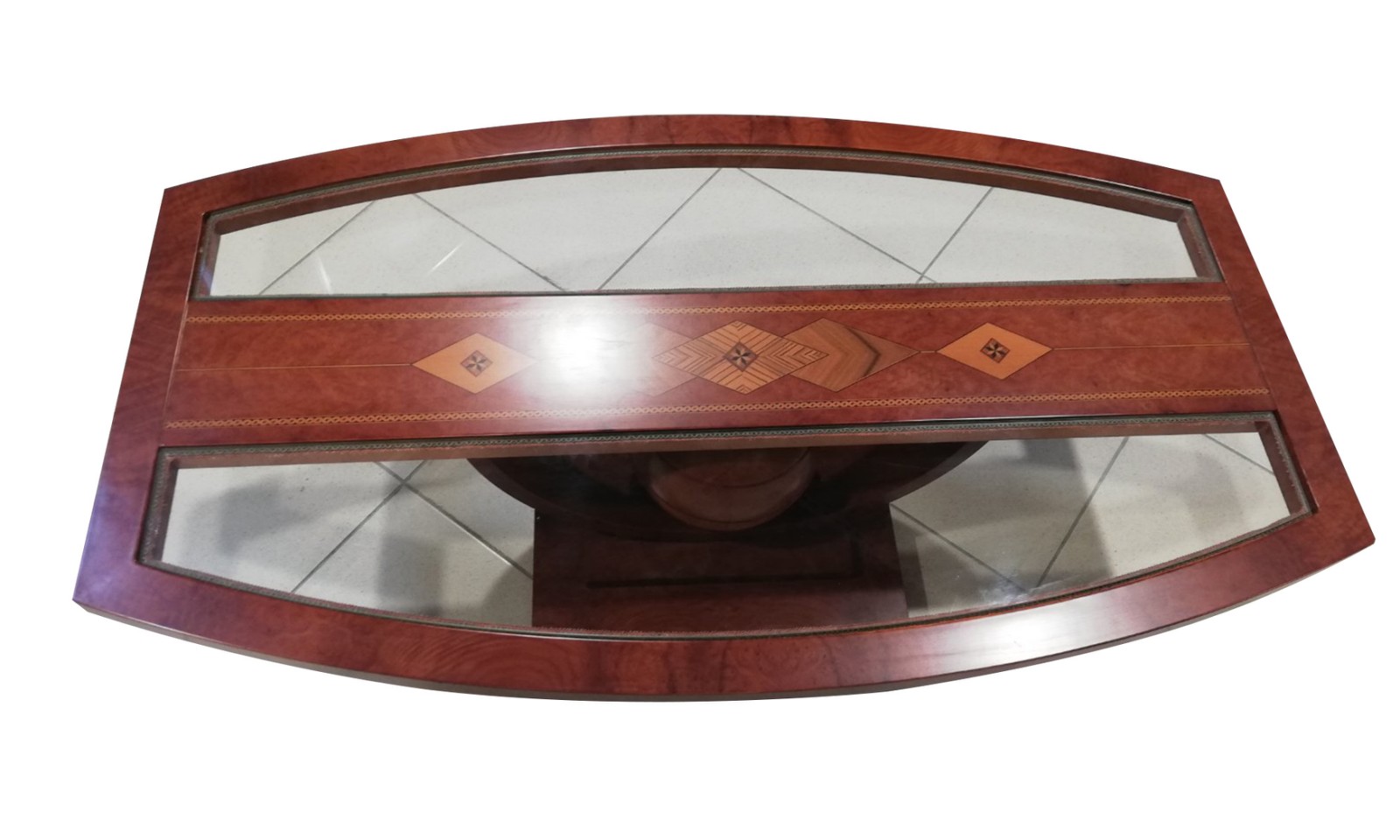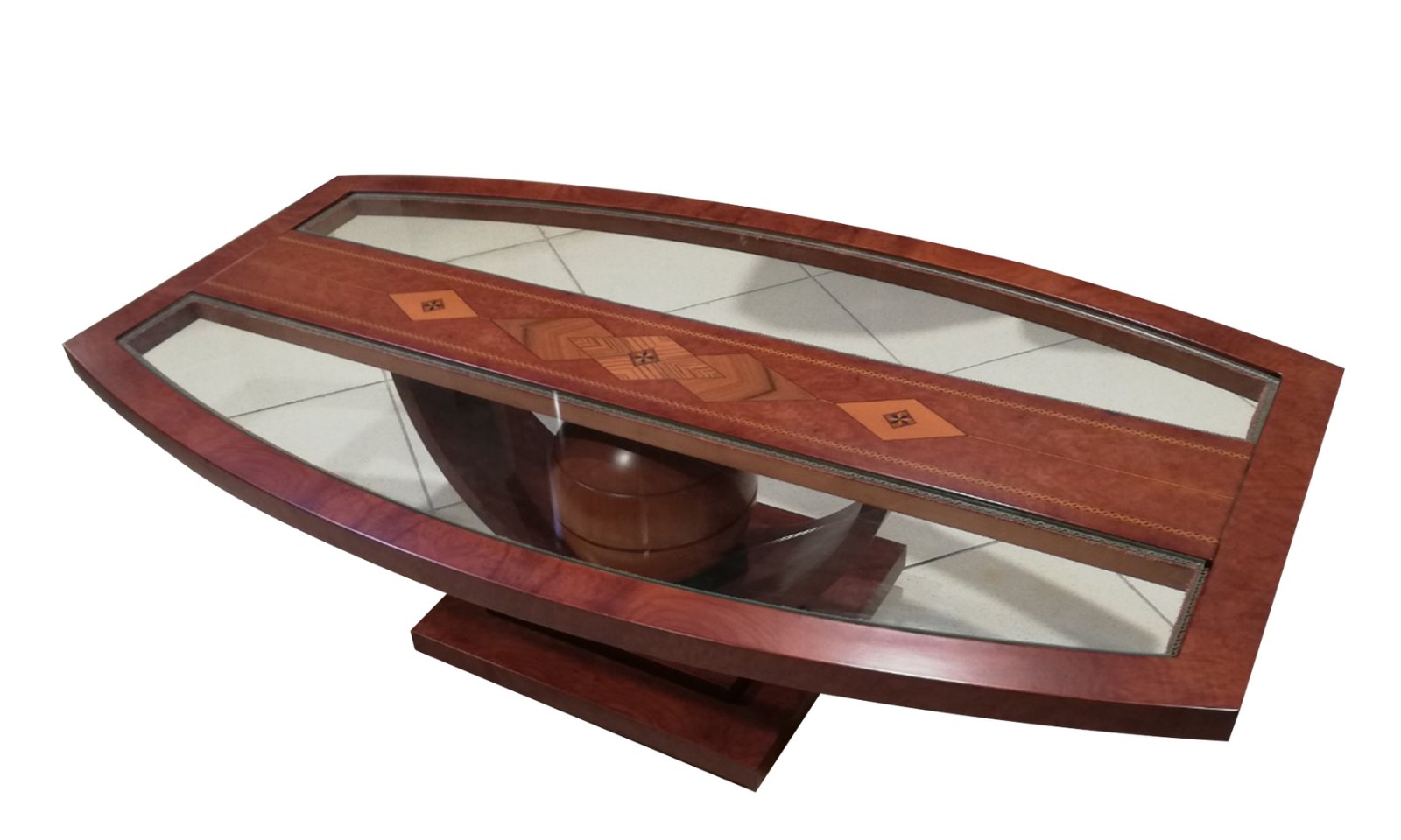 Это прекрасный выбор для тех, кто ценит не только комфорт и уют, но и красивый аристократичный вид предметов мебели. Она имеет сложную изогнутую форму, красивые устойчивые ножки, украшена живописной потрясающей резьбой. Изящно изогнутые фасады распашных дверец и выдвижных ящичков тумбы под ТВ говорят о высоком технологичном уровне производства данной мебели, что по праву причисляет её к разряду элитной и дорогой. Кроме своей основной функции, журнальный стол DS.42.B имеет две полочки за стеклянными дверцами, и четыре выдвижных вместительных ящика.