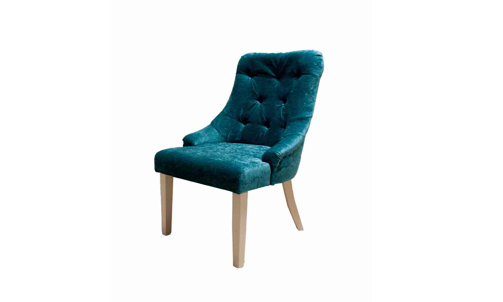 Сиденье удобное, подковообразной формы. Задние ножки слегка отклонены назад для придания стулу большей устойчивости и эстетичности. Спинка украшена изящной каретной стяжкой с использованием утопленных пуговиц.