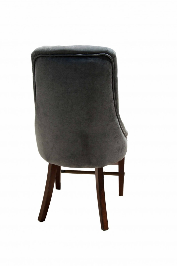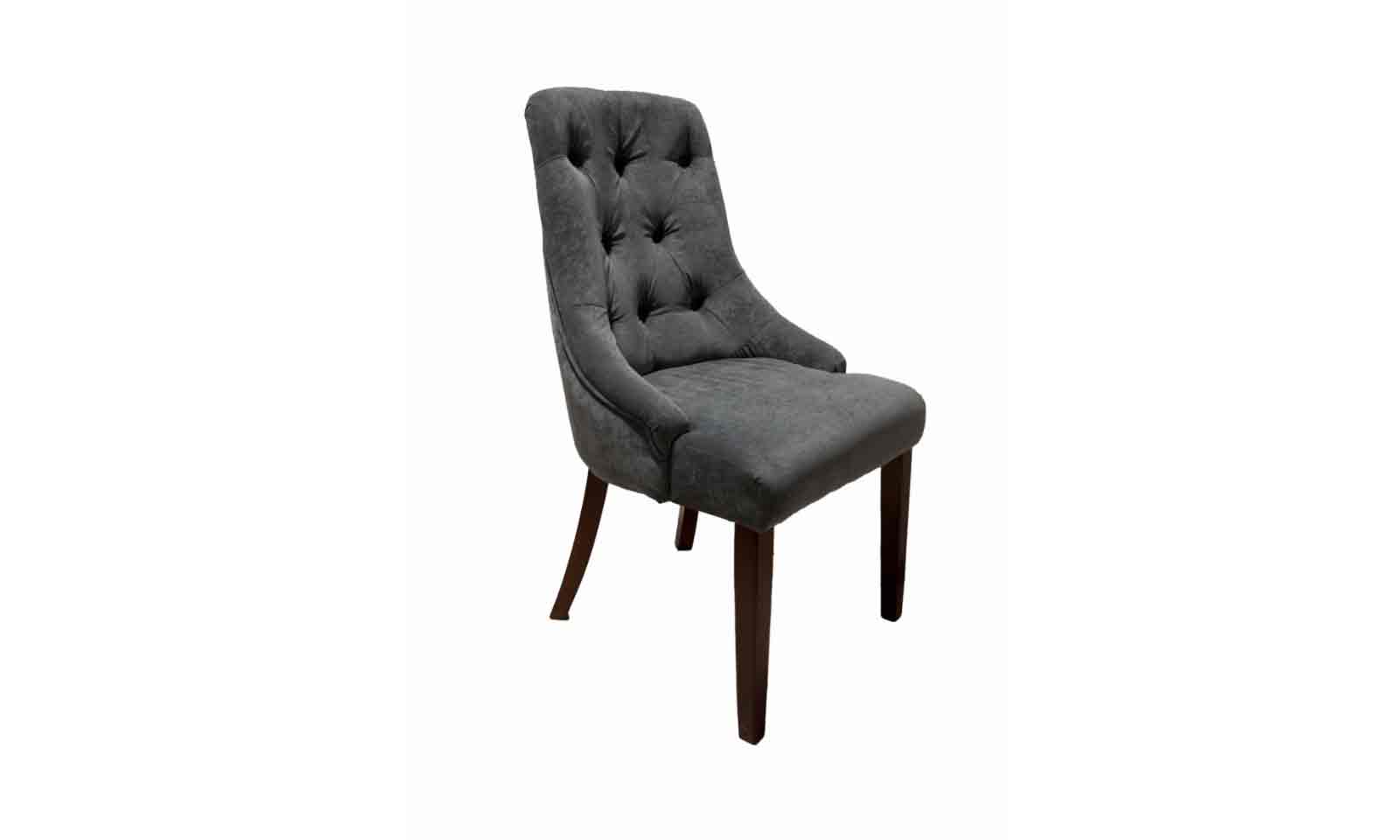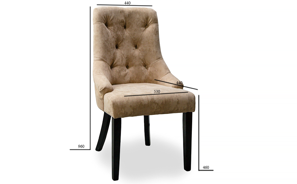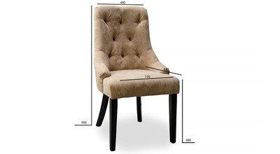 Сиденье удобное, подковообразной формы. Задние ножки слегка отклонены назад для придания стулу большей устойчивости и эстетичности. Спинка украшена изящной каретной стяжкой с использованием утопленных пуговиц.